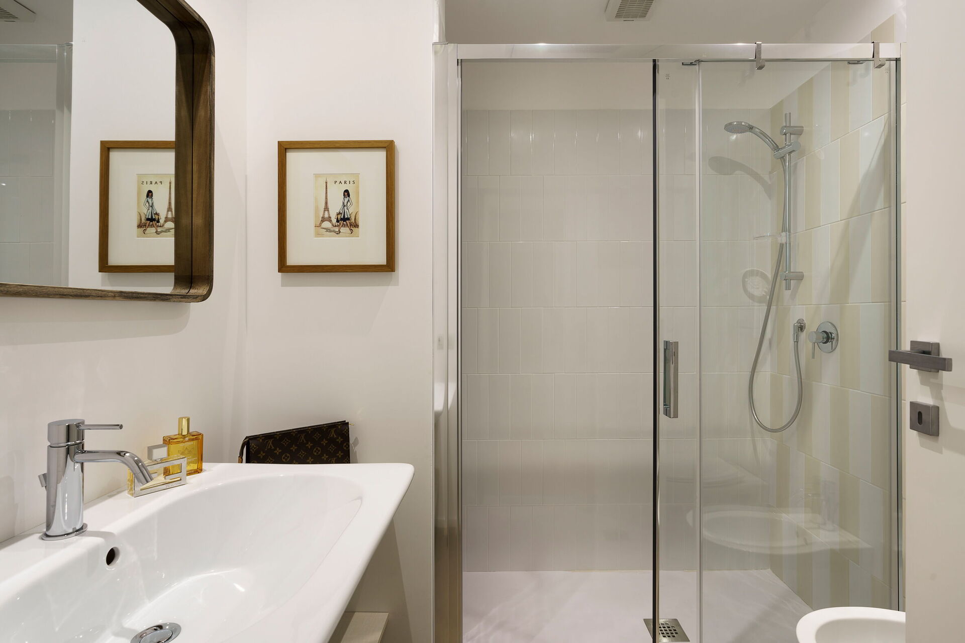 Soveværelse med bad 2: dobbeltseng, WIFI internet, internet, klimaanlæg, myggenet, satellit tv, vask, wc, bidet, bruser, hårtørrer, badeværelse uden vindue.