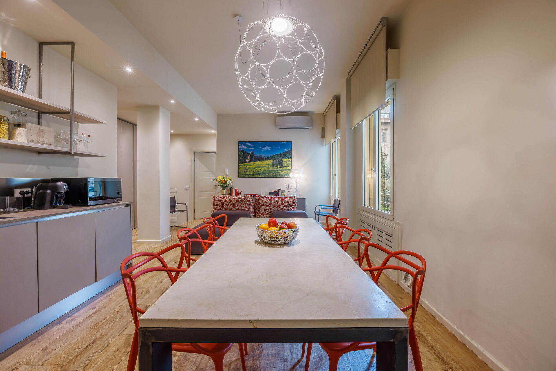 Når I ankommer, vil I blive modtaget af ejeren eller repræsentanten og I vil finde en fin ren og velholdt ejendom med udsigt over byen ideel til en rolig ferie i Toscana. Uanset hvordan I tilbringer dagene - med sightseeing, museumsbesøg, shopping eller bare ved at køre rundt på landet, så kan I køle ned med familie og venner , når I kommer hjem, hvilket er en perfekt måde at afslutte endnu en dejlig dag på i Toscana. At nyde et måltid med venner og familie er en kæmpe del af den toskanske kultur. Benyt det velekviperede køkken til madlavning med lokale produkter, når du er på ferie. Køkkenet indeholder kaffemaskine, mikroovn, komfur og køleskab, samt, masser af service og bestik til op til seks personer.