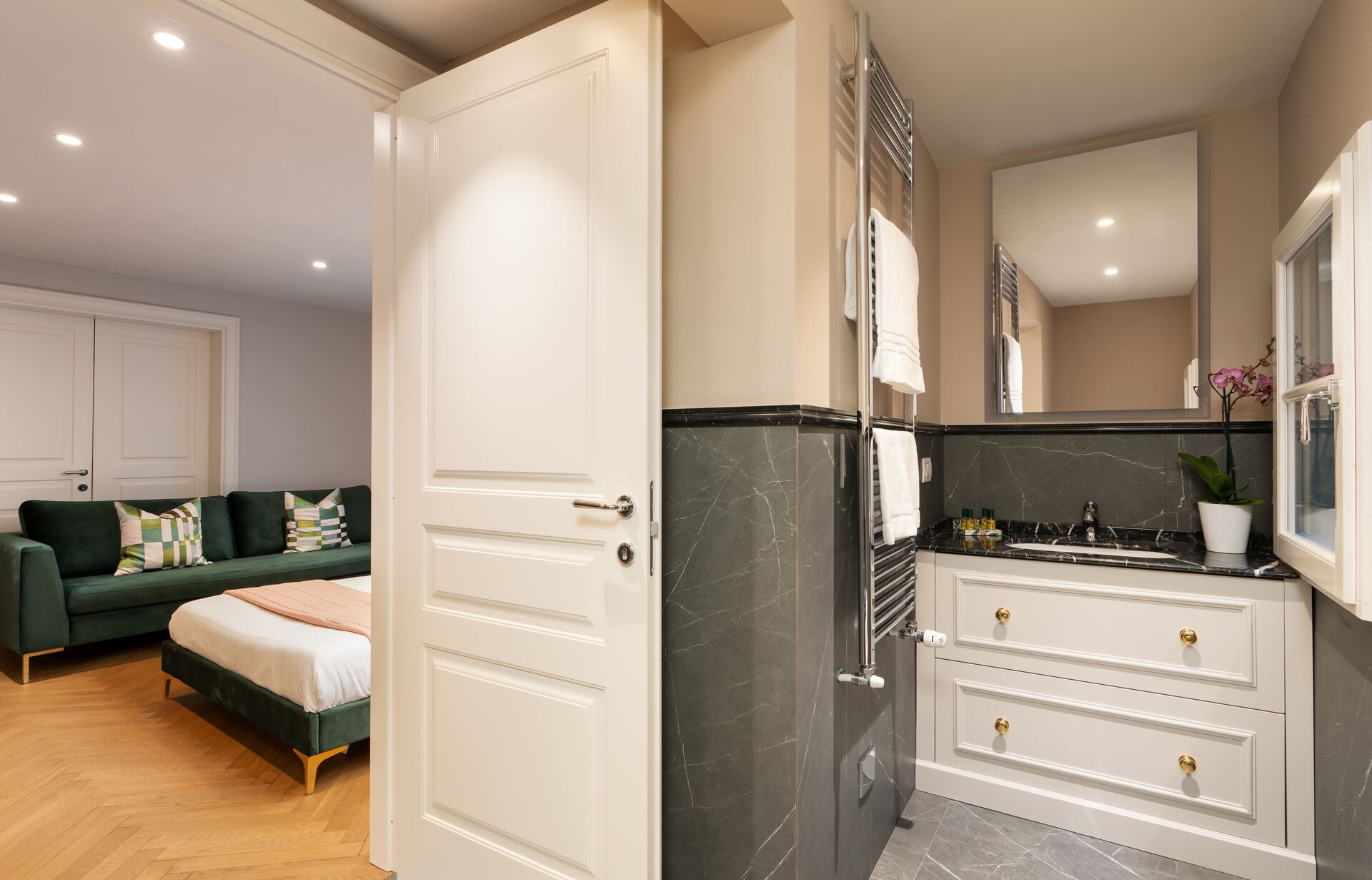 Soveværelse med bad 4: dobbeltseng, WIFI internet, klimaanlæg, satellit tv, vask, wc, bidet, bruser.