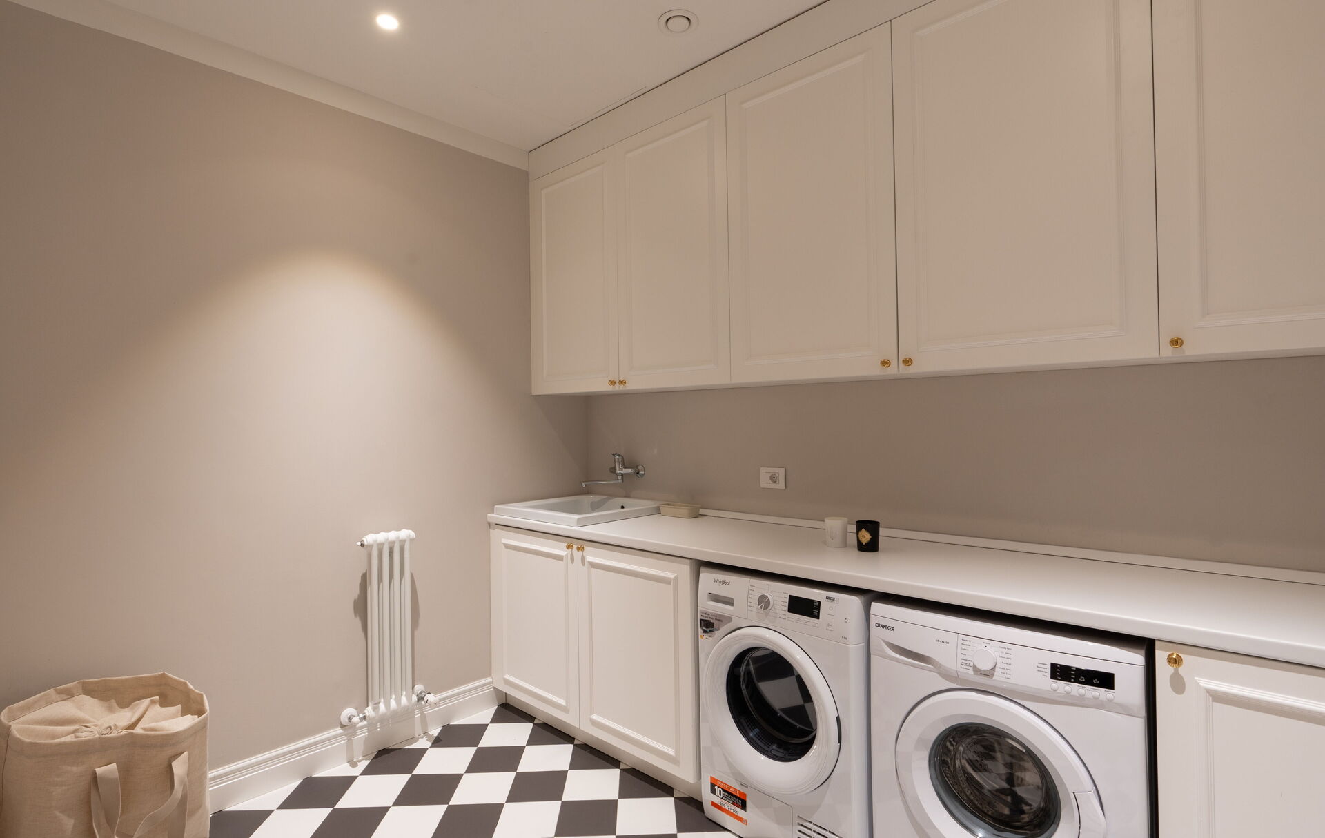 Bryggers: vask, vaskemaskine, tørretumbler.