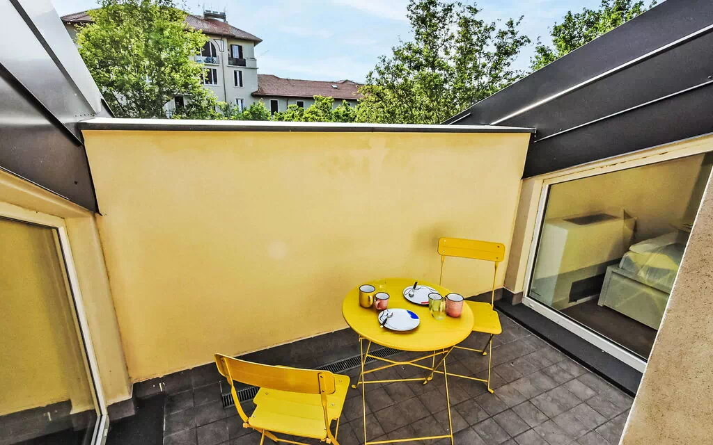 Lille, smuk, lille lejlighedshus "White Attic Terrace", på 3 etager, fra det 19. århundrede, renoveret i 2024. 2.5 km fra bymidten af Milano, i distriktet Corvetto, livlig beliggenhed, ved en hovedvej, retning vest. I huset: elevator, centralvarme, opvarme kun tilgængelig fra 15.Okt. - 15.Apr.. Offentlige parkeringspladser på vejen. Fødevarebutik, supermarked 250 m, restaurant, bar, café 50 m, busstoppested 50 m, banegård "Centrale(Malpensa Express Train)" 6 km, undergrundsstation "Corvetto (M3)" 250 m, park "Parco Sempione" 5.5 km, svømmehal 800 m, varmtvandsbad "Terme Milano" 2.5 km. Golfbane (18 hul) 7.7 km. Nærliggende attraktioner: Fondazione Prada 2 km, Navigli (canal district) 4 km, Piazza del Duomo 4.3 km, Brera district 5 km, Castello Sforzesco 5.2 km, Fiera Milano City/ MiCo 8 km. Kendte søer nås nemt: Lago di Como 58 km.