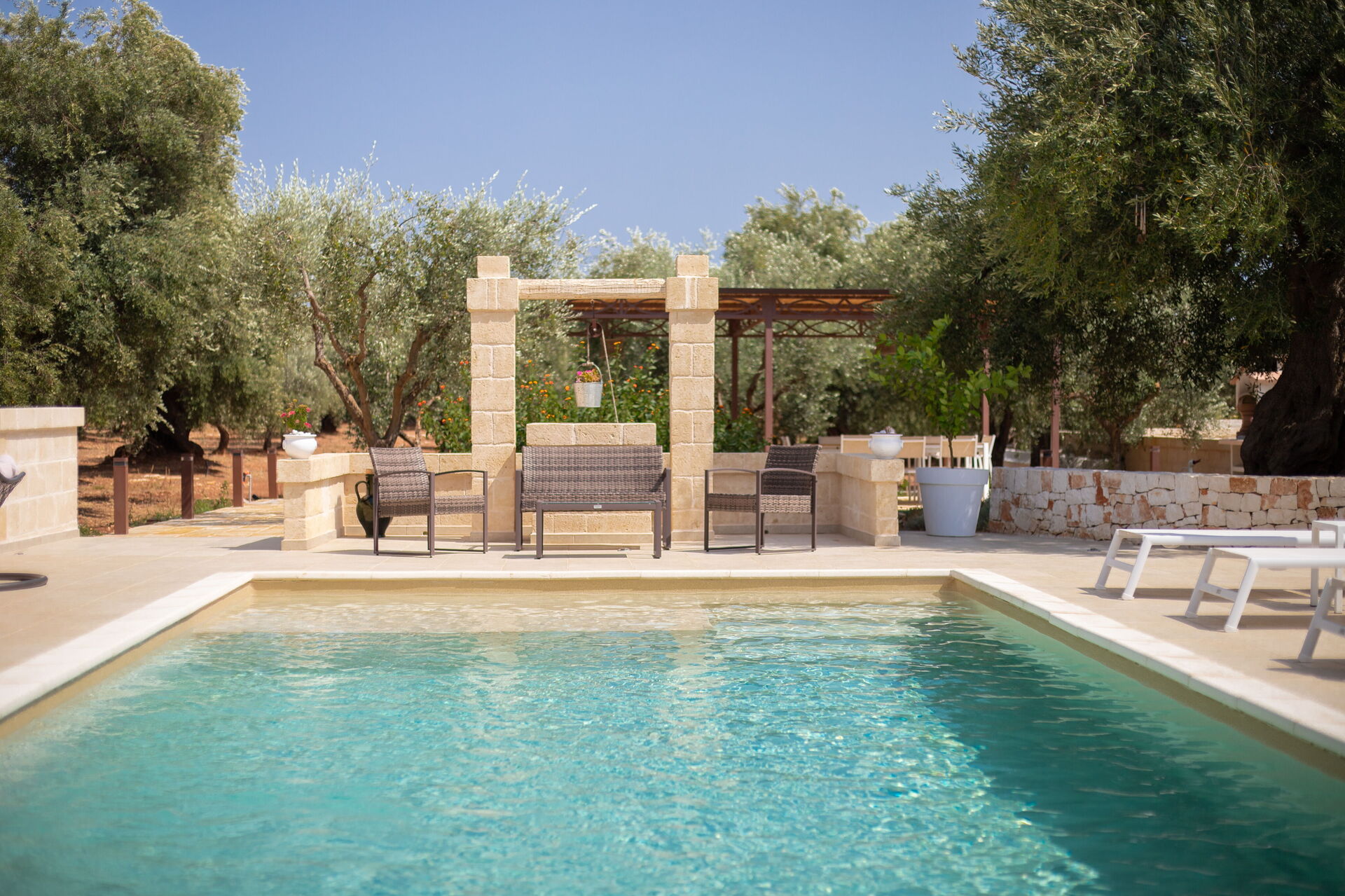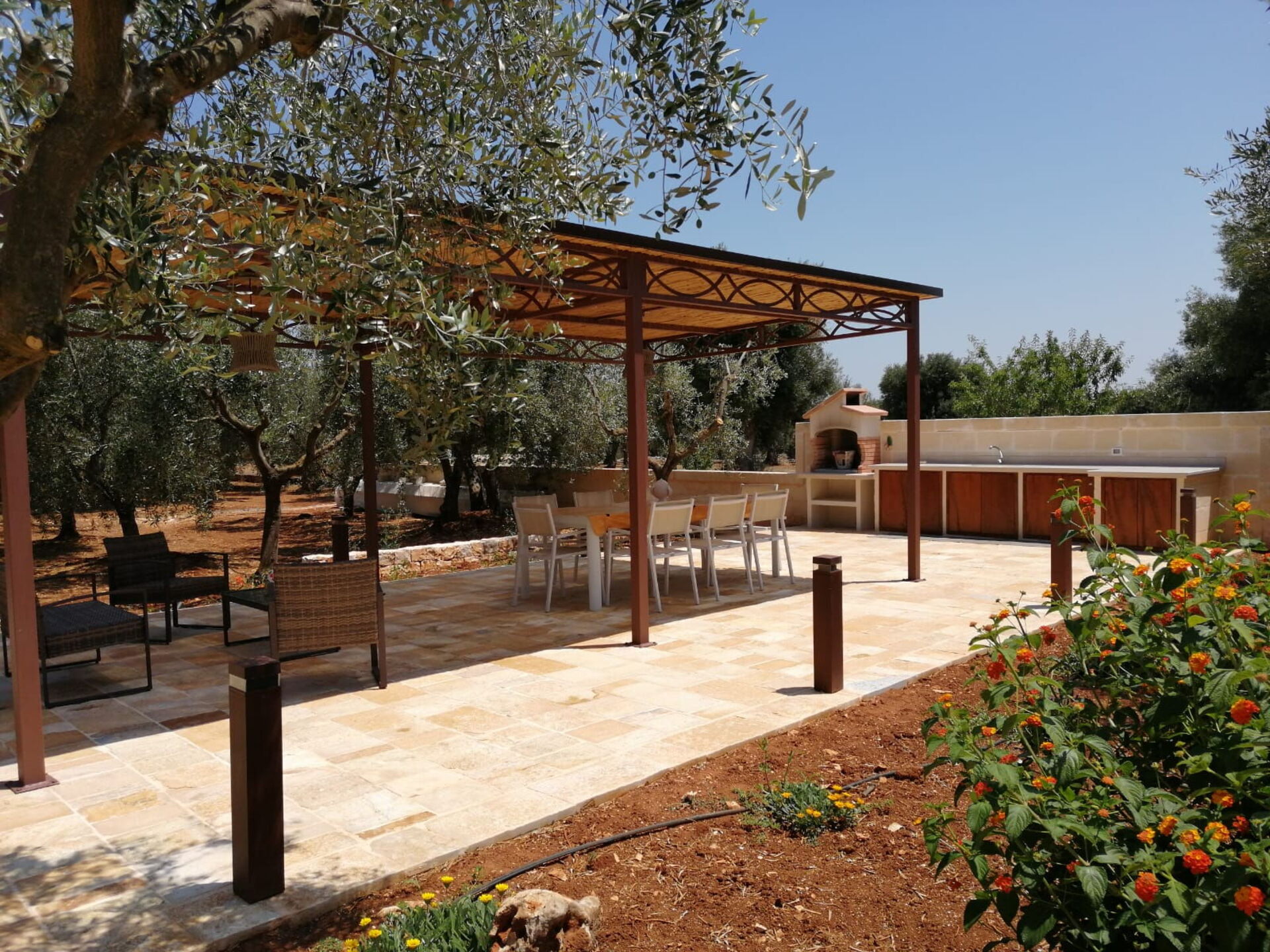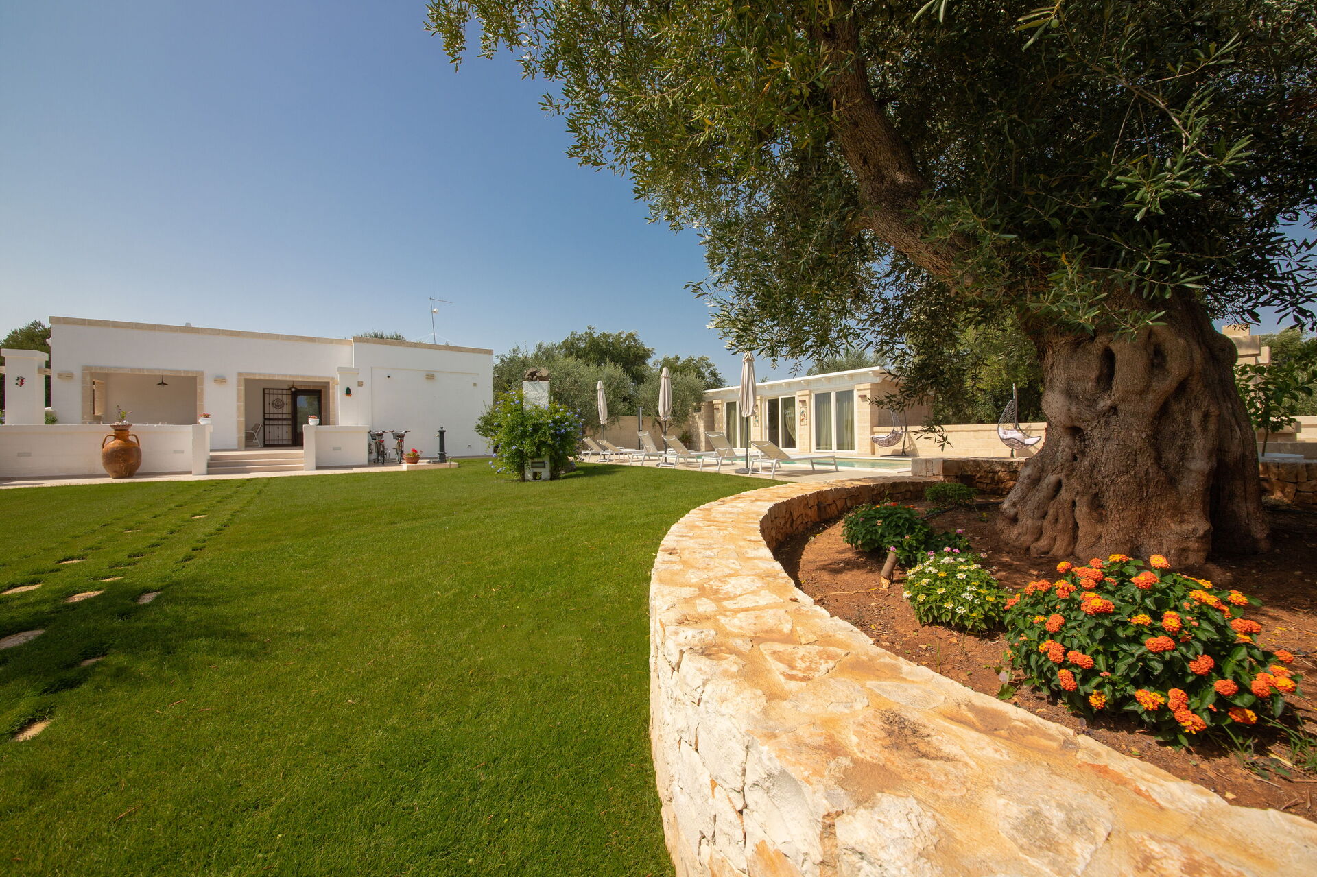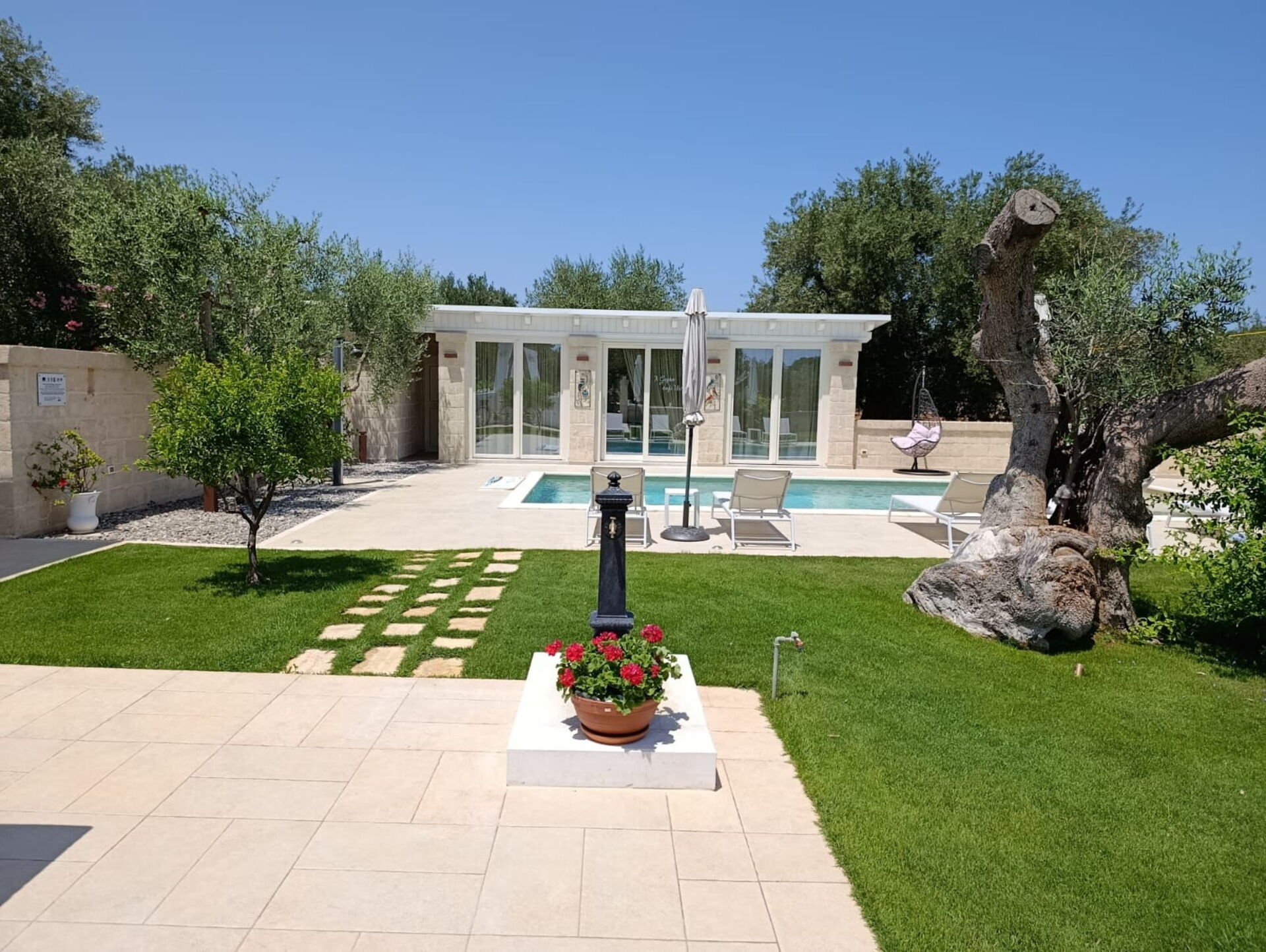 Terra Mater består af en hovedenhed med 3 værelser og et anneks med køkken og spiseplads og er perfekt til 6 personer. I haven er der ud over den private swimmingpool til eksklusiv brug for gæsterne en moderne pergola.