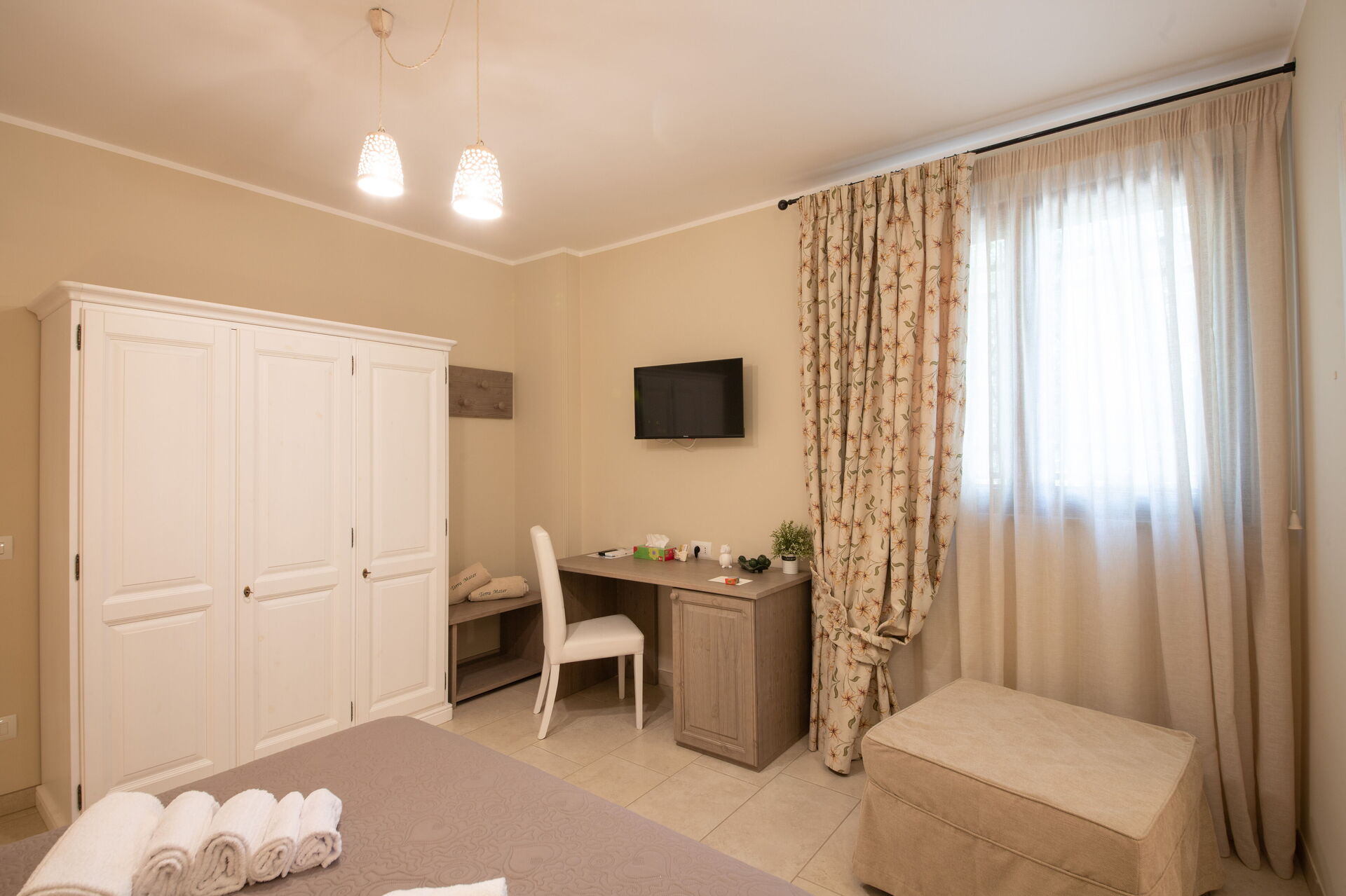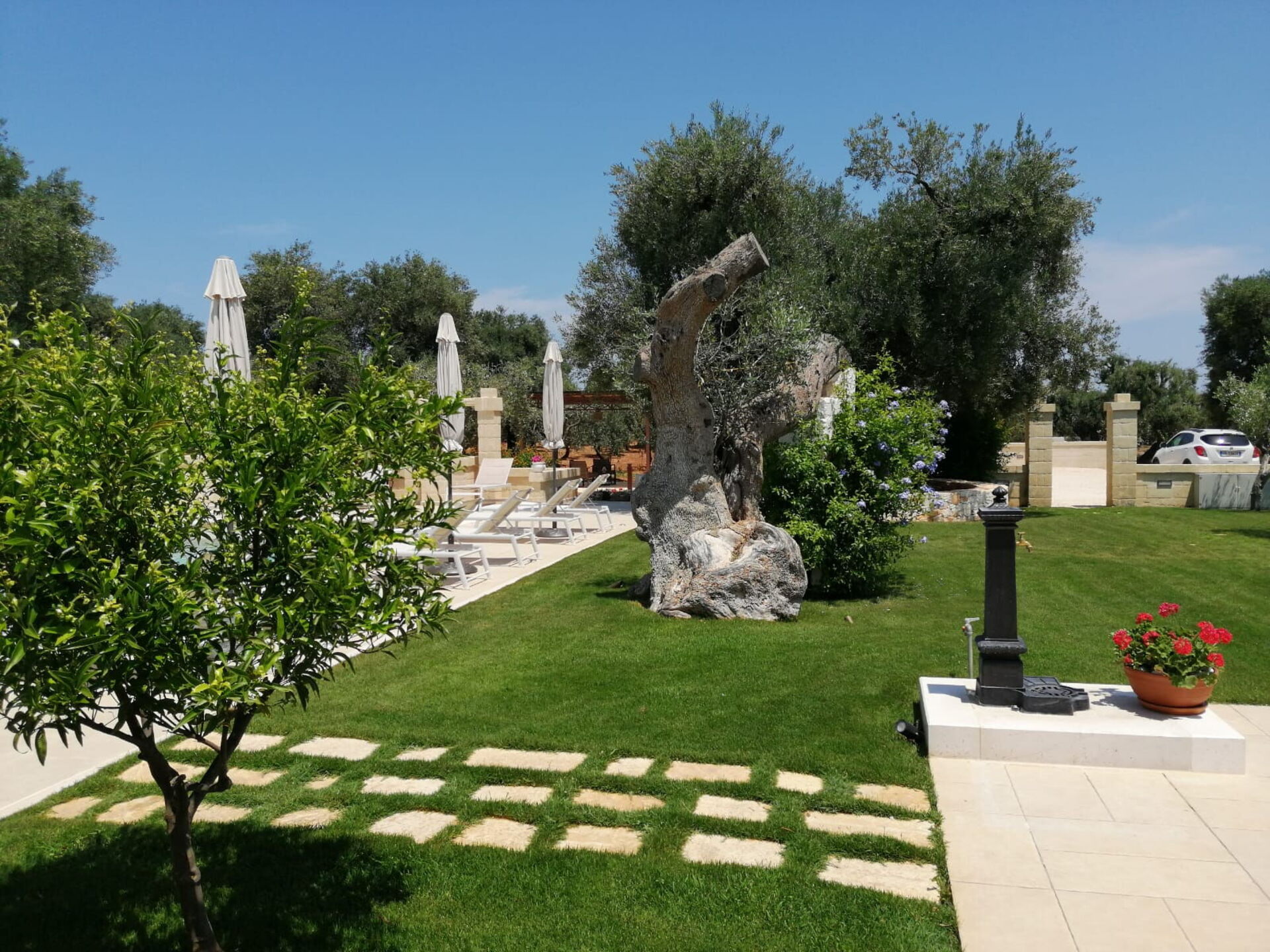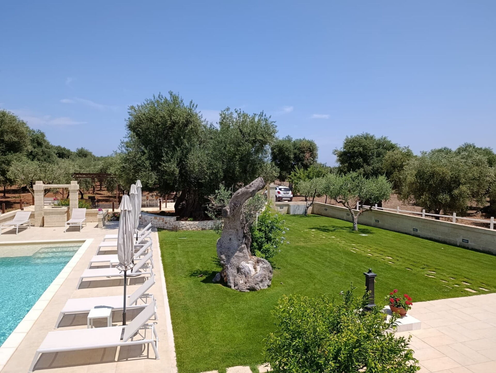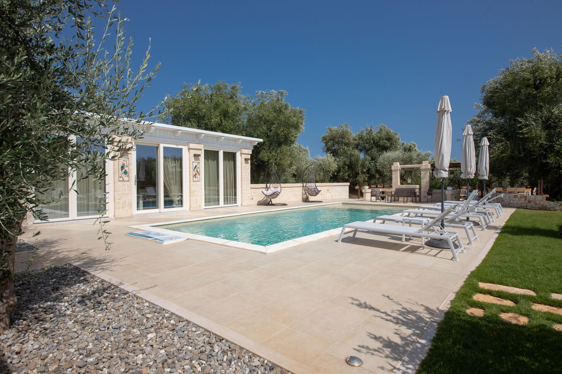 Terra Mater består af en hovedenhed med 3 værelser og et anneks med køkken og spiseplads og er perfekt til 6 personer. I haven er der ud over den private swimmingpool til eksklusiv brug for gæsterne en moderne pergola.