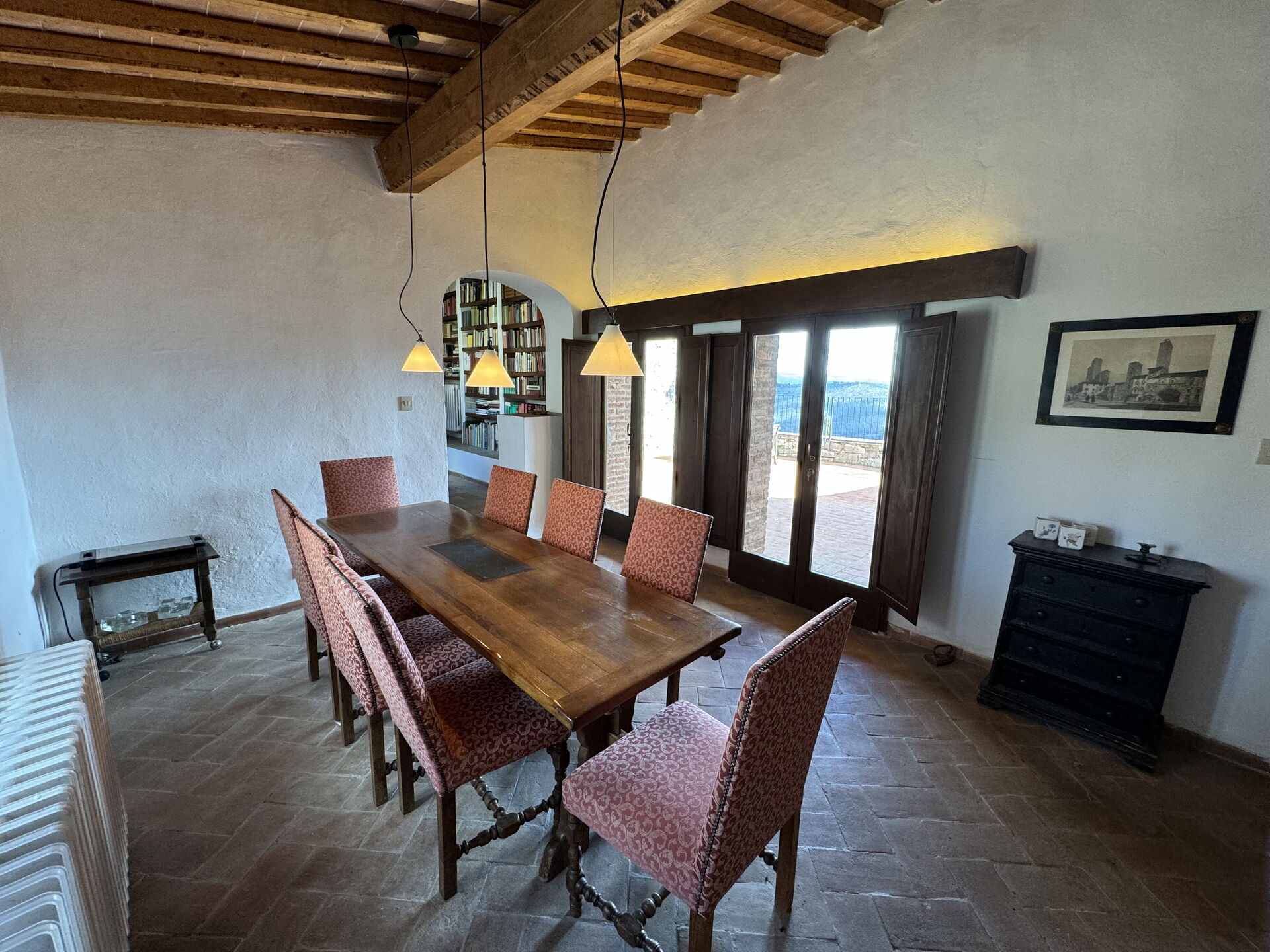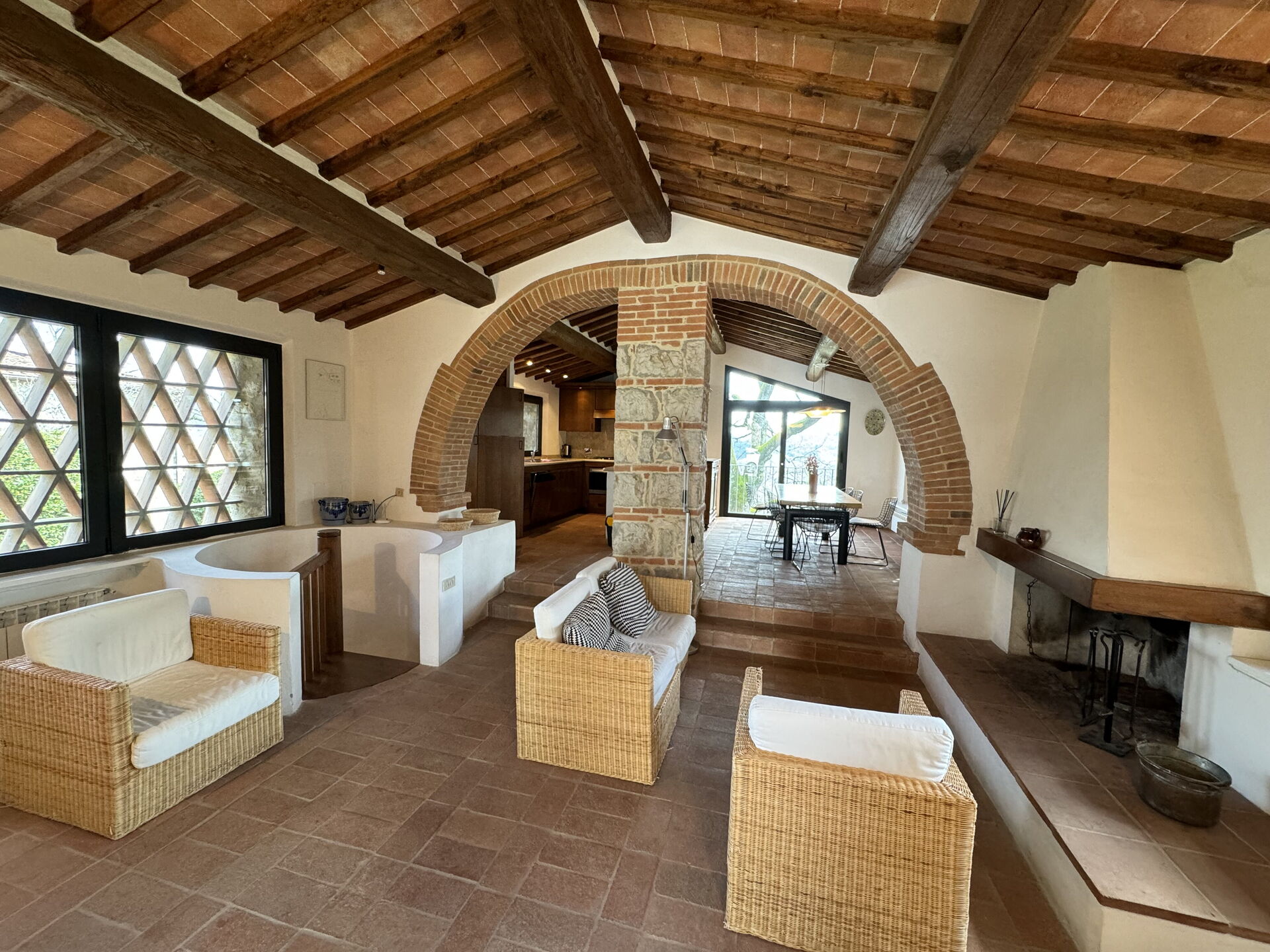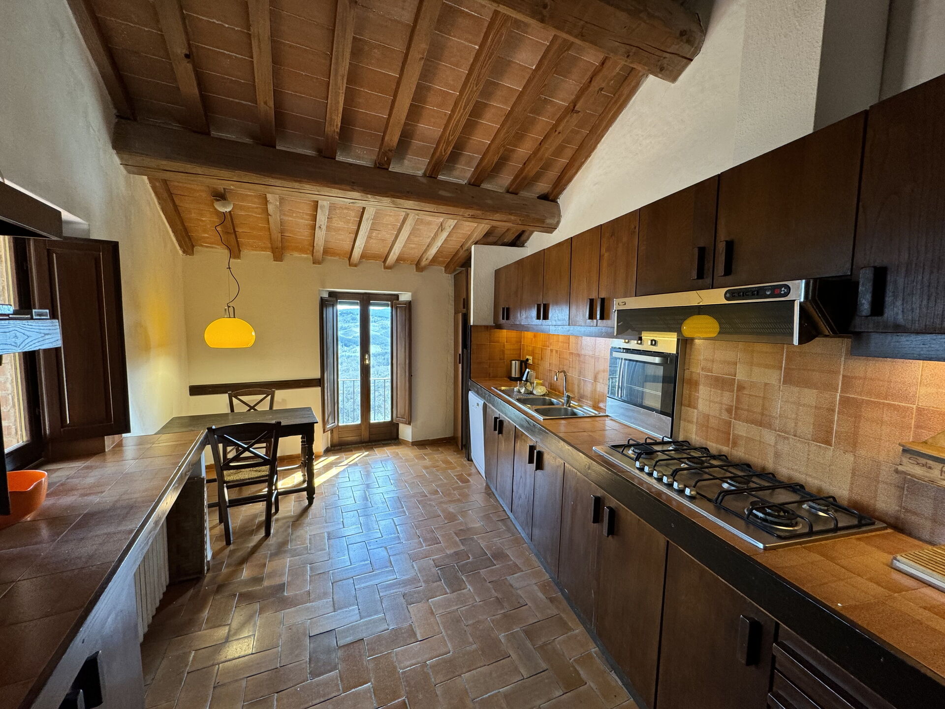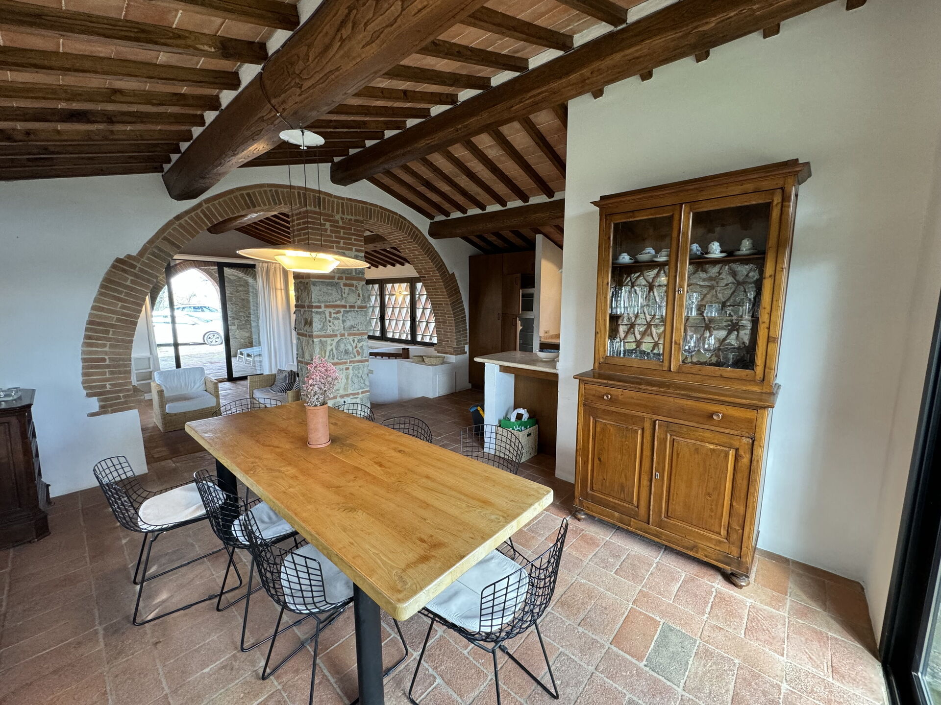 Ved ankomst vil I blive budt velkommen af ejeren eller repræsentanten og I vil finde en dejlig ren og velholdt ejendom med udsigt over bakkerne perfekt til en behagelig ferie i Toscana. Efter en hektisk dag med sightseeing, er det dejligt at nyde lidt tid med venner og familie ved kanten af poolen med et glas vin - det er en perfekt måde at køle ned på sidst på dagen. Der er et køkken inkluderet kaffemaskine og køleskab, samt, , samt masser af service og bestik til op til 17 personer. Hvis I foretrækker at spise 'al fresco', er der en fuldt møbleret balkon, hvor I kan nyde vejret, mens I spiser udendørs.