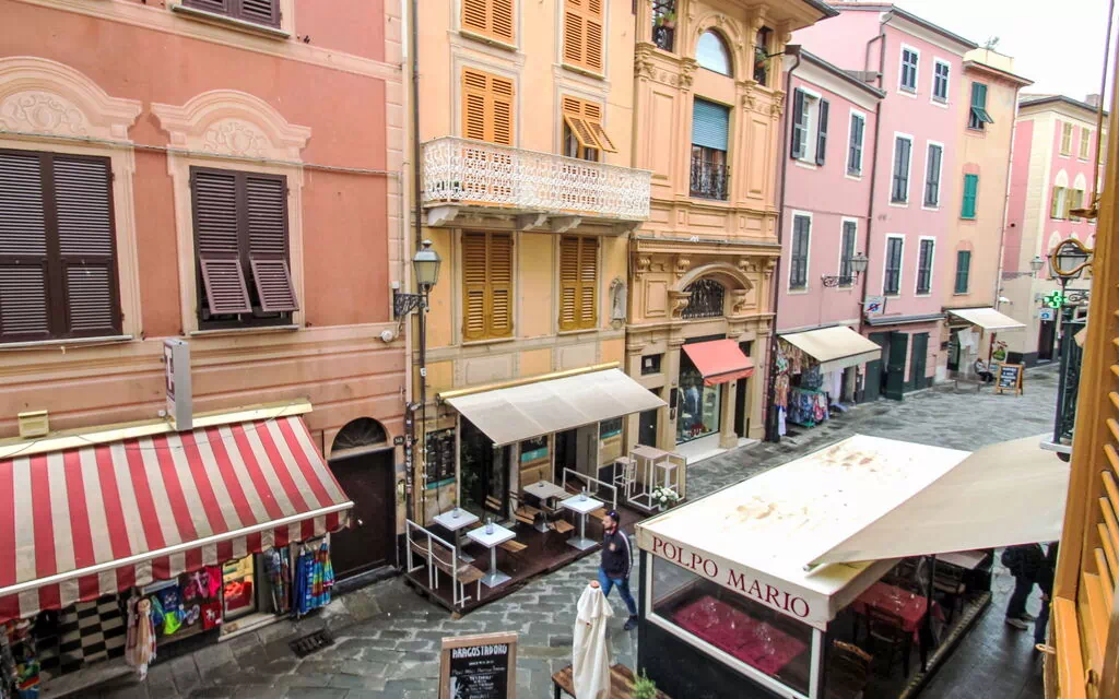 Historisk, lille lejlighedshus fra det 14. århundrede. I bymidten fra Sestri Levante, i hjertet af byen, 100 m fra havet, i en fodgængerzone. Tilkørsel til 50 m til huset. Offentlige parkeringspladser 800 m. Supermarked 1 km, restaurant 20 m, bar, bageri, café 50 m, busstoppested 400 m, banegård "Sestri Levante" 900 m, stenstrand "Baia del Silenzio" 90 m. Bemærk venligst: Bil ikke tilrådelig.