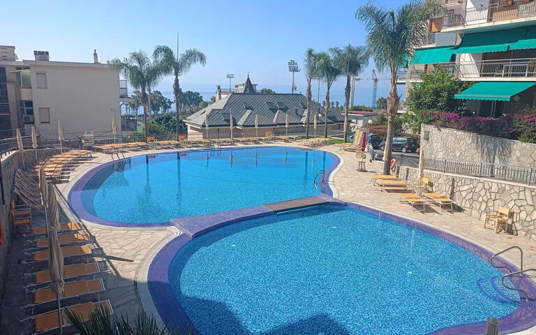 Komfortabelt residens på 3 etager. 2 km fra bymidten af Sanremo, 2 km fra centrum af Ospedaletti, 12 km fra bymidten af Ventimiglia, solrige beliggenhed, 500 m fra havet. Til medbenyttelse: pool indhegnet (12 x 5 m, Sæsonbestemt tilgængelighed: 15.Jun. - 08.Sep.). Brus/toilet i poolområdet, offentlige parkeringspladser 250 m på vejen. Supermarked 500 m, restaurant 400 m, bar 350 m, cykeludlejning 700 m, busstoppested "Su Strada." 210 m, sandstrand 400 m. Cykelvej 400 m. Nærliggende attraktioner: Teatro Ariston 2.5 km, Piazza Bresca 2 km, Villa Nobel 3.5 km, Chiesa Russa 2 km. Bemærk venligst: bil anbefales. Af- og pålæsning af bagage er mulig ved ferieboligen. Forpligtelse til at bære bade-hatte.
