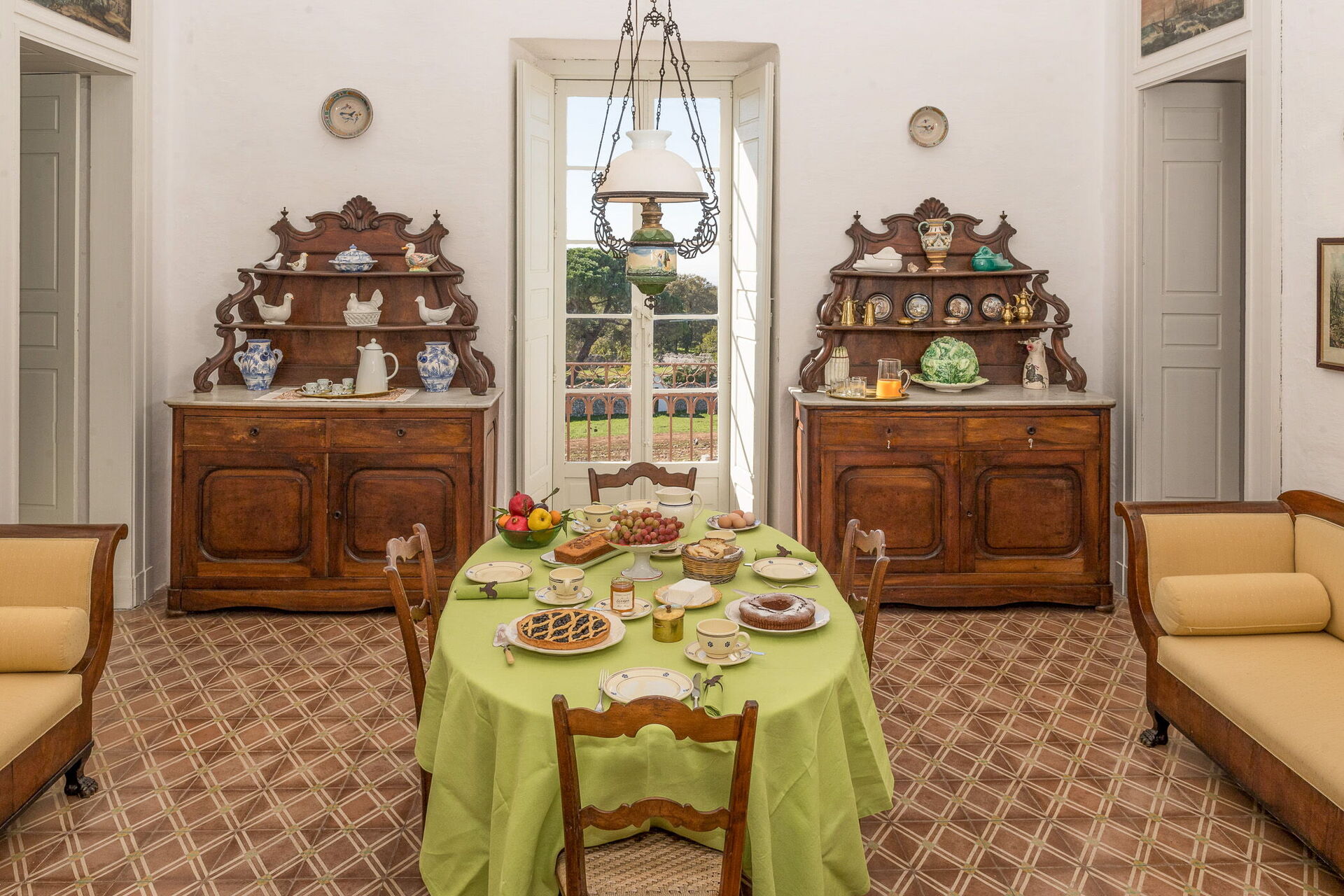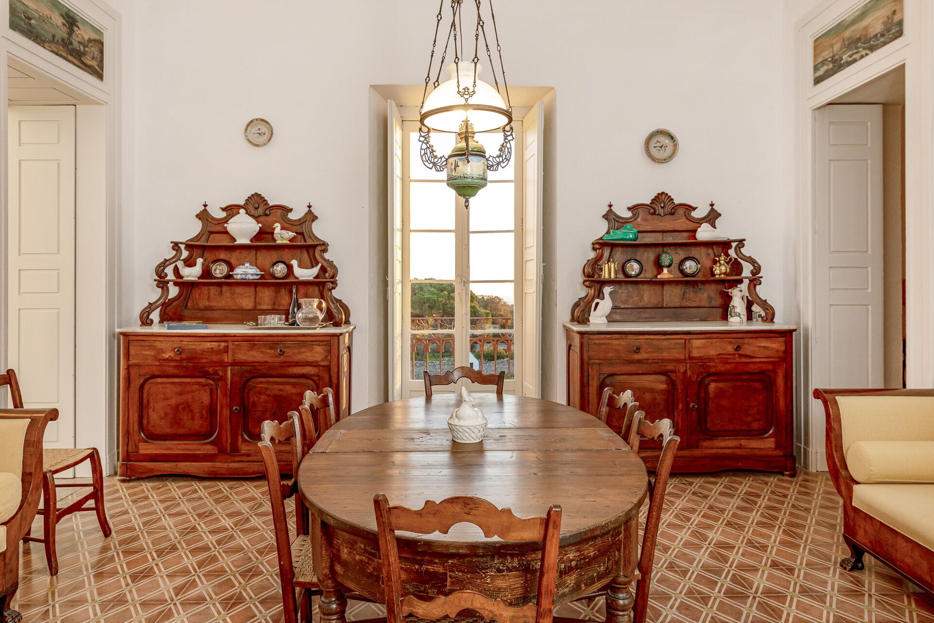 Guests can enjoy a breathtaking view of the lush garden and the beautiful surrounding countryside, with the sea on the horizon, creating an atmosphere of peace and serenity.