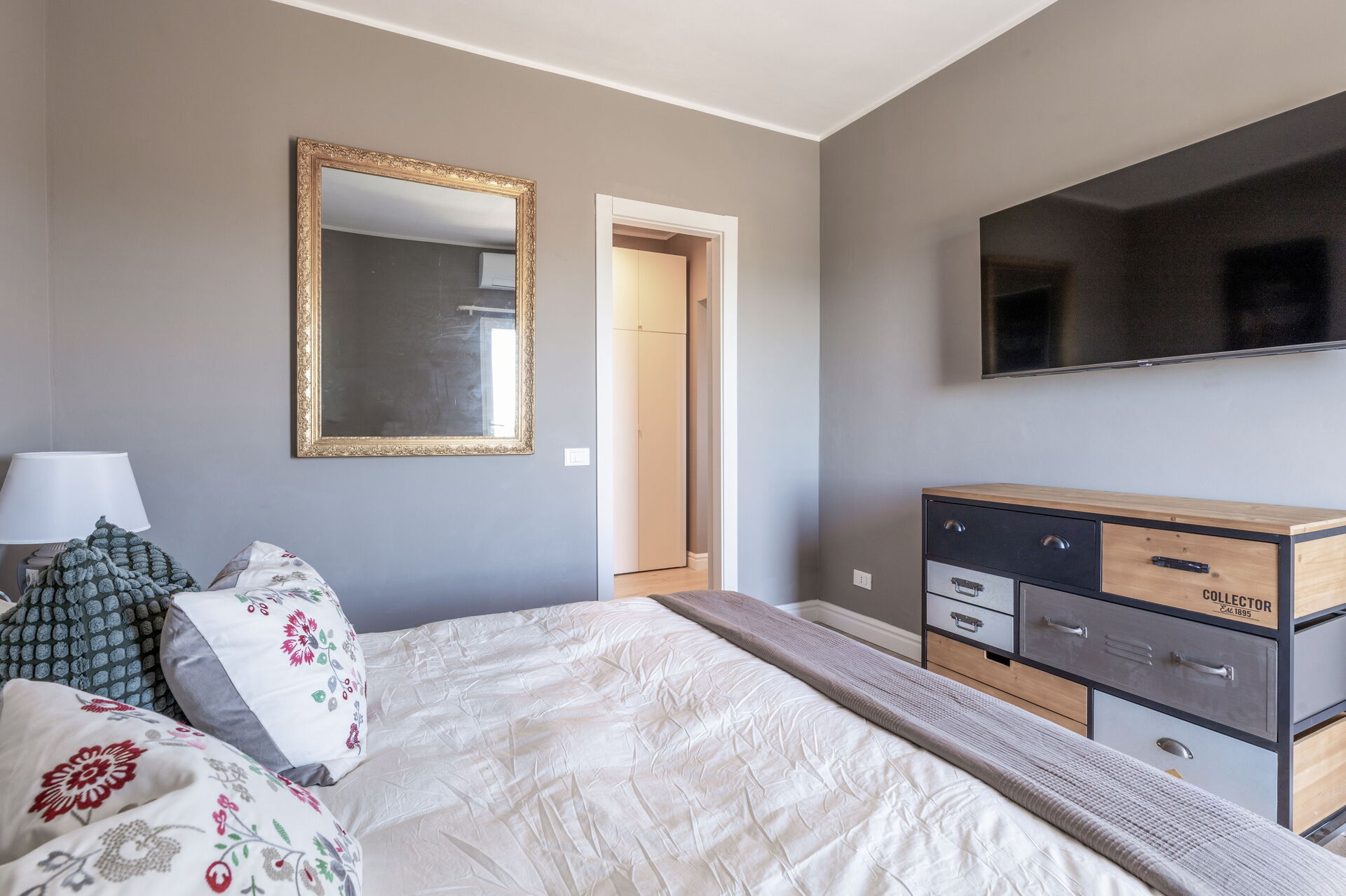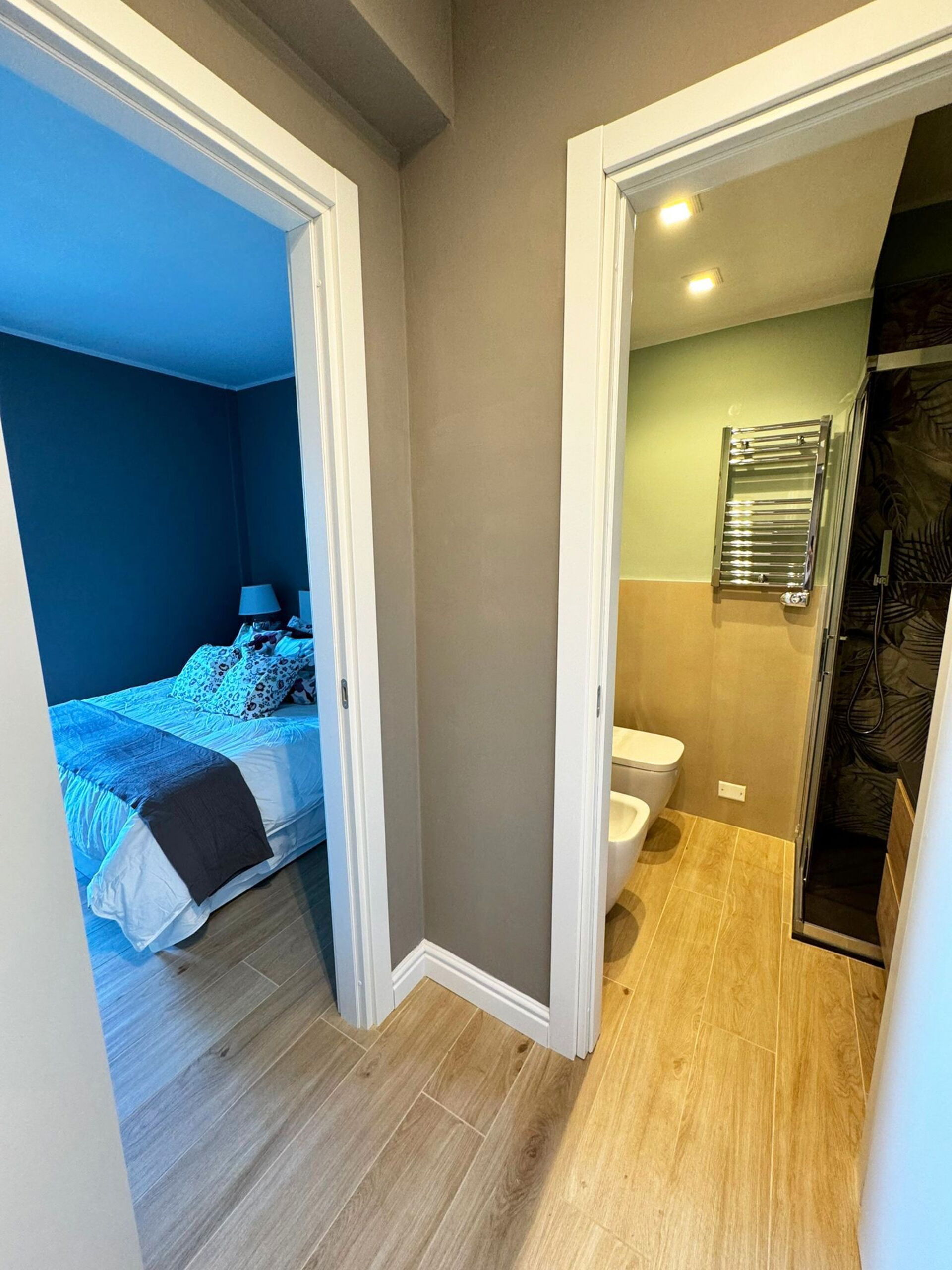 Soveværelse med bad: dobbeltseng, WIFI internet, klimaanlæg, satellit tv, vask, wc, bidet, hårtørrer, udgang til balkon.