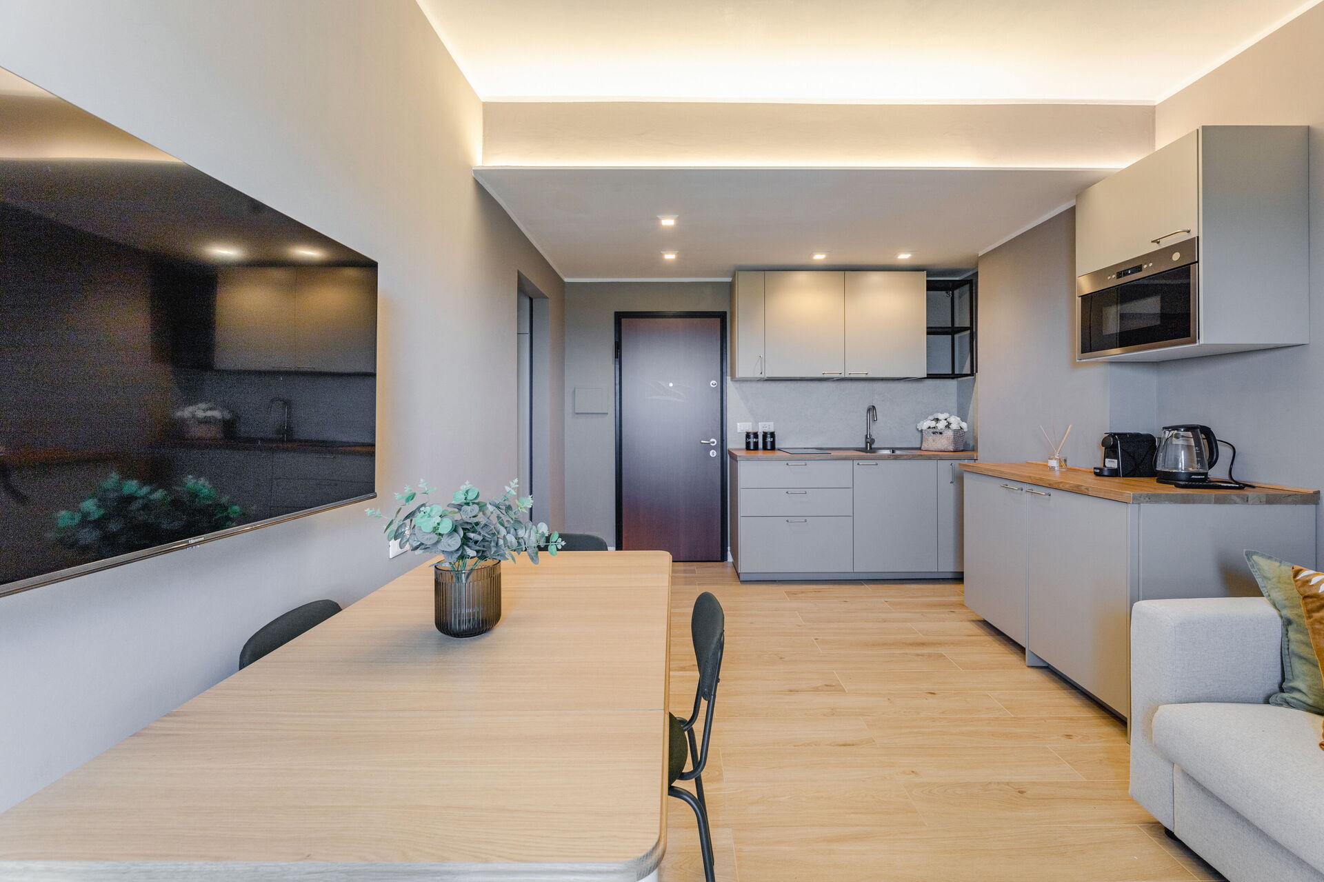 Ved ankomst til Suite Mareconero vil I finde en flot ren og velholdt ejendom med udsigt over havet perfekt til en rolig ferie i Marche. Uanset hvordan I tilbringer dagene - med shopping, sightseeing, museumsbesøg eller bare ved at køre rundt på landet, så kan I køle ned med familie og venner ved poolen, når I kommer hjem, hvilket er en perfekt måde at afslutte endnu en dejlig dag på i Marche. At spise med venner og familie er en kæmpe del af den italienske kultur. Benyt det velekviperede køkken til madlavning med lokale produkter, når du er på ferie. Køkkenet indeholder kaffemaskine, mikroovn, komfur og køleskab, samt, masser af service og bestik til op til fire personer.