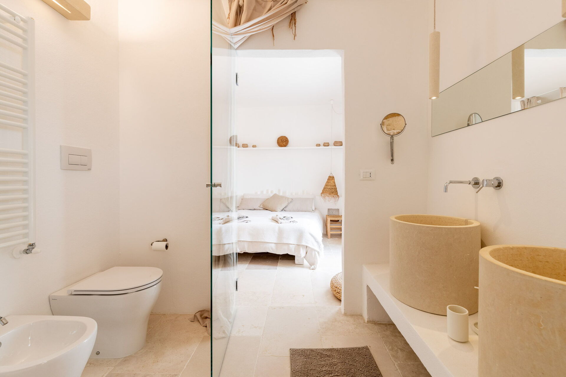 Bedroom + Ensuite Bathroom 2: air conditioning, hairdryer, bidet, shower, WIFI internet, double basin, double bed, toilet.