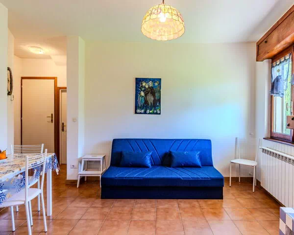 Ferielejligheden på 40 m2 ligger på stueetagen og byder på plads til maksimalt 2 gæster fordelt på 1 soveværelse og 1 badeværelse. Stueetagen består af et soveværelse med dobbeltseng, et badeværelse med badekar, bidet og WC, samt et åbent stue- og spiseområde med dobbeltsovesofa, spisebord og pejs med åbent ildsted. Køkkenet er udstyret med en ovn, en gasfyr med 4 gasbrændere, en brødrister og en fryser. Hele ferielejligheden har naturstensgulve, og der er udsigt til omgivelsernes landsdele.