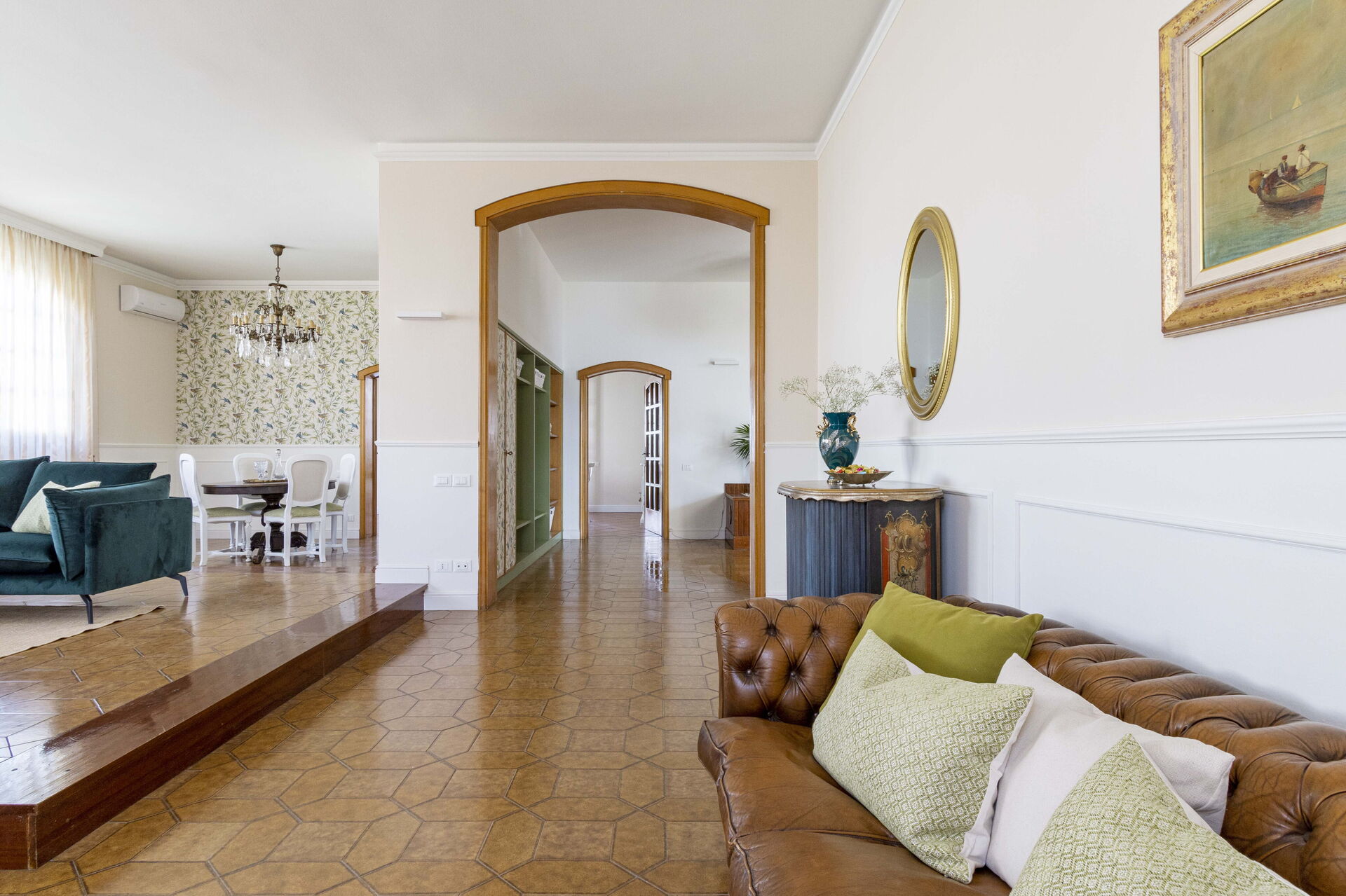 Køkken - stue: veludstyret køkken, spisebord, opvaskemaskine, køleskab, fryser, kogeplader, ovn, italiensk kaffemaskine, sofa, lænestol, kamin, WIFI internet, klimaanlæg, satellit tv.