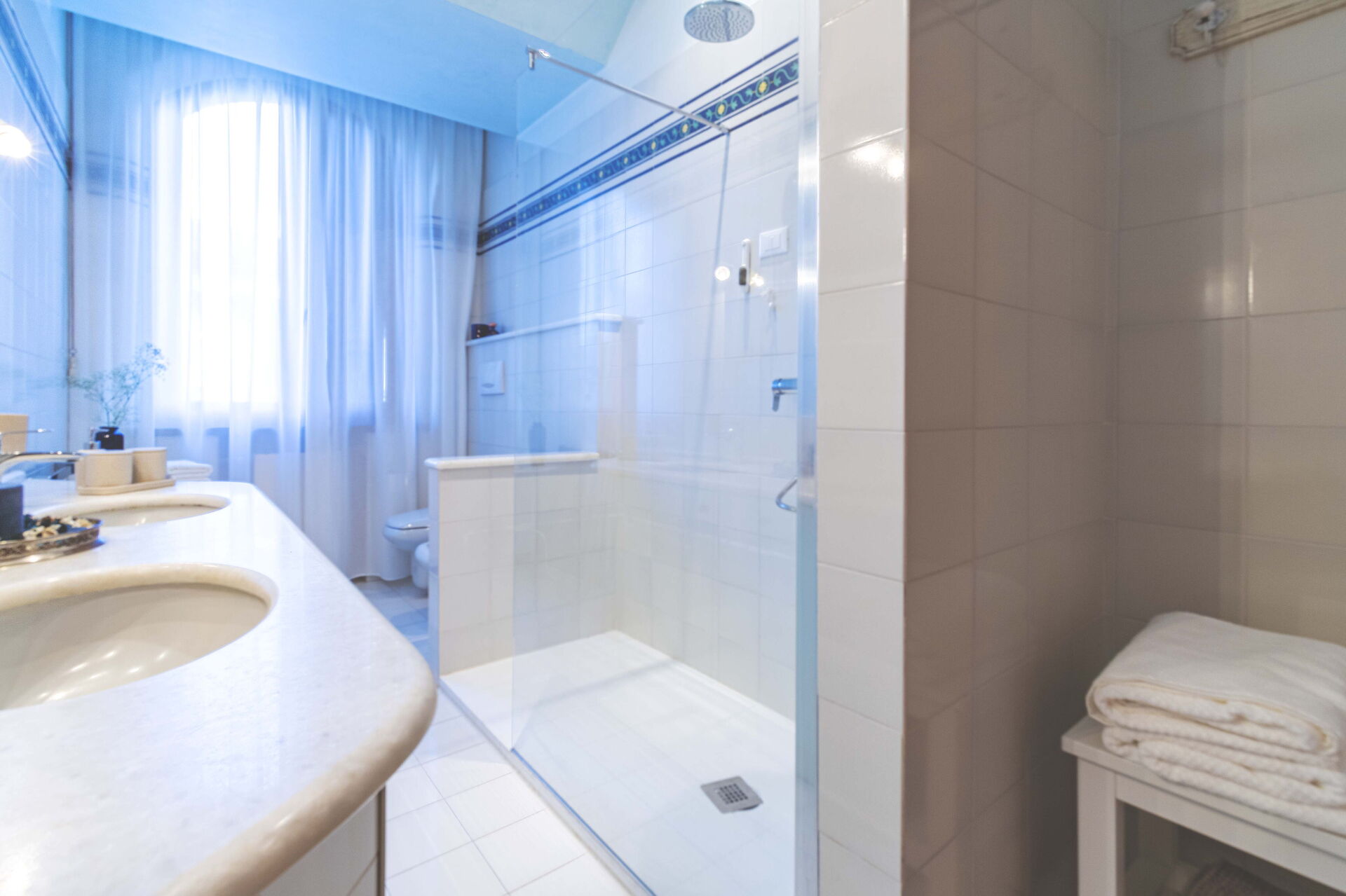 Badeværelse: vask, wc, bidet, bruser, vaskemaskine, WIFI internet.