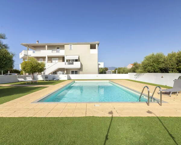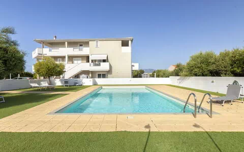 Moderne, hyggeligt flerfamiliehus "Residenza il Quarzo", på 2 etager, bygget i 2020. La Muddizza, 4 km fra centrum af Valledoria, rolig, solrige beliggenhed i en bydel, 2 km fra havet, 2 km fra stranden. Til medbenyttelse: pool (6 x 12 m, 125 cm dyb, Sæsonbestemt tilgængelighed: 01.Jun. - 30.Sep.). Udendørs brus. Trappe (18 trin) til huset. Parkeringsplads nr. 6 ved huset. Supermarked, indkøbscenter, restaurant 300 m, busstoppested 4 km, sandstrand "Baia Verde" 2 km. Nærliggende attraktioner: Isola Rossa 20 km, Costa Paradiso 30 km, Stintino 78 km, Olbia 87 m, Porto Torres 48 km, Alghero. Bemærk venligst: bil anbefales, ingen elevator.