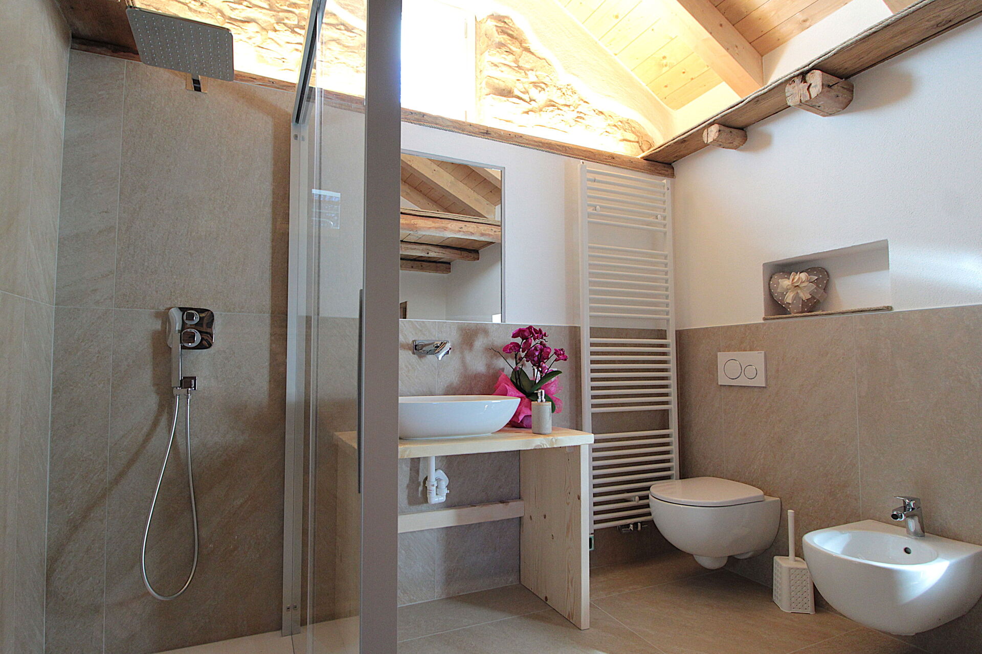 Badeværelse: vask, wc, bidet, bruser, WIFI internet.