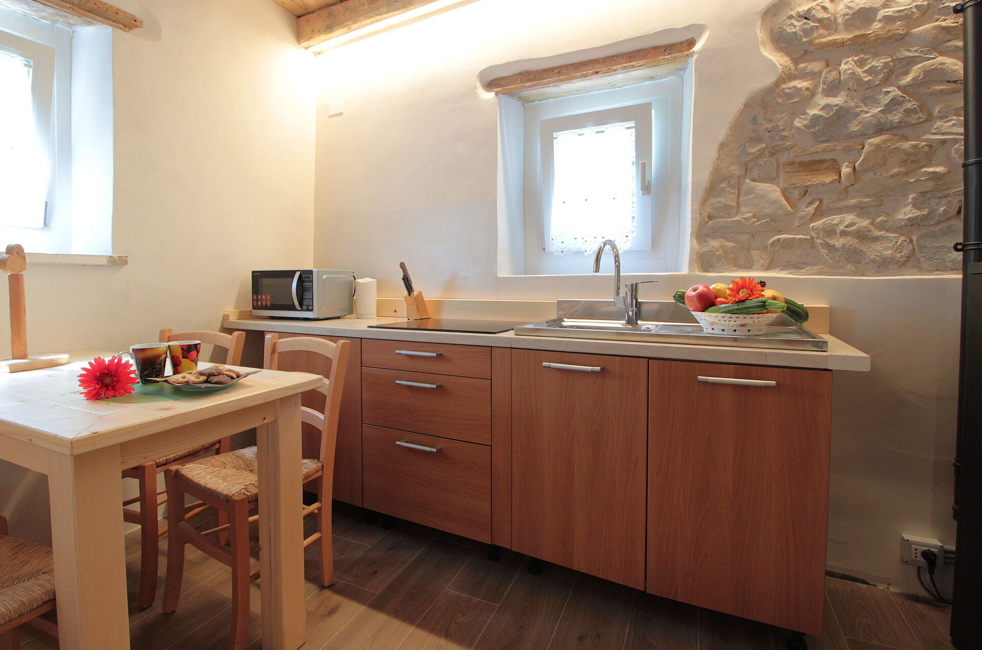 Når I ankommer, vil I møde en fin ren velholdt ejendom med udsigt over bjergene ideel til behagelig ferie i Veneto. Efter en hektisk dag med shopping, er det dejligt at nyde lidt tid med venner og familie med et glas vin - det er en perfekt måde at køle ned på sidst på dagen. Udenfor vil I også finde grill og legeplads. At spise med venner og familie er en kæmpe del af den italienske kultur. Benyt det velekviperede køkken til madlavning med lokale produkter, når du er på ferie. Køkkenet indeholder mikroovn og køleskab, samt, masser af service og bestik til op til otte personer.