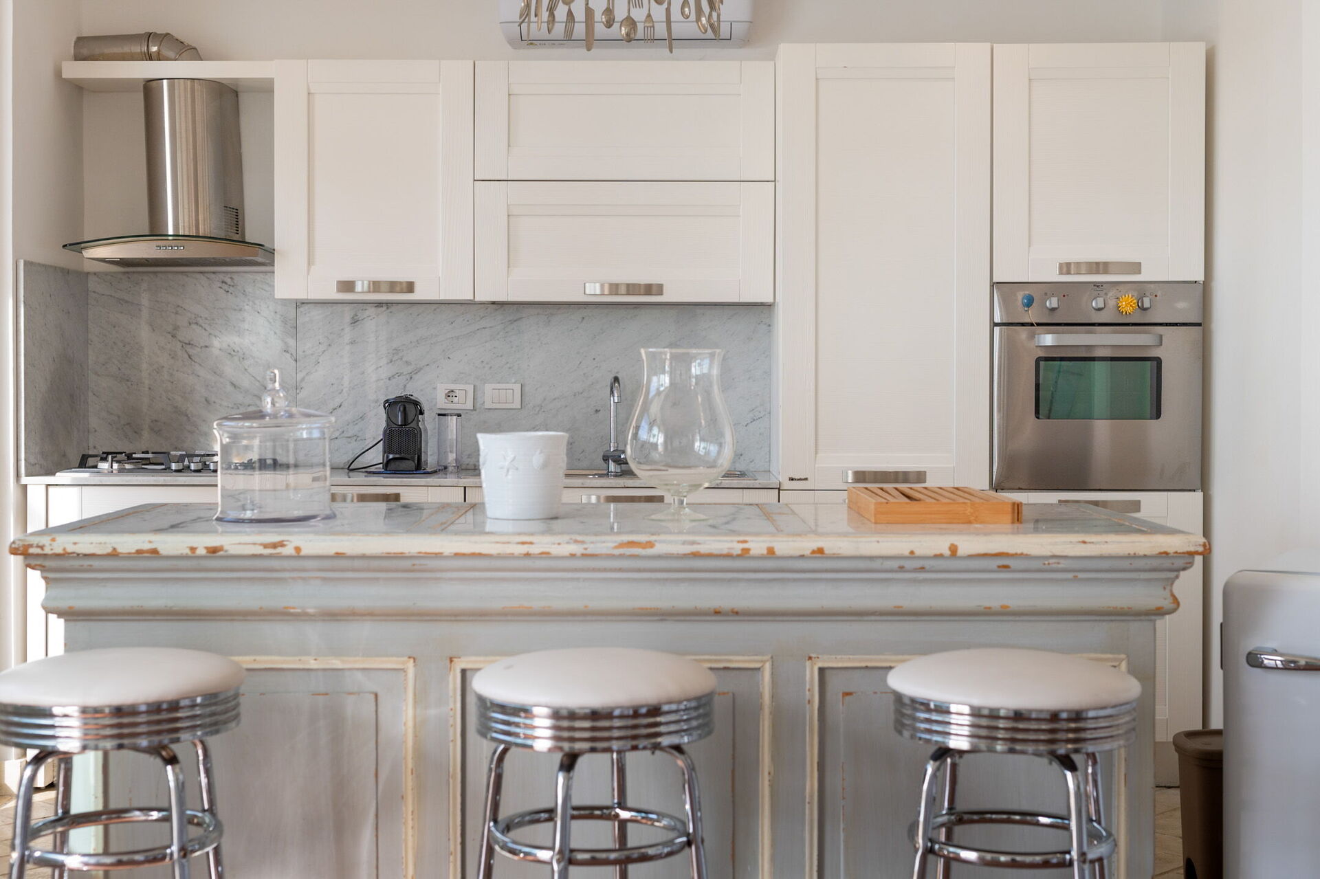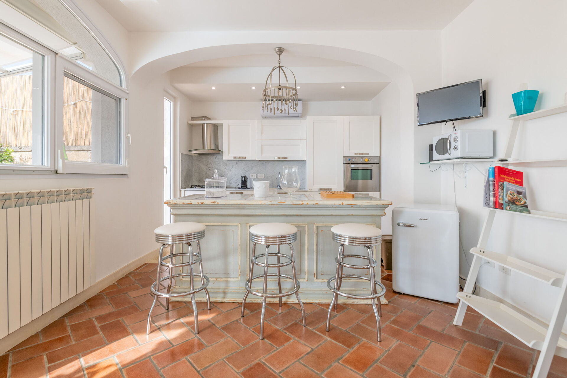 A fully equipped kitchen, equipped with an oven, a four-burner hob, a wine fridge and all the necessary utensils to prepare delicious meals.