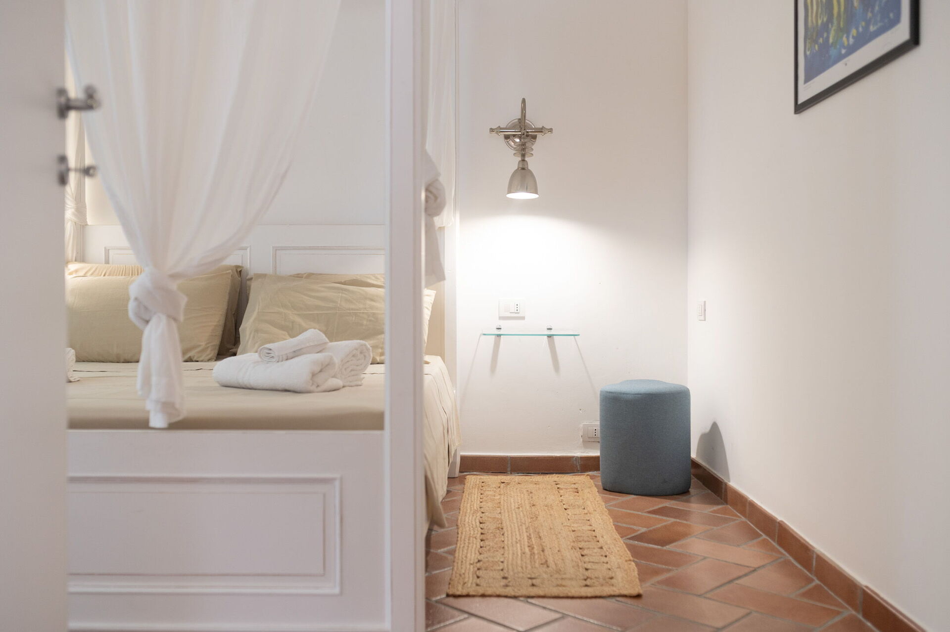 4 double bedrooms, three of which with en-suite bathrooms, and one with an elegant French bed with canopy and a desk for those who need to work.