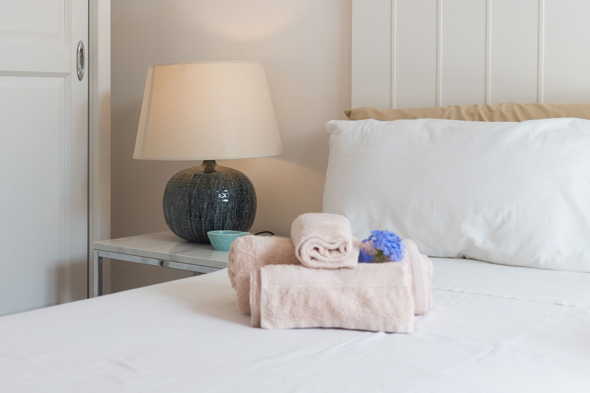 Provision of bed linen and towels upon arrival (face towel, body towel, bidet towel, pool towel, and shower mat per person).