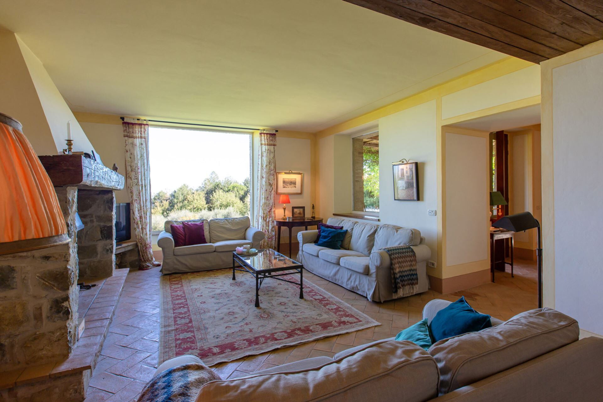 Denne selvstændige villa kan rumme op til 10 gæster fordelt på 5 elegant indrettede soveværelser og tilbyder 5 badeværelser, herunder 4 komplette badeværelser og 1 separat toilet. Stueetagen byder Dem velkommen gennem den rummelige møblerede terrasse ind i et stort modtagelsesrum med et storslået opholdsområde med en traditionel pejs og store vinduer, der indrammer en fantastisk udsigt over haven og de toskanske bakker. Det fuldt udstyrede køkken har moderne apparater og inkluderer et charmerende pejshjørne, mens den tilstødende spisesal strækker sig over to niveauer med plads til 12 personer. Også på stueetagen finder De et dobbeltværelse møbleret med en king size-seng, som tilbyder direkte adgang til haven og har et privat badeværelse med bruser. Et separat toilet og vaskerum kompletterer dette niveau. Ved at gå op ad trappen fra opholdsstuen kommer De til første sal, som har en bred korridor prydet med panoramavinduer, der fylder rummet med naturligt lys. Soveområdet omfatter et soveværelse med udsigt over dalen og et luksuriøst privat badeværelse udstyret med dobbeltvaske og et badekar med bruserslange. Tre yderligere dobbeltværelser er placeret på denne etage, hvoraf to er meget rummelige og et lidt mere intimt, alle med udsigt over enten dalen eller haven. To yderligere badeværelser med brusere betjener de resterende soveværelser på første sal.