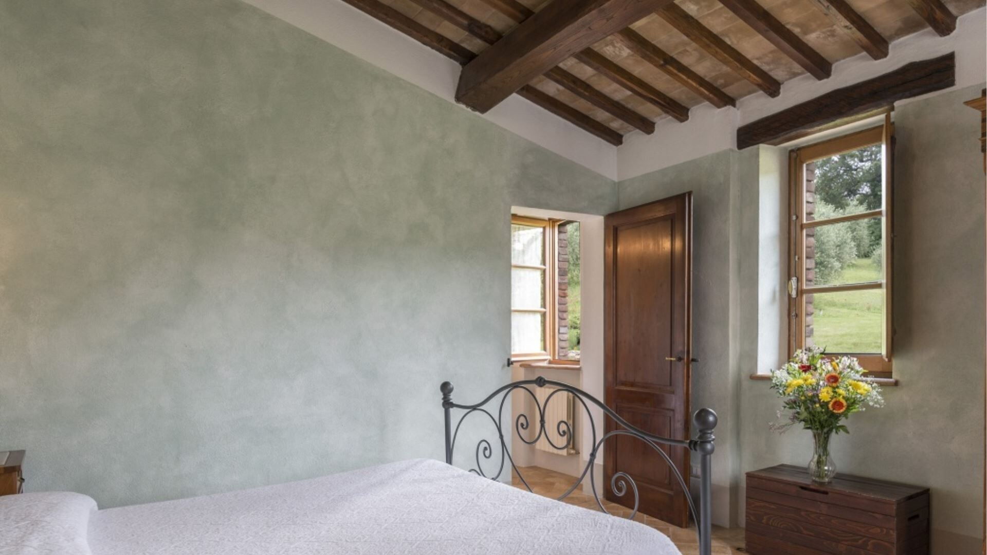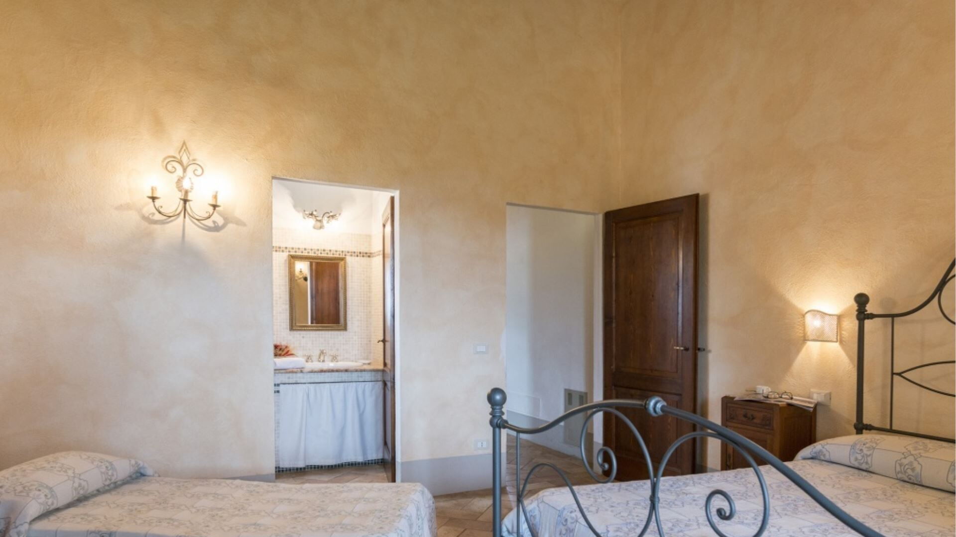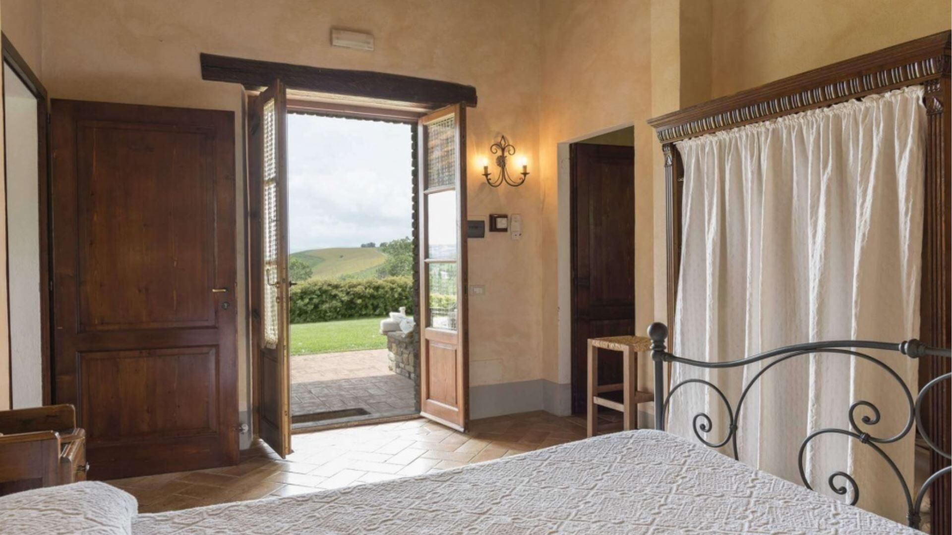 Indkvarteringen ved Podere Aurora strækker sig over en enkelt etage og består af to adskilte lejligheder, der tilsammen giver sovepladser til 8 gæster. Indretningen omfatter i alt 4 soveværelser og 4 badeværelser, hvilket sikrer behagelig indkvartering til den maksimale kapacitet. Castagno-lejligheden har en stue med integreret tekøkken og pejs, komplementeret af 2 dobbeltværelser, hver med eget badeværelse. Faggio-lejligheden tilbyder en rummelig åben konfiguration, der kombinerer køkkenet og spisestuen med en pejs, hvorfra en lille gang fører til soveområdet. Denne lejlighed indeholder 2 dobbeltværelser, det ene med eget badeværelse med bruser og det andet med separat badeværelse med bruser. Værelset med eget badeværelse i Faggio inkluderer også en lænestolsseng og direkte adgang til det udvendige område. Gennem begge lejligheder nyder de lyse rum godt af flere adgangspunkter til udendørsområderne, og loftventilatorer er installeret i soveværelserne for at sikre behagelig luftcirkulation.