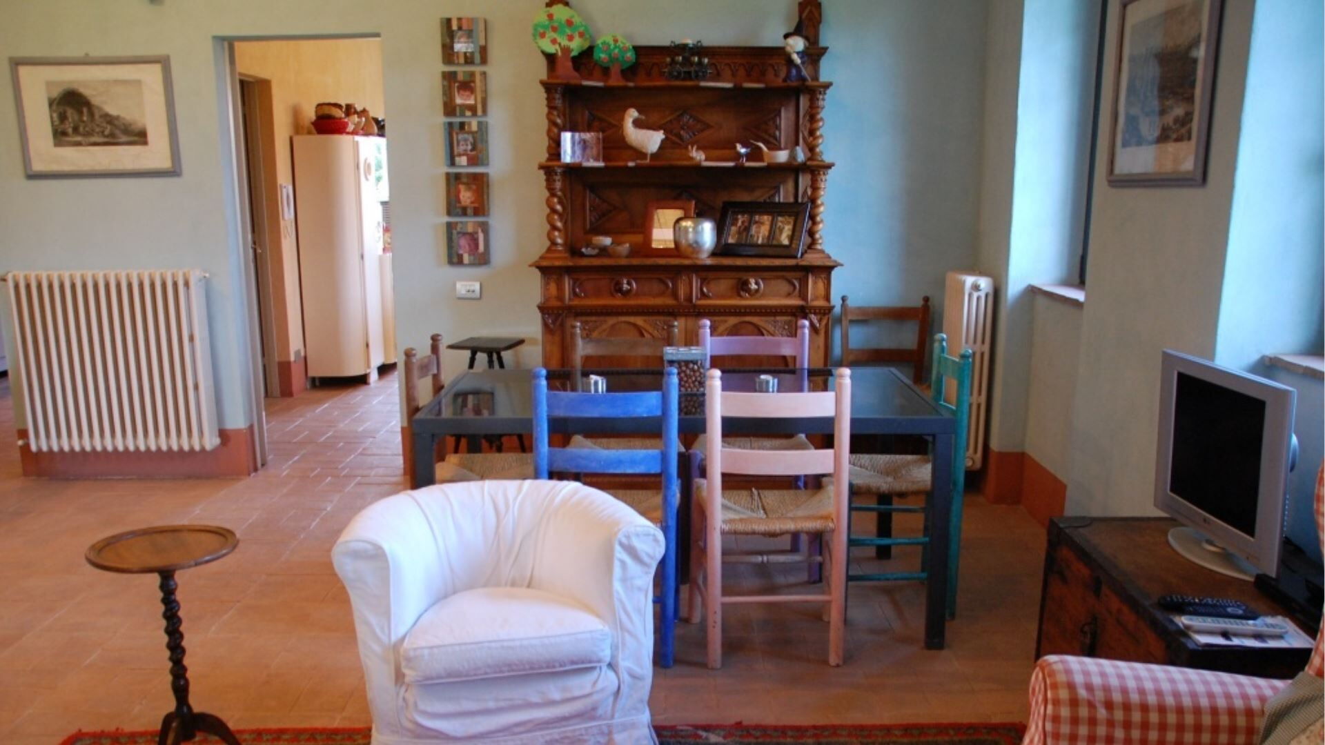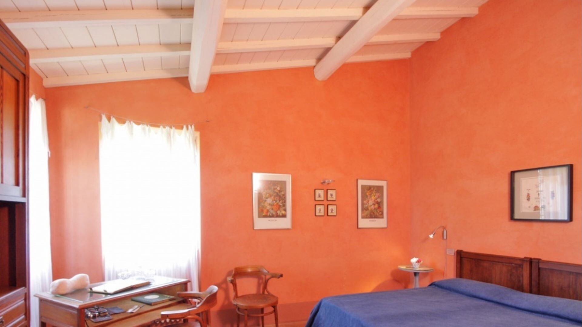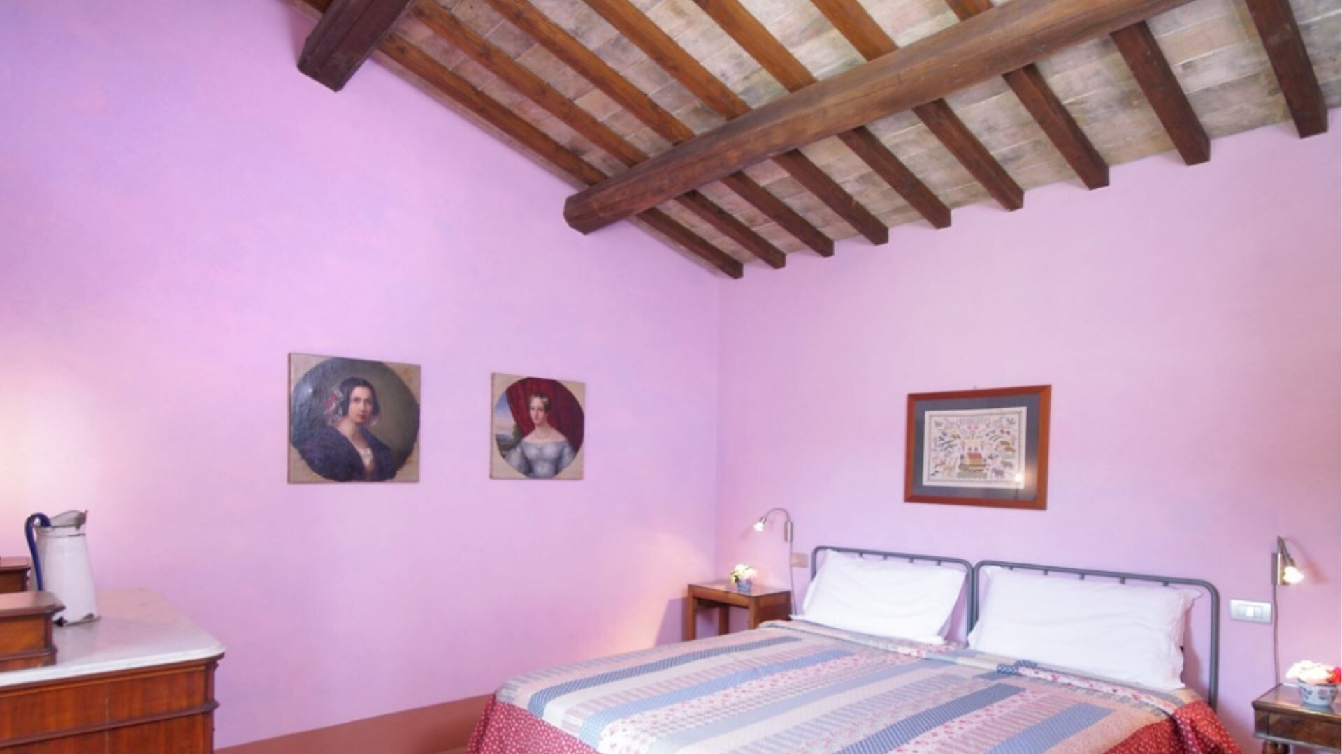 Landbruget kan rumme op til 8 gæster fordelt på 4 dobbeltværelser, hver ledsaget af sit eget private badeværelse. Indkvarteringen er gennemtænkt fordelt over to etager, hvilket skaber en rummelig og komfortabel indretning. På stueetagen vil De finde en stor spisestue med en traditionel pejs, et fuldt udstyret køkken og et bekvemt vaskerum med et servicebadeværelse. Også på dette niveau er der et dobbeltværelse med et tilstødende badeværelse udstyret med en bruseniche, der er specielt designet til at være kørestolsvenlig. Når De går op på første sal, vil De opdage et lille studieområde sammen med tre yderligere dobbeltværelser, hver med sit eget private badeværelse med en stor bruseniche. Et af værelserne på første sal er indrettet med en dobbeltseng, mens de to andre værelser tilbyder fleksible sovearrangementer og kan konfigureres som enten to enkeltsenge eller dobbeltseng efter Deres præferencer. Det indvendige design gennem hele landbruget præsenterer en elegant blanding af antikke familiemøbler, der veksler med omhyggeligt udvalgte moderne tilføjelser, mens væggene er behandlet med kalk og forstærket med meget farverige naturlige pigmenter, der skaber en varm og indbydende atmosfære.