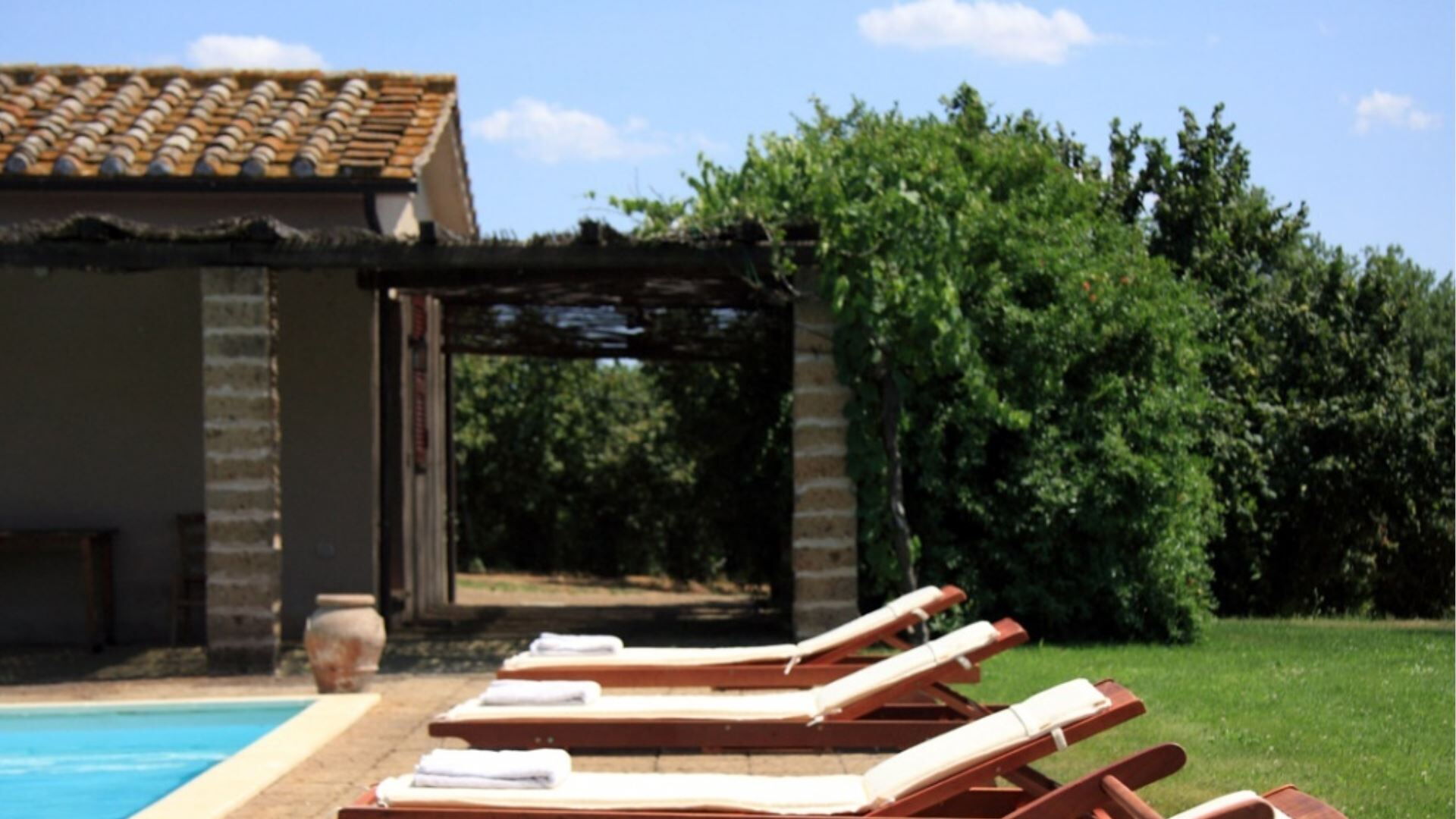 Bagnoletto er et pragtfuldt landhus beliggende på et plateau midt i det åbne landskab, der tilbyder Dem en exceptionel ferieboligoplevelse i Orte, Italien. Denne smukt restaurerede ejendom ligger midt på en økologisk landbrugsejendom, der strækker sig over 40 hektar, og giver komplet privatliv uden andre huse i nærheden. Bygningen blev fuldstændigt renoveret i 2006, hvor de originale arkitektoniske træk blev bevaret, mens moderne bekvemmeligheder blev tilføjet. Beliggende kun 6 kilometer fra Orte, et vigtigt motorvejskryds, der forbinder Rom med Milano og Viterbo med Terni og Perugia, nyder landbruget godt af fremragende togforbindelser til Rom på kun 45 minutter og Firenze på 2 timer og 15 minutter. Denne strategiske placering gør det ideelt for dem, der ønsker at kombinere et ophold i fuldstændig ro med besøg i de store kunstbyer i Umbrien og det nordlige Lazio. Ejendommen tilbyder bekvem Wi-Fi-adgang overalt og har et dedikeret parkeringsområde dækket af en skyggende pergola til Deres køretøjer. De vil finde en indbydende ikke-opvarmet swimmingpool, der måler 12 meter gange 6 meter med en dybde på 1,60 meter, perfekt til forfriskende dukkert under Deres ophold.