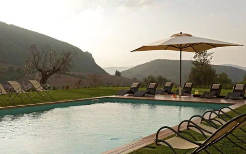 Villa del Cammino er en pragtfuld luksus ferievilla beliggende på en af Italiens mest eksklusive private landbrugsgodser i Perugia. Denne exceptionelle ejendom fremviser bemærkelsesværdig elegance og komfort, omgivet af tusindvis af hektar uplettet skov og olivenlunde. Villaens mest spektakulære træk er dens frodige have med over 3.000 planter, der blomstrer gennem forskellige perioder af året og skaber en vidunderlig farverig fremvisning, der ændrer sig med årstiderne. De vil nyde bekvemmeligheden ved privat parkering og en opvarmet swimmingpool, der forbedrer Deres ophold. Ejendommen består af en hovedvilla med plads til op til 10 gæster samt en elegant cottage nær haverne til yderligere 2 gæster, hvilket gør den perfekt for større grupper, der søger privatliv og luksus i hjertet af Umbrien.