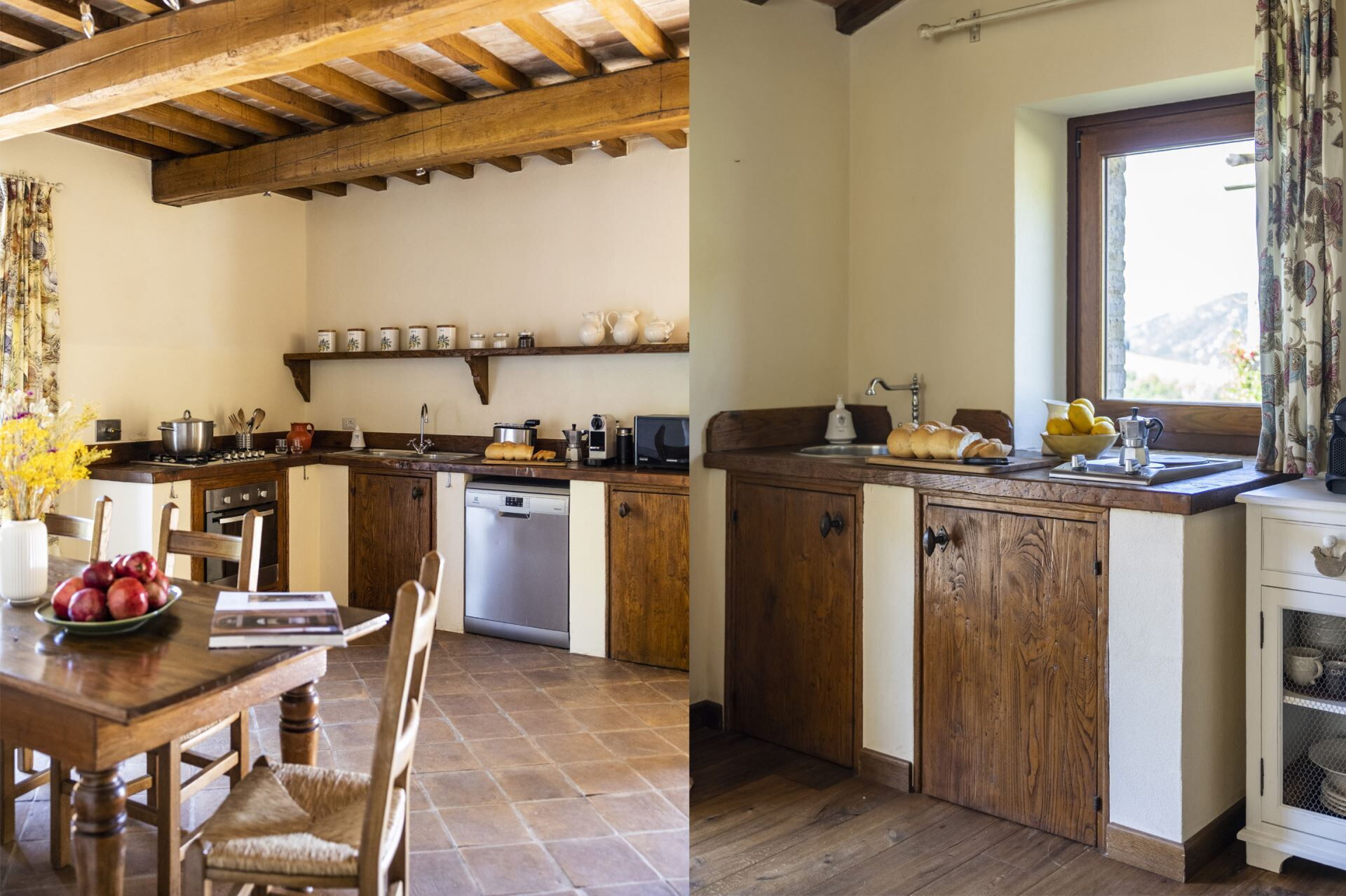 Villa del Cammino er gennemtænkt designet til at rumme op til 12 gæster fordelt på 6 soveværelser og 6 badeværelser, fordelt mellem hovedvillaen og en charmerende cottage. Stueetagen i hovedvillaen har en rummelig stue med pejs, en separat spisestue samt et fuldt udstyret køkken. Dette niveau inkluderer også et vaskerum og et dobbeltværelse med queensize seng på 1,80x2m, komplet med eget badeværelse med bruser. På første sal vil De finde fire yderligere soveværelser, herunder to dobbeltværelser med kingsize senge på henholdsvis 1,95x2m og 2x2m, hver med privat badeværelse udstyret med både bruser og badekar. To flere dobbeltværelser har senge på 1x2m, hver med private badeværelser, det ene med bruser og det andet med badekar. Den elegante cottage tilbyder en åben planløsning, der kombinerer opholdsstue, køkken og spiseplads sammen med et kingsize soveværelse på 2x2m med eget badeværelse med bruser.