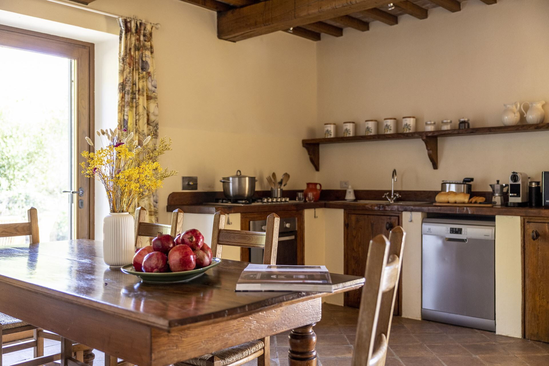 - Velkomstkurv med Nespresso kapsler og produkter fra godset, inklusive initial levering af flaskevand, kaffepulver, te, sukker, madlavnings- og bordsalt, olivenolie og kaffekapsler ved ankomst
