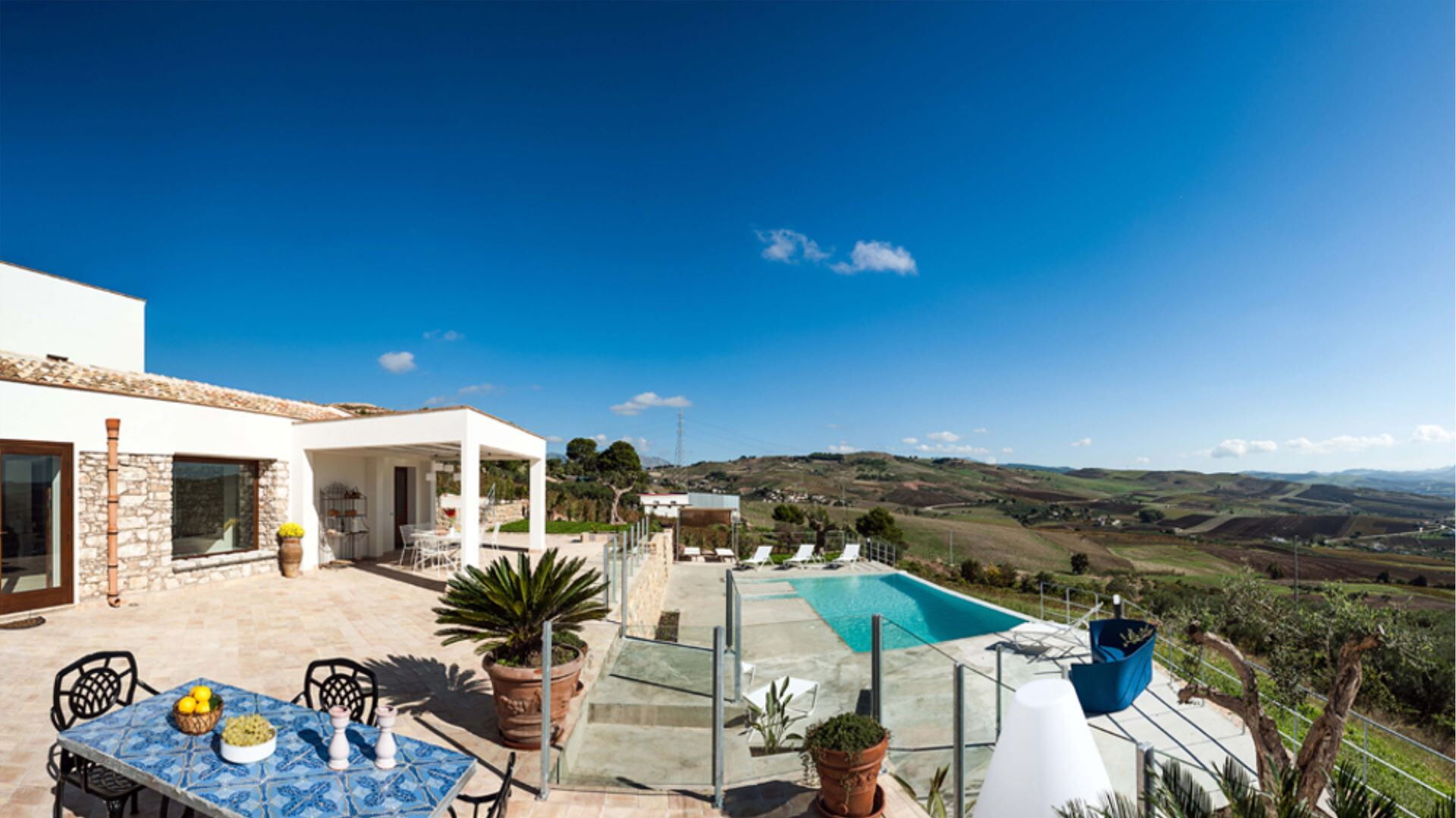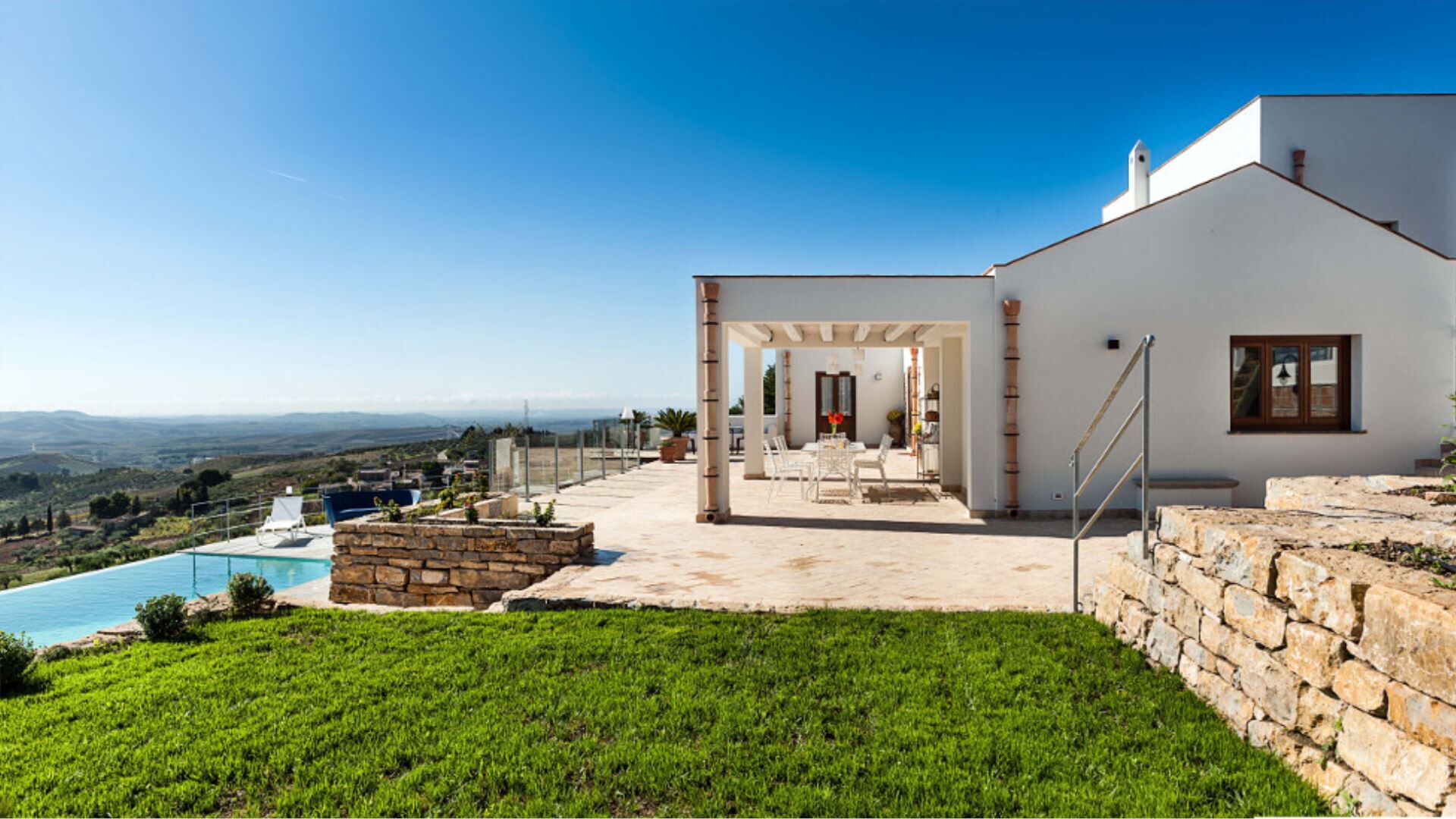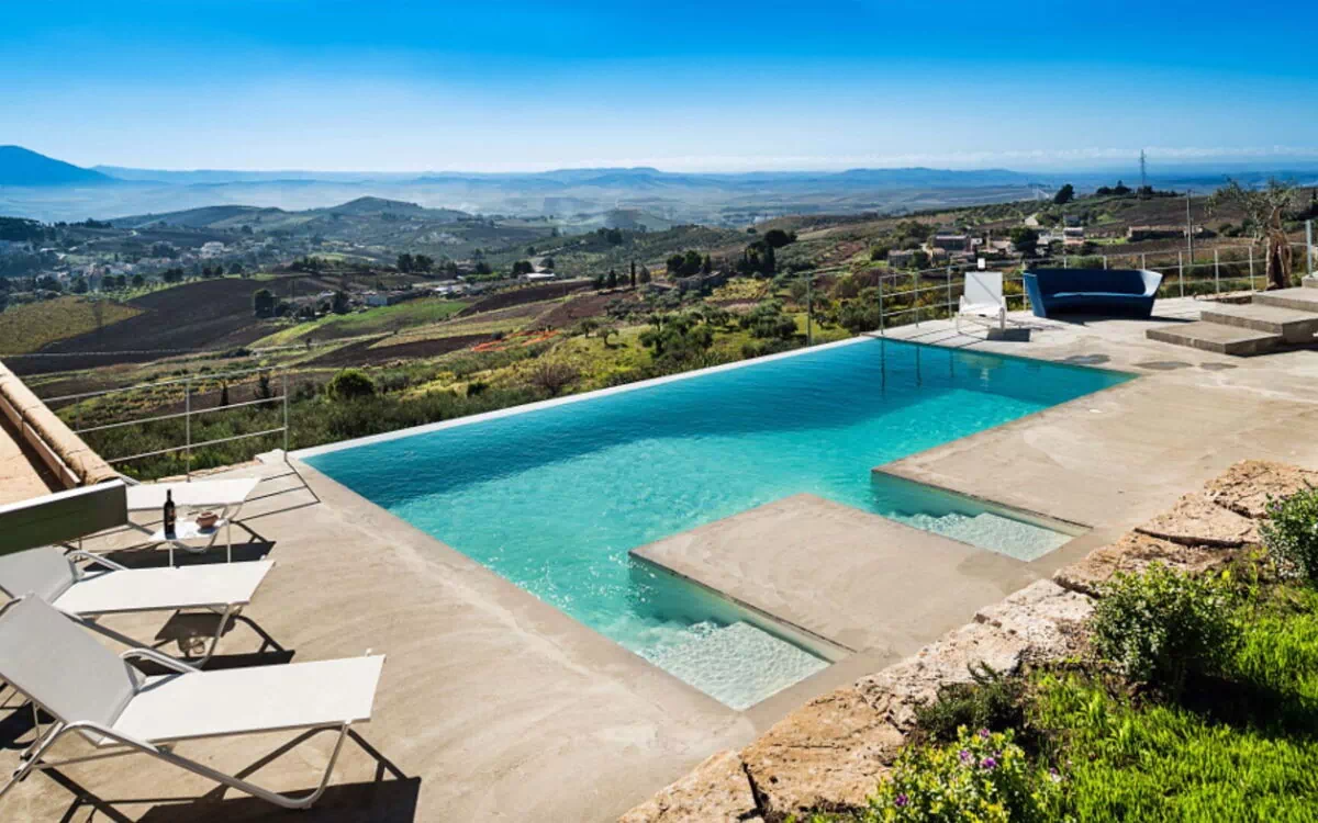 Villa Eroica er en eksklusiv ferievilla med infinity pool beliggende i det fascinerende landskab ved Trapani, harmonisk placeret mellem de historiske byer Erice og Segesta i Marsala-regionen i Italien. Denne fornemme ejendom indtager en dominerende forhøjet position og byder på fortryllende panoramaudsigt over dalen, som De kan beundre i fuldstændig ro fra swimmingpoolen, haven og de generøst proportionerede udstyrede terrasser. Opført med omhyggelig opmærksomhed på lokale arkitektoniske traditioner og problemfri integration med det omgivende landskab eksemplificerer villaen harmoni og sammenhæng i design, samtidig med at den garanterer en ekstraordinær levestandard. De indbydende interiører fremviser blotlagte stenvægge og lofter prydet med traditionelle træbjælker, der mesterligt kombinerer ældgammel charme med moderne komfort. Indendørs vil De opdage en elegant stue med pejs, en raffineret spisestue og et fuldt udstyret køkken, alle designet til at skabe den perfekte ramme om mindeværdige sociale sammenkomster. Villaen tilbyder privat parkering inden for ejendommens område, hvilket sikrer bekvem og sikker bilplacering gennem hele Deres ophold.