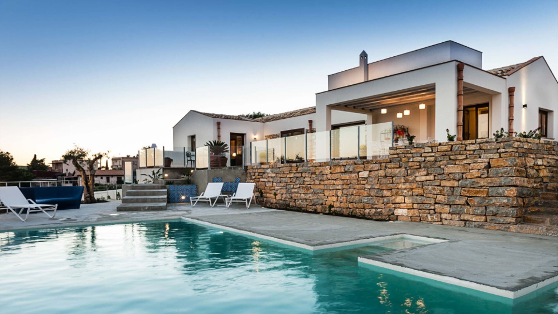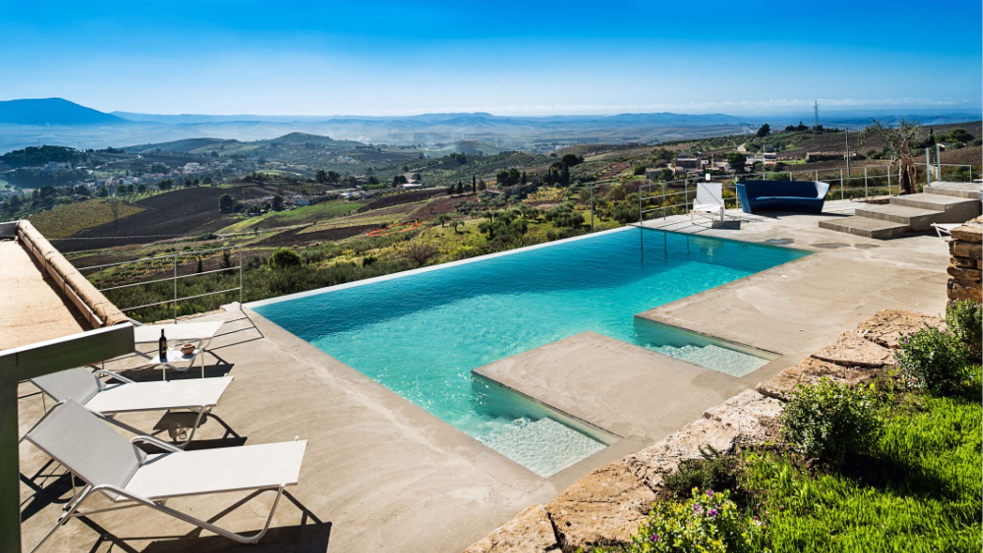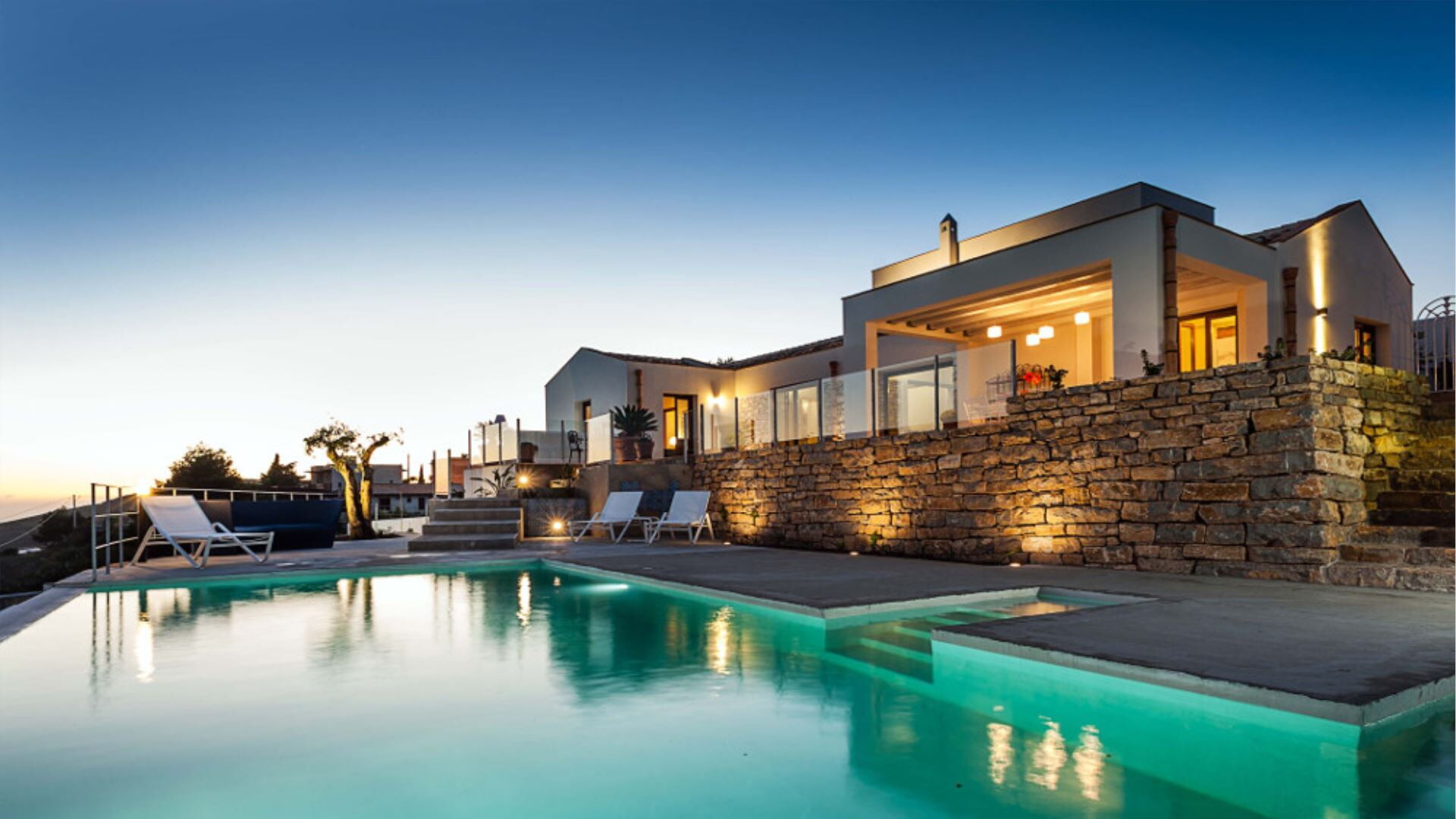Villa Eroica er en eksklusiv ferievilla med infinity pool beliggende i det fascinerende landskab ved Trapani, harmonisk placeret mellem de historiske byer Erice og Segesta i Marsala-regionen i Italien. Denne fornemme ejendom indtager en dominerende forhøjet position og byder på fortryllende panoramaudsigt over dalen, som De kan beundre i fuldstændig ro fra swimmingpoolen, haven og de generøst proportionerede udstyrede terrasser. Opført med omhyggelig opmærksomhed på lokale arkitektoniske traditioner og problemfri integration med det omgivende landskab eksemplificerer villaen harmoni og sammenhæng i design, samtidig med at den garanterer en ekstraordinær levestandard. De indbydende interiører fremviser blotlagte stenvægge og lofter prydet med traditionelle træbjælker, der mesterligt kombinerer ældgammel charme med moderne komfort. Indendørs vil De opdage en elegant stue med pejs, en raffineret spisestue og et fuldt udstyret køkken, alle designet til at skabe den perfekte ramme om mindeværdige sociale sammenkomster. Villaen tilbyder privat parkering inden for ejendommens område, hvilket sikrer bekvem og sikker bilplacering gennem hele Deres ophold.