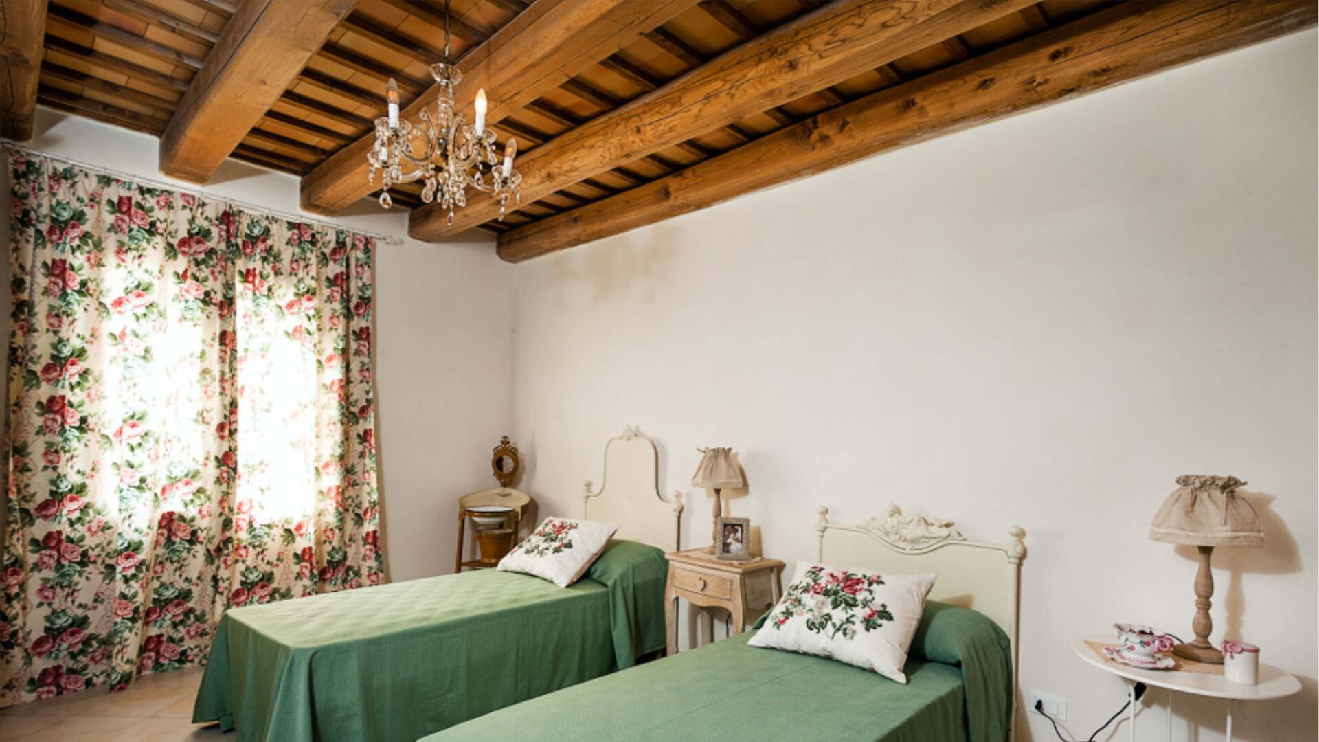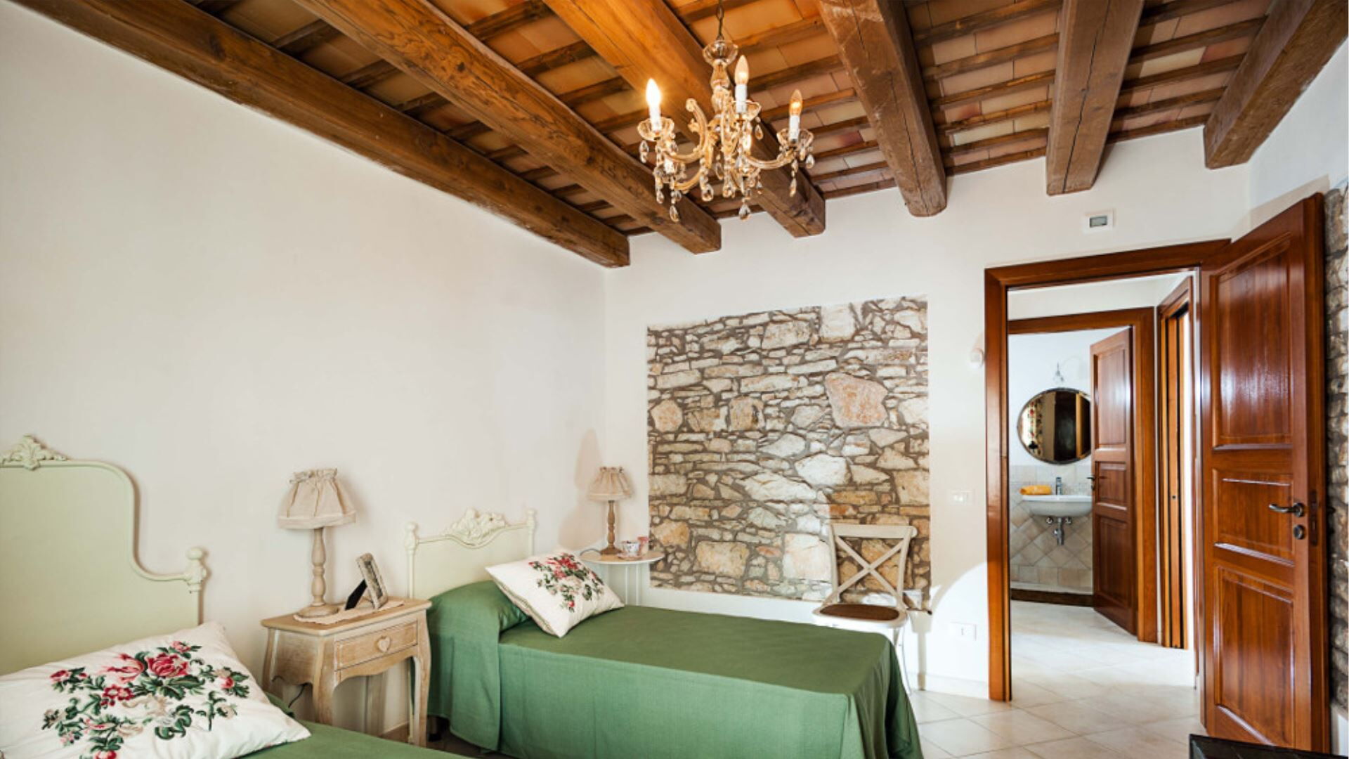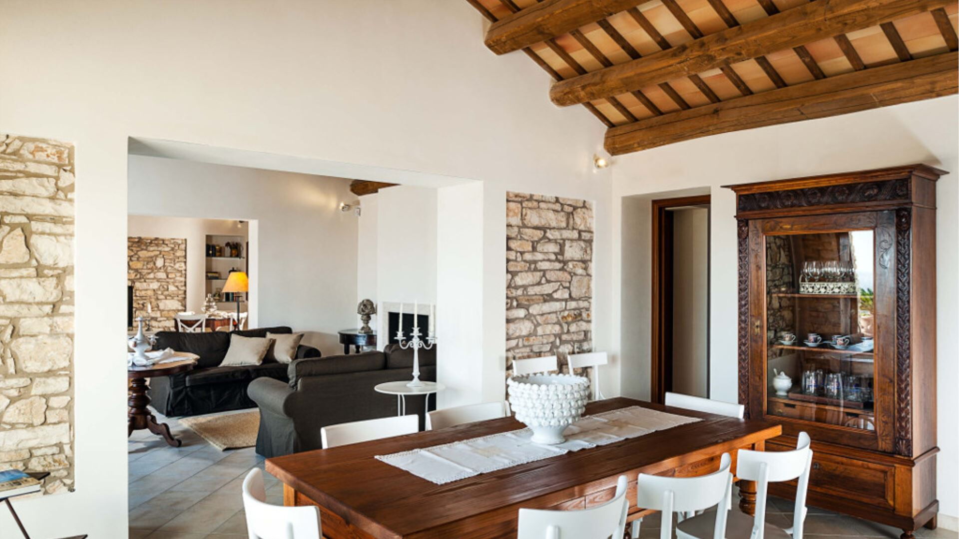 Villa Eroica er gennemtænkt konfigureret over to niveauer til komfortabelt at rumme op til 8 gæster i 4 soveværelser komplementeret af 4 badeværelser. Stueetagen omfatter de primære opholdslokaler, herunder en dagligstue med pejs, en separat stue, en spisestue og et fuldt udstyret køkken. Ligeledes placeret på stueetagen er et praktisk vaskerum samt soveindkvarteringen bestående af 1 dobbelt- eller tosengssoveværelse med direkte adgang til en lille terrasse og et tilhørende badeværelse med bruser, plus 2 yderligere dobbeltsoveværelser, der hver har sit eget private badeværelse med bruser. Ved at stige op til første sal vil De finde 1 dobbelt- eller tosengssoveværelse udstyret med både badekar og bruser i sit tilhørende badeværelse. Denne vertikale fordeling af rum sikrer privatliv og komfort for alle gæster, idet stueetagensoveværelserne tilbyder bekvem adgang til have- og poolområderne, mens soveværelset på første sal giver forhøjet udsigt og en følelse af afsondrethed.