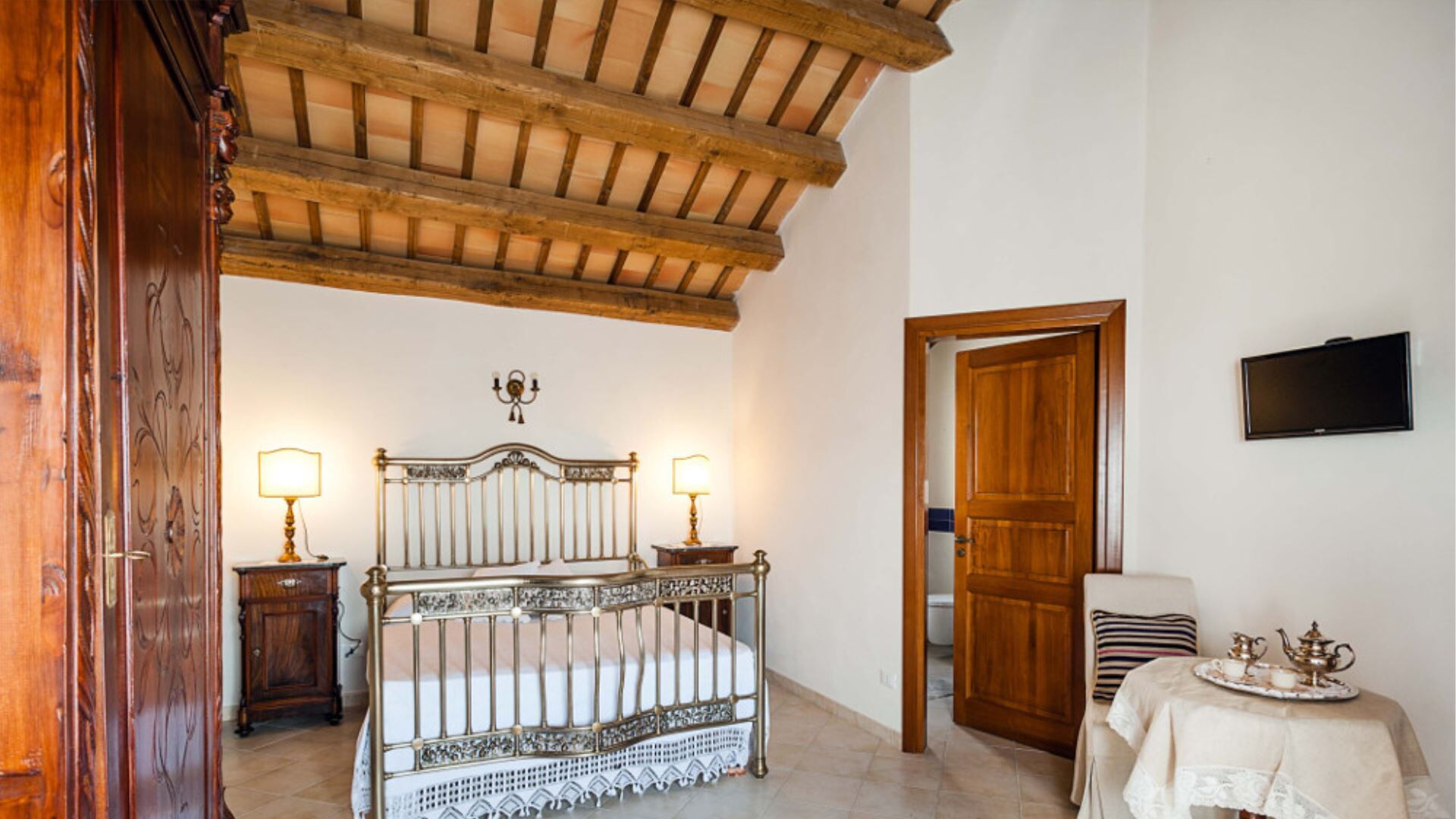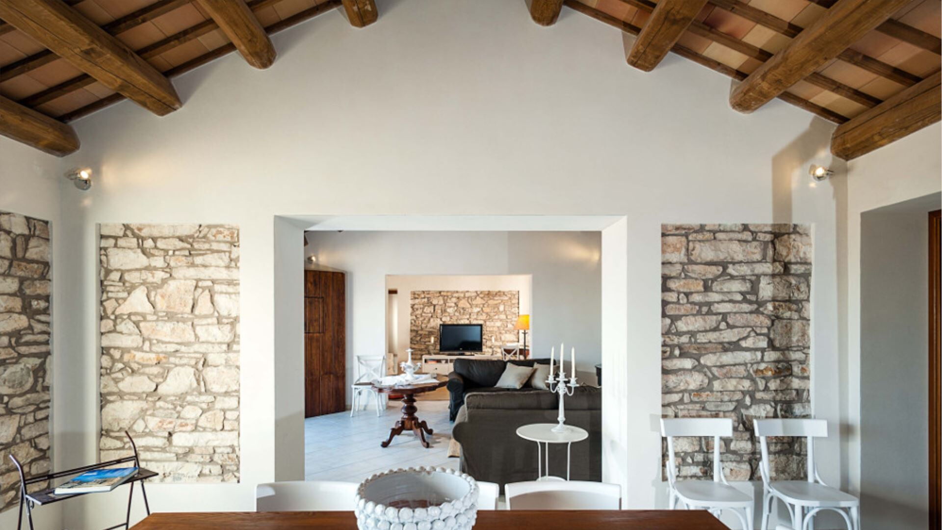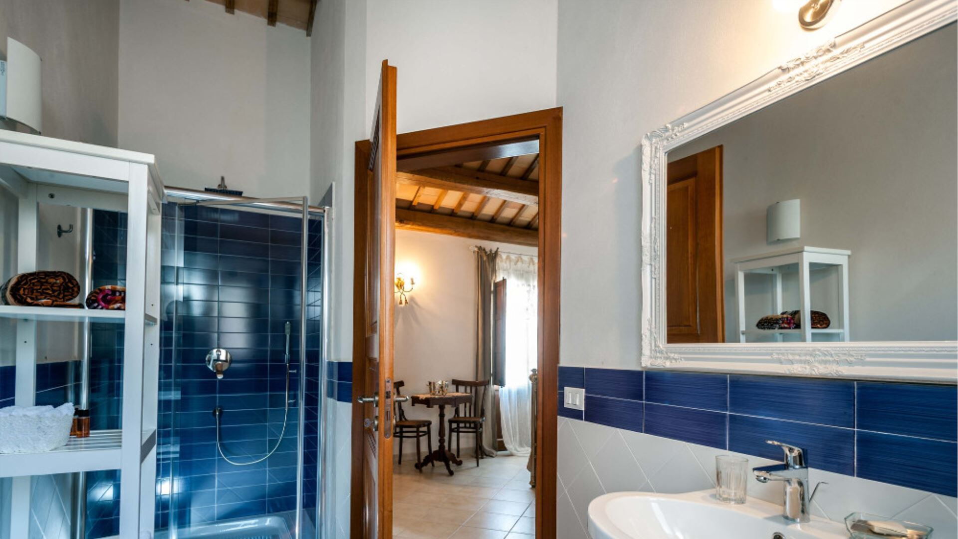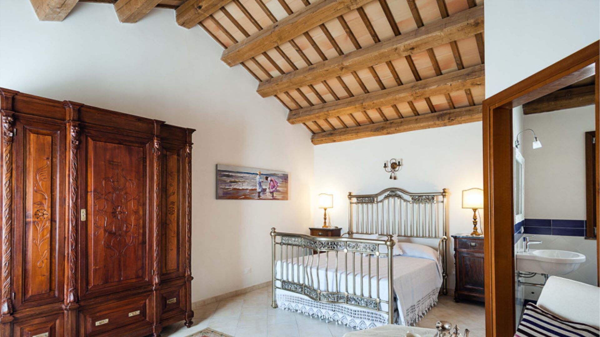 Villa Eroica er gennemtænkt konfigureret over to niveauer til komfortabelt at rumme op til 8 gæster i 4 soveværelser komplementeret af 4 badeværelser. Stueetagen omfatter de primære opholdslokaler, herunder en dagligstue med pejs, en separat stue, en spisestue og et fuldt udstyret køkken. Ligeledes placeret på stueetagen er et praktisk vaskerum samt soveindkvarteringen bestående af 1 dobbelt- eller tosengssoveværelse med direkte adgang til en lille terrasse og et tilhørende badeværelse med bruser, plus 2 yderligere dobbeltsoveværelser, der hver har sit eget private badeværelse med bruser. Ved at stige op til første sal vil De finde 1 dobbelt- eller tosengssoveværelse udstyret med både badekar og bruser i sit tilhørende badeværelse. Denne vertikale fordeling af rum sikrer privatliv og komfort for alle gæster, idet stueetagensoveværelserne tilbyder bekvem adgang til have- og poolområderne, mens soveværelset på første sal giver forhøjet udsigt og en følelse af afsondrethed.