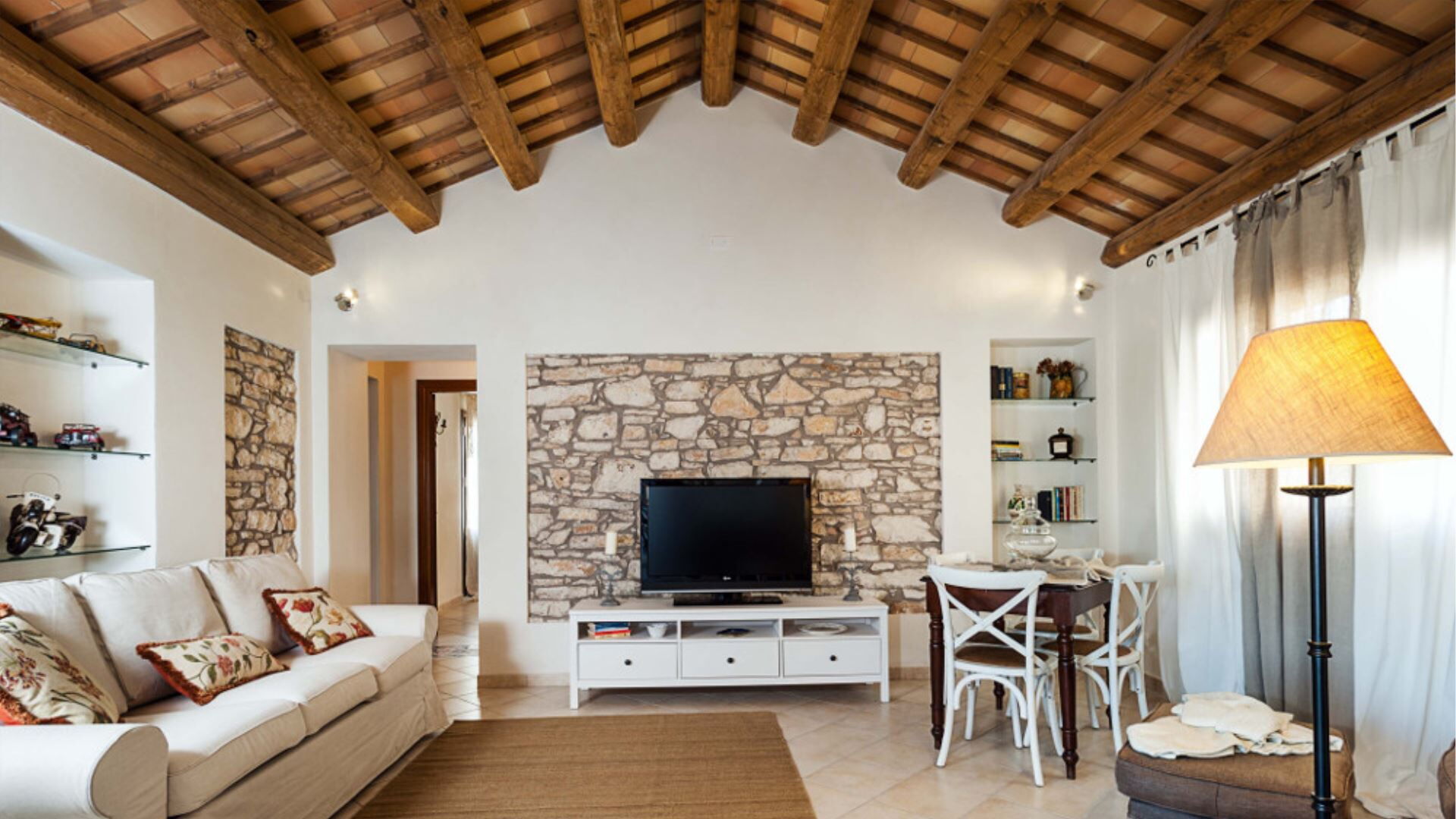 Villa Eroica er omfattende udstyret med moderne faciliteter for at sikre Deres komfort gennem hele Deres ophold. Klimakontrol leveres gennem aircondition split-enheder installeret i alle rum, mens varme er tilgængelig via radiatorer gennem hele villaen i koldere måneder. Den private have tilbyder ekspansivt udendørsareal udelukkende til Deres brug, komplementeret af en indbydende pejs i dagligstuen, der skaber en varm atmosfære under aftensammenkomster. Underholdningsbehov er godt adresseret med satellit-tv tilgængeligt i både soveværelserne og stuen, hvilket sikrer, at De forbliver forbundet til Deres foretrukne programmer. Køkkenet leveres fuldt udstyret med væsentlige apparater, herunder en opvaskemaskine til bekvem oprydning og en mikrobølgeovn til hurtig måltidstilberedning. En vaskemaskine er bekvemt placeret i det dedikerede vaskerum, hvilket giver Dem mulighed for at håndtere tøjbehov under længere ophold. Til udendørs spiseoplevelser muliggør en grillfacilitet, at De kan tilberede grillspecialiteter, mens De nyder det behagelige middelhavsklima og havemiljøet.