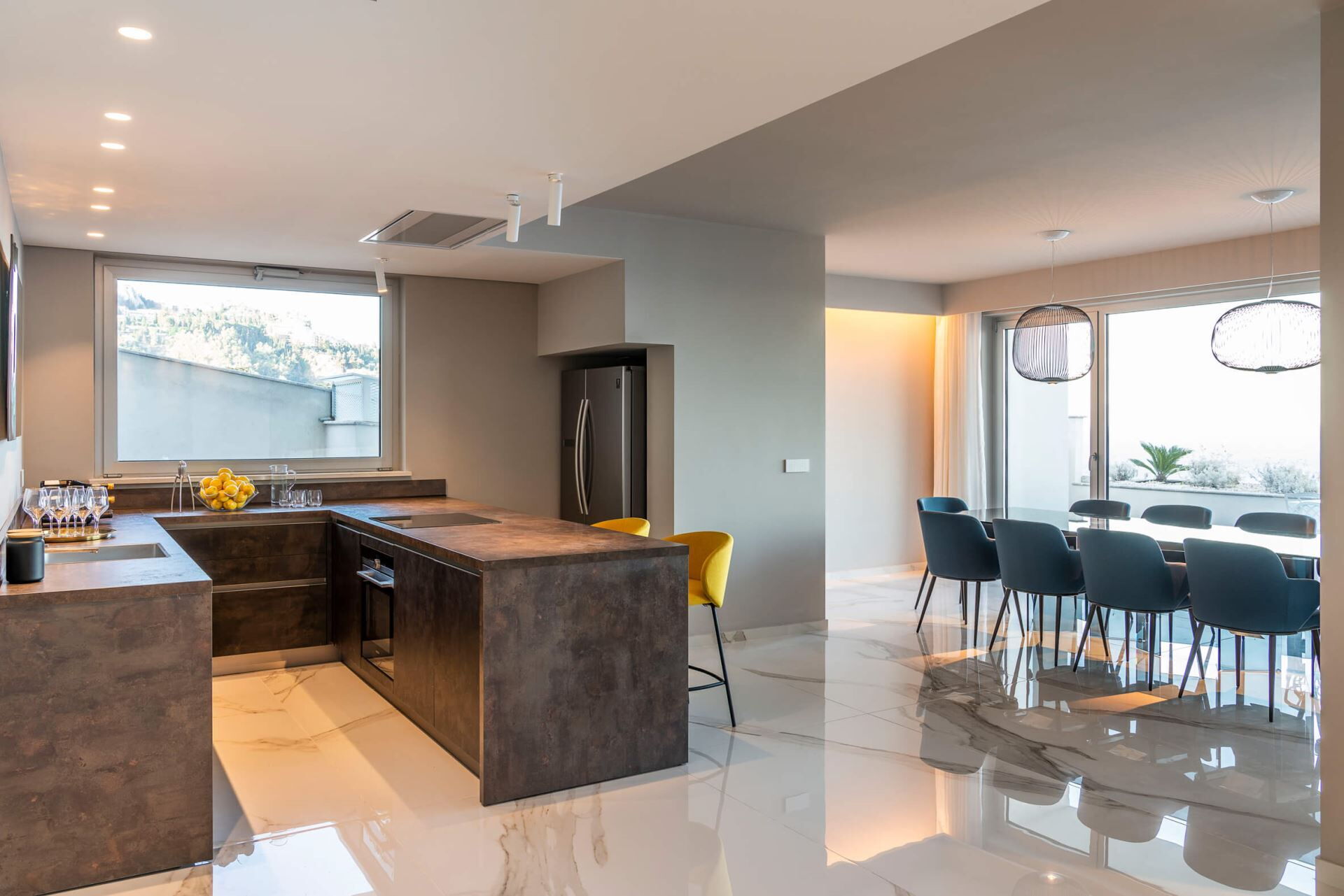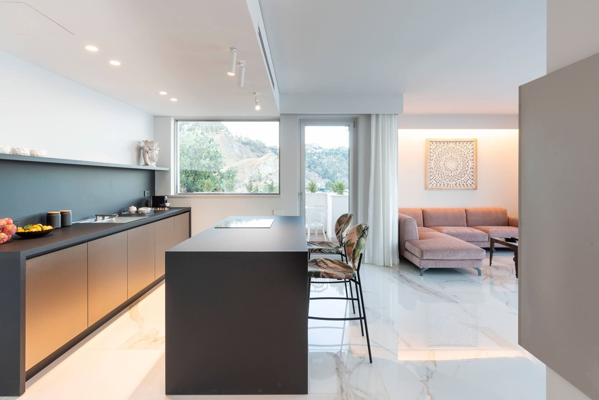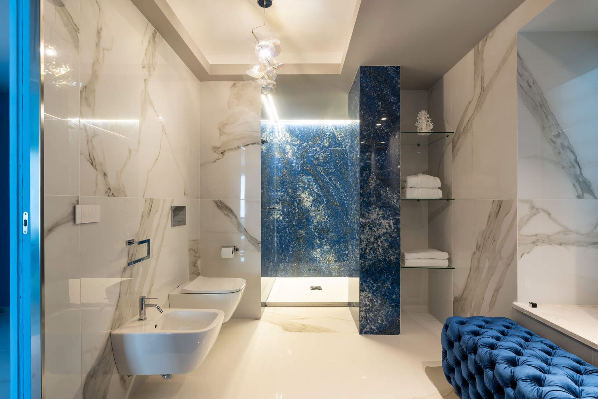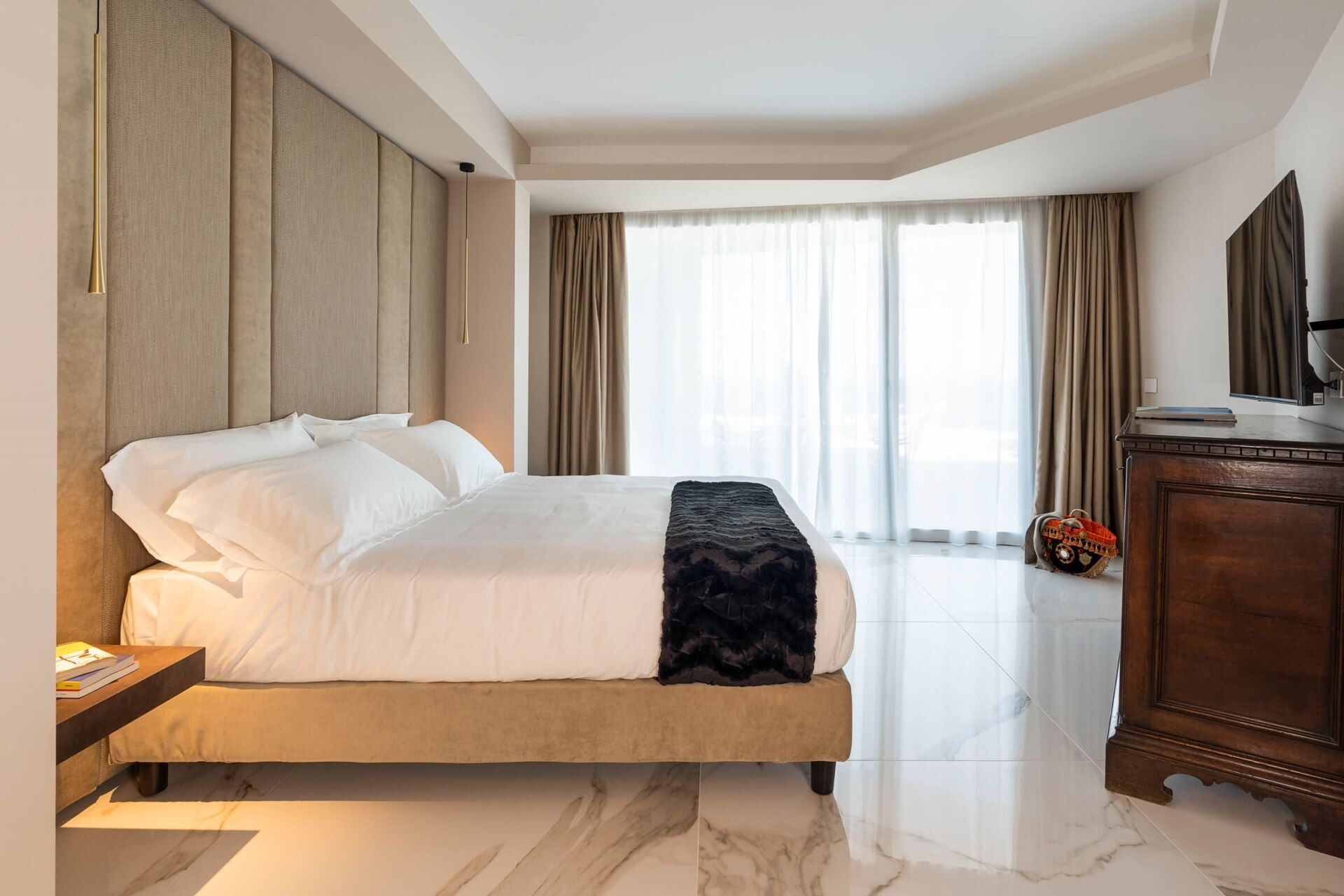 Villa Taormina strækker sig over fire niveauer, alle forbundet med elevator for nem adgang, og har en maksimal kapacitet på 20 gæster fordelt på 10 soveværelser og 11 badeværelser. Stueetagen har en stor stue med spisestue og køkken, 2 dobbeltværelser med eget badeværelse med bruser, et vaskerum og det omfattende wellnessområde, der inkluderer fitnessfaciliteter, sauna, massagerum og multisensorisk bruser. Et af soveværelserne på stueetagen har et walk-in closet. Første sal tilbyder en stor stue med sitteområde, spisestue og køkken sammen med 4 dobbeltværelser, alle med eget badeværelse med bruser, og en terrasse. To af disse soveværelser har walk-in closets. Anden sal indeholder en stor stue med spiseområde og køkken, 3 dobbeltværelser med eget badeværelse med bruser og en terrasse. Et af disse soveværelser har et walk-in closet. Tredje sal omfatter en stue med spiseområde, køkken, 1 dobbeltværelse med eget badeværelse med bruser og 2 små terrasser. Alle 10 dobbeltværelser er udstyret med fjernsyn og luksuriøse eget badeværelse med bruser, hvilket sikrer privatliv og komfort for hver gæst. Villaen har 4 separate stuer med køkkener, spise- og sitteområder fordelt på de forskellige etager, hvilket giver flere mødesteder for Deres gruppe.