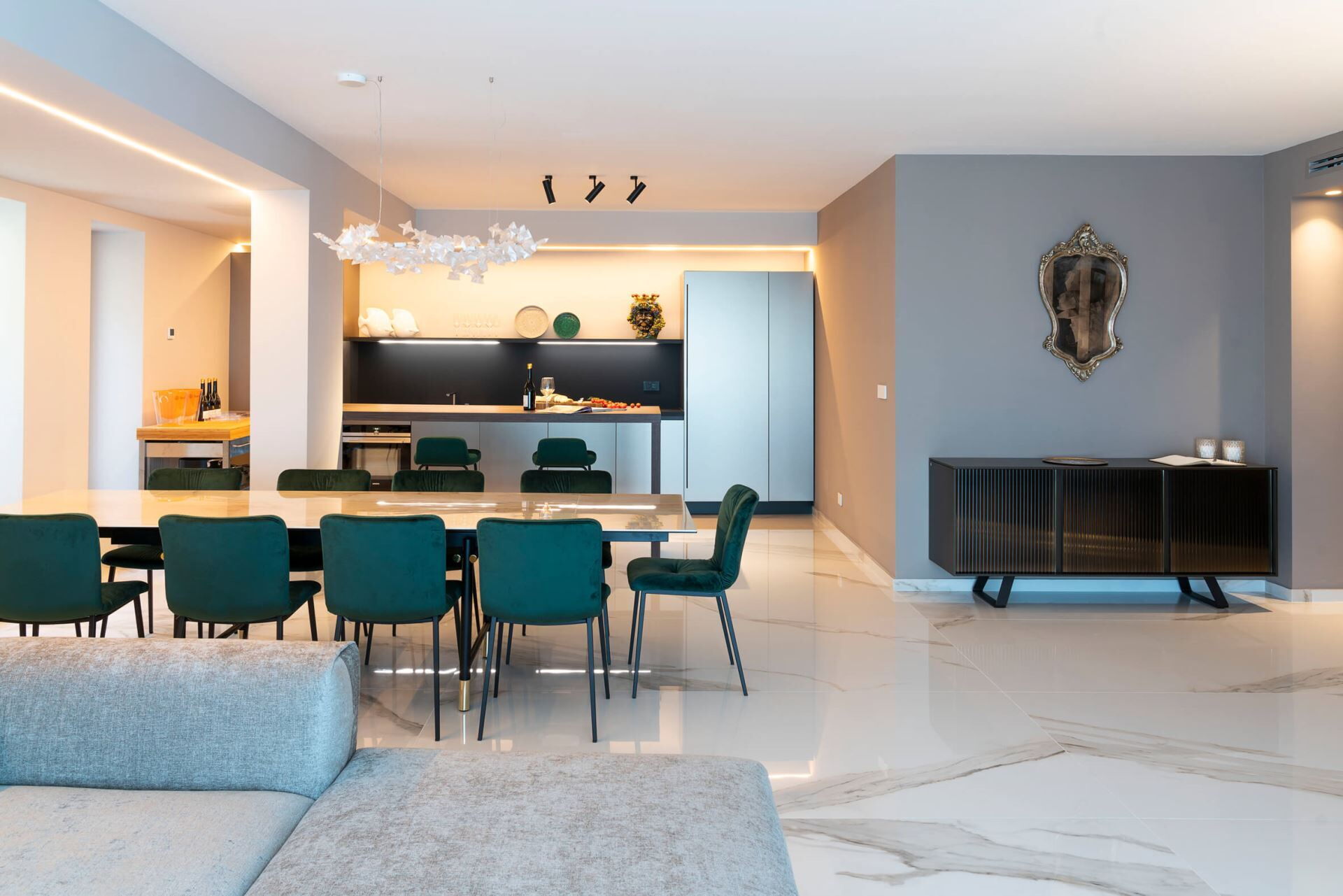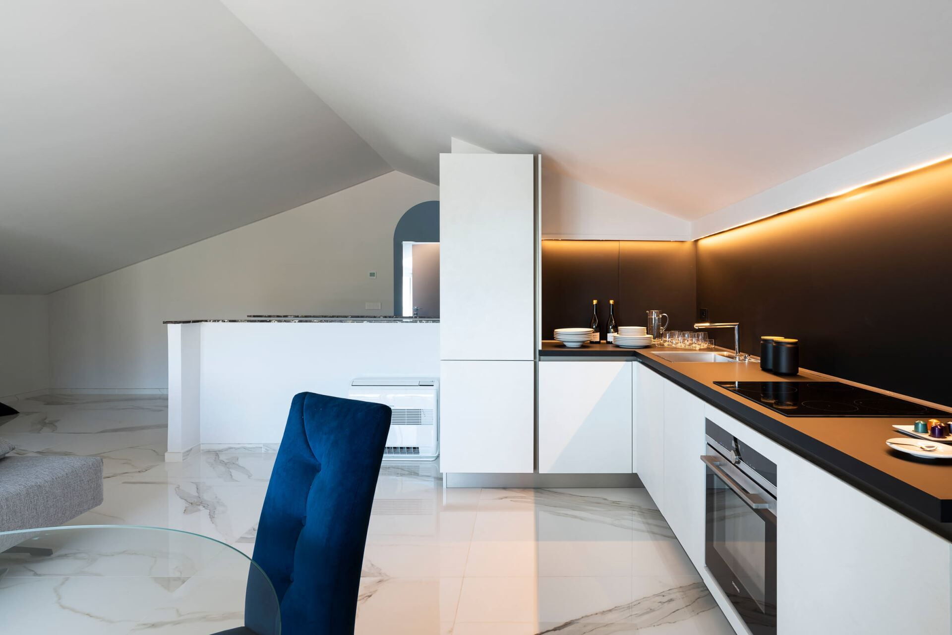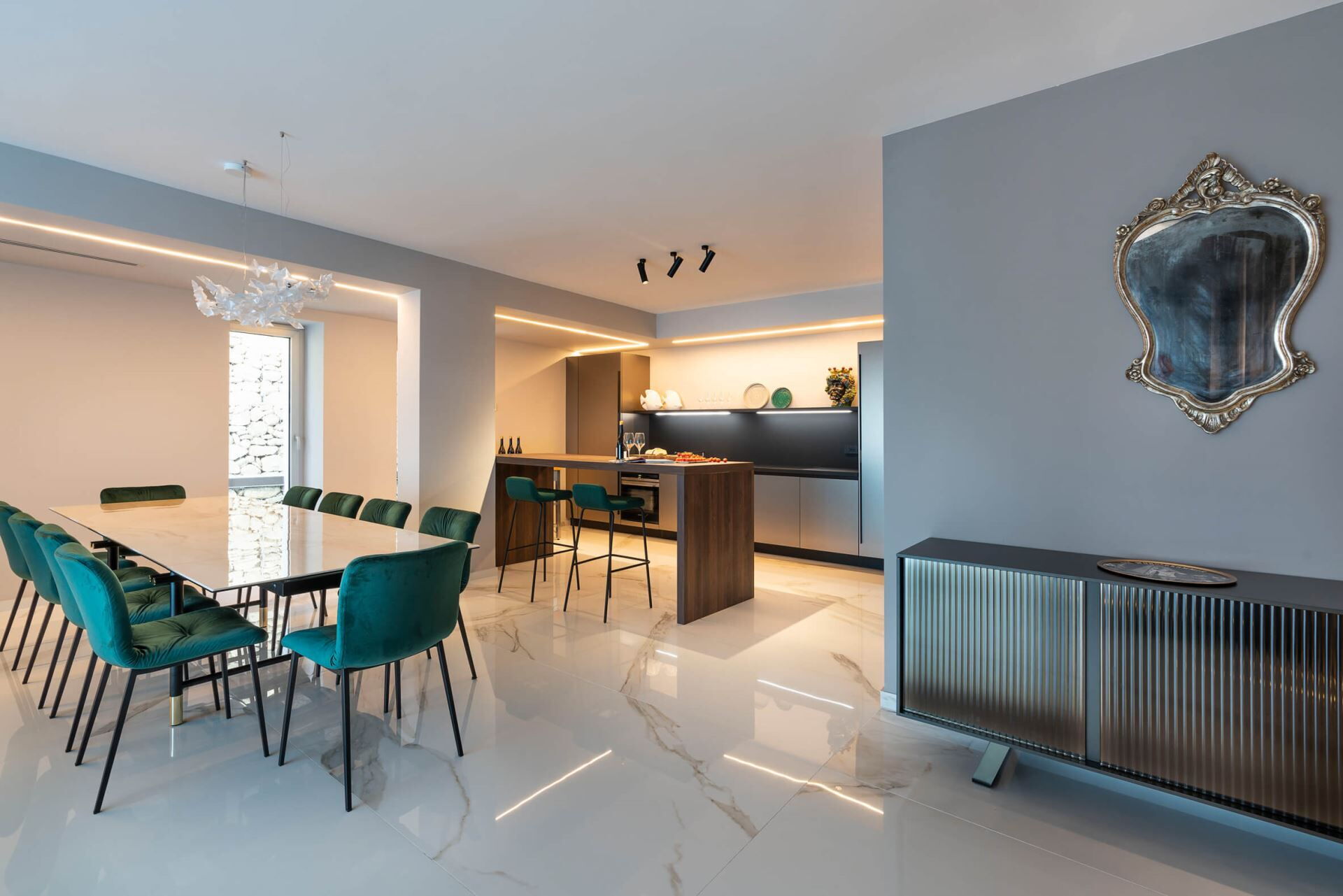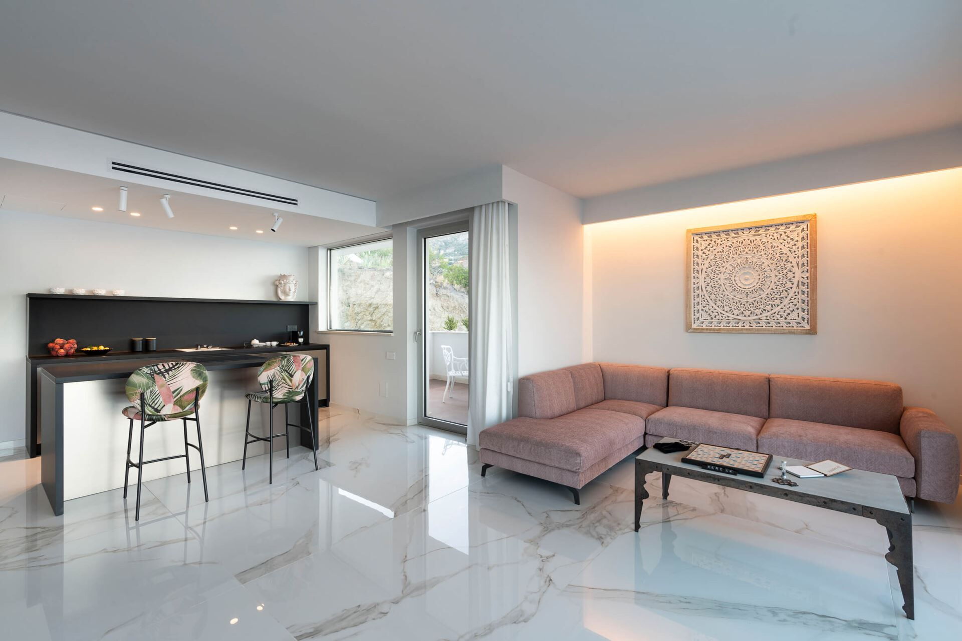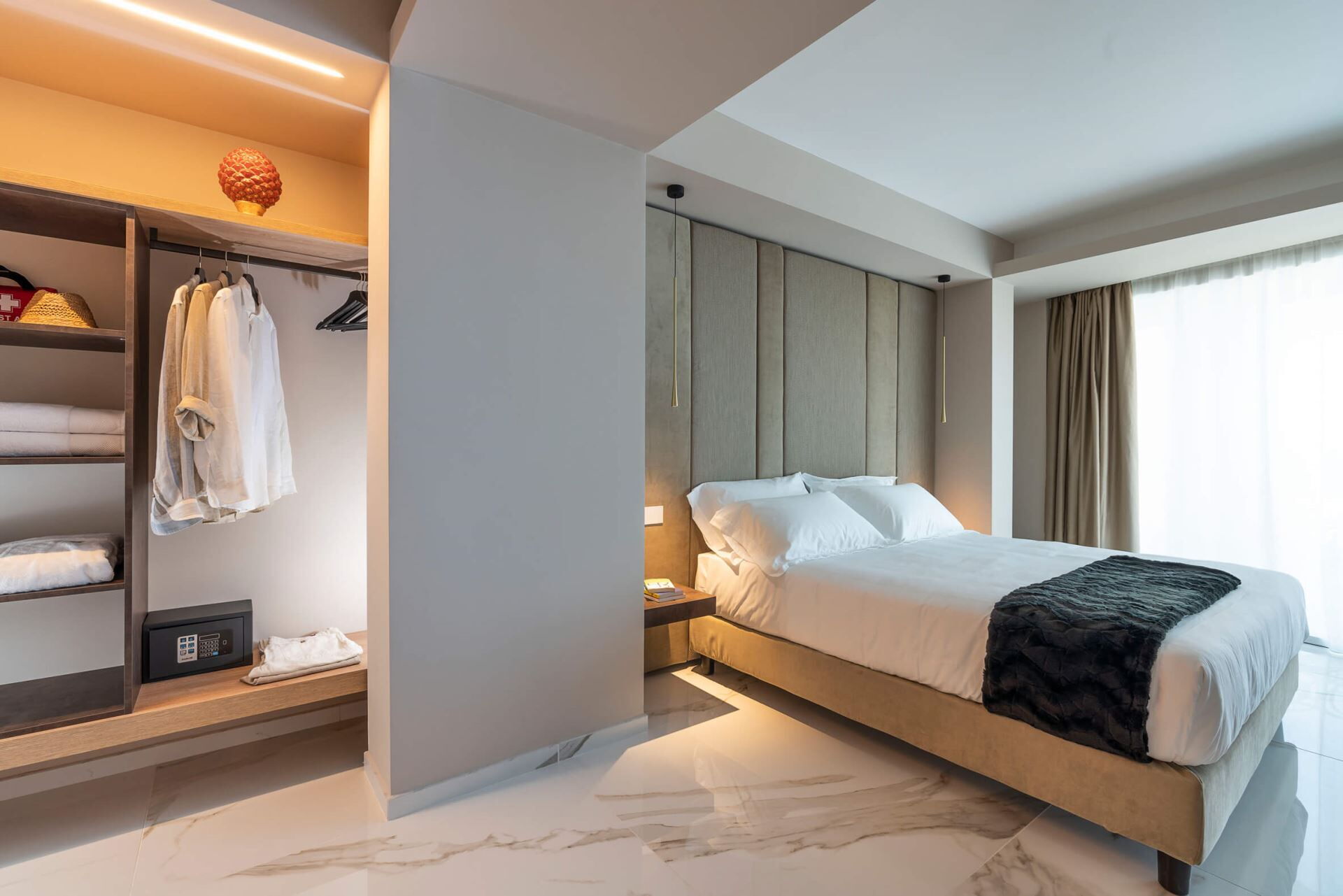 Villa Taormina strækker sig over fire niveauer, alle forbundet med elevator for nem adgang, og har en maksimal kapacitet på 20 gæster fordelt på 10 soveværelser og 11 badeværelser. Stueetagen har en stor stue med spisestue og køkken, 2 dobbeltværelser med eget badeværelse med bruser, et vaskerum og det omfattende wellnessområde, der inkluderer fitnessfaciliteter, sauna, massagerum og multisensorisk bruser. Et af soveværelserne på stueetagen har et walk-in closet. Første sal tilbyder en stor stue med sitteområde, spisestue og køkken sammen med 4 dobbeltværelser, alle med eget badeværelse med bruser, og en terrasse. To af disse soveværelser har walk-in closets. Anden sal indeholder en stor stue med spiseområde og køkken, 3 dobbeltværelser med eget badeværelse med bruser og en terrasse. Et af disse soveværelser har et walk-in closet. Tredje sal omfatter en stue med spiseområde, køkken, 1 dobbeltværelse med eget badeværelse med bruser og 2 små terrasser. Alle 10 dobbeltværelser er udstyret med fjernsyn og luksuriøse eget badeværelse med bruser, hvilket sikrer privatliv og komfort for hver gæst. Villaen har 4 separate stuer med køkkener, spise- og sitteområder fordelt på de forskellige etager, hvilket giver flere mødesteder for Deres gruppe.