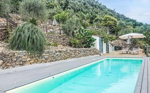 Smuk, komfortabelt bondegård "Borgo Olimpo", på 2 etager, renoveret i 2024, omgivet af træer og vingård. 3 lejligheder i ejendommen. I bymidten fra Molini di Prelá, 3 km fra bymidten af Dolcedo, 12 km fra centrum af Imperia, rolig, solrige beliggenhed på en bakke, 12 km fra havet. Til medbenyttelse: grund 3'000 m2, stor have i forskellige niveauer (indhegnet) med græsplæne, pool beskyttet, indhegnet (10 x 3 m, 140 cm dyb, Sæsonbestemt tilgængelighed: 01.Maj. - 10.Okt.). Brus/toilet i poolområdet, udendørs brus, poolhus med køleskab, brus og kogeplade, petanque, terrasse, lysthus, terrasse, havemøbler, grill, Underholdning af poolen af ejeren/gartneren. Til alene benyttelse: have i forskellige niveauer, naturhave, frugthave. I huset: adgang til internet, trådløs LAN [WLAN], spa-område, cykelrum. Kok muligt (ekstra). Rundstykkeservice og drikkevareservice. Offentlige parkeringspladser 30 m. Fødevarebutik 200 m, supermarked 8 km, indkøbscenter 12 km, restaurant, bar 20 m, bageri 200 m, café 20 m, cykeludlejning 4 km, busstoppested "Molini di Prela" 20 m, banegård "Imperia Oneglia" 12 km, sandstrand "Borgo Marina Imperia" 12 km kiselstenstrand "Borgo Prino" 10 km, stenstrand "Borgo Foce Imperia" 10 km, badesø "Laghetti di Prelá" 500 m. Vandrestier fra huset 10 m, cykelvej 12 km, legeplads 30 m. Nærliggende attraktioner: Valloria (160 bemalte Türen) 4 km, Porto Maurizio Altstadt Parasio 12 km, Bussana Vecchia Erdbebendorf 25 km, Triora Hexendorf 45 km. Vandrestier Monte Faudo (1149 m) Mountainbike Trails 15 km, Laghetti di Lecchiore (Wanderweg) 10 km. Bemærk venligst: bil anbefales.