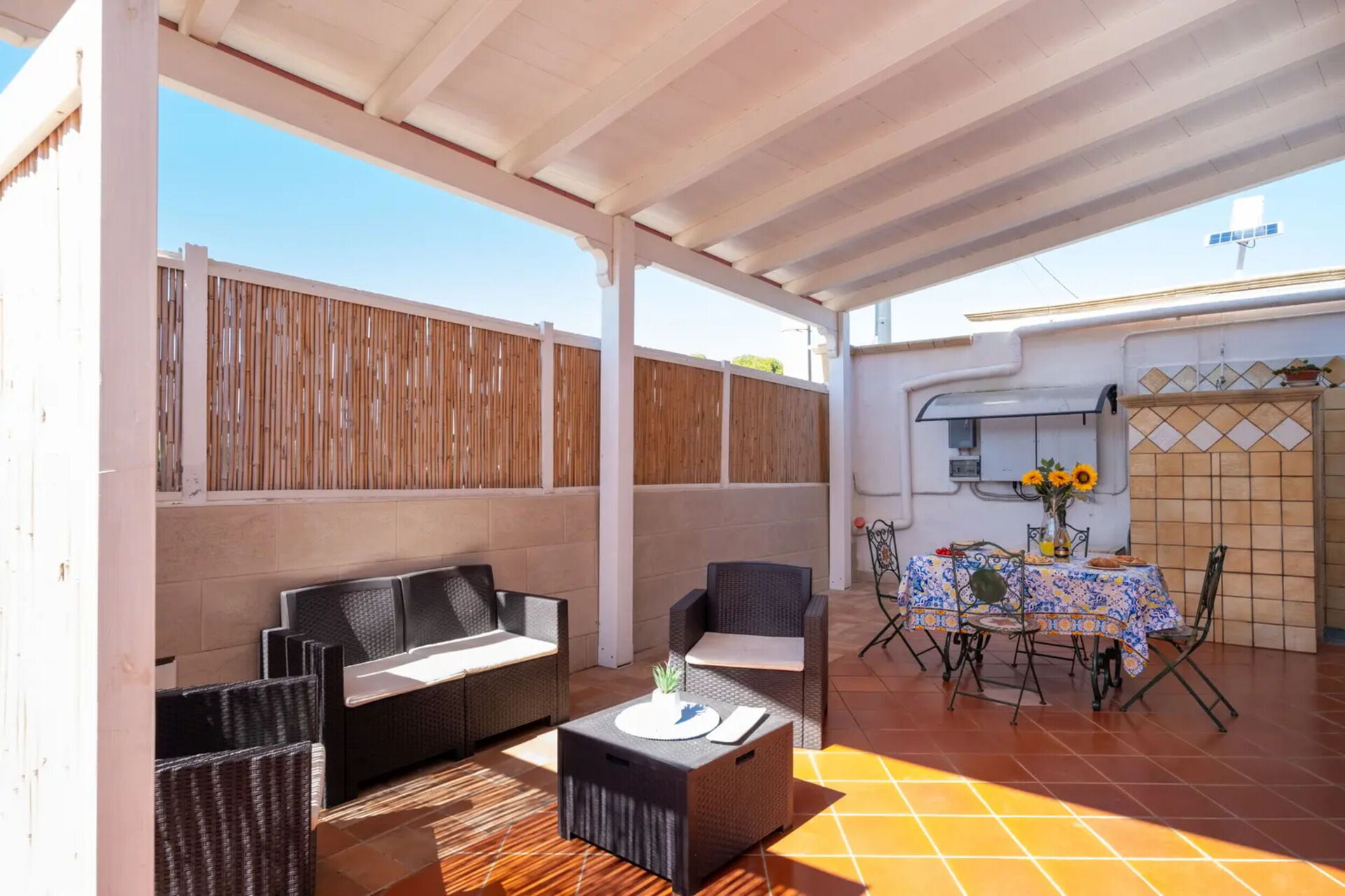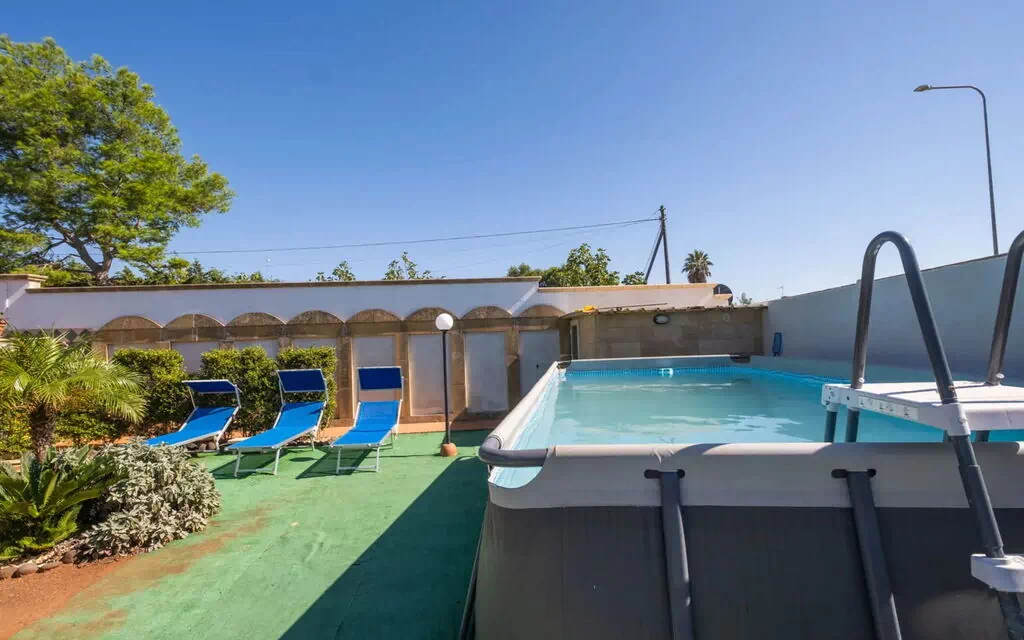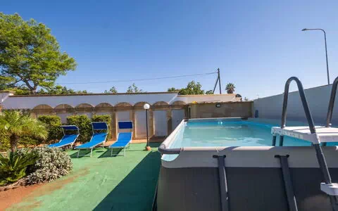 Charming villa with swimming pool consisting of two independent flats with common outdoor spaces and swimming pool. Flat located on the ground floor with private parking and private garden with patio and location for outdoor dining. Cosy interiors in a maritime theme with fine finishes in porto cesareo, a charming seaside town on the Ionian coast of Salento, a place where staying by the sea means living it to the full, 24 hours a day. Beautiful inside and out, it is only 200 metres from the most important white sandy beaches of Salento and 200 metres from the main services such as bars, tobacconists, restaurants and supermarkets.