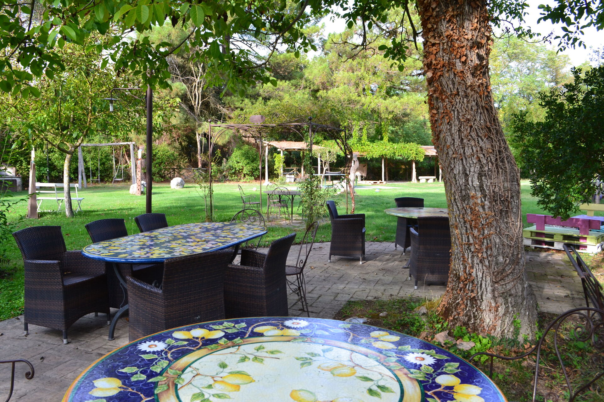 Der er plads til 48 personer i hele ejendommen; i haven er der et meget stort overdækket udendørs område, hvor man kan spise sammen.