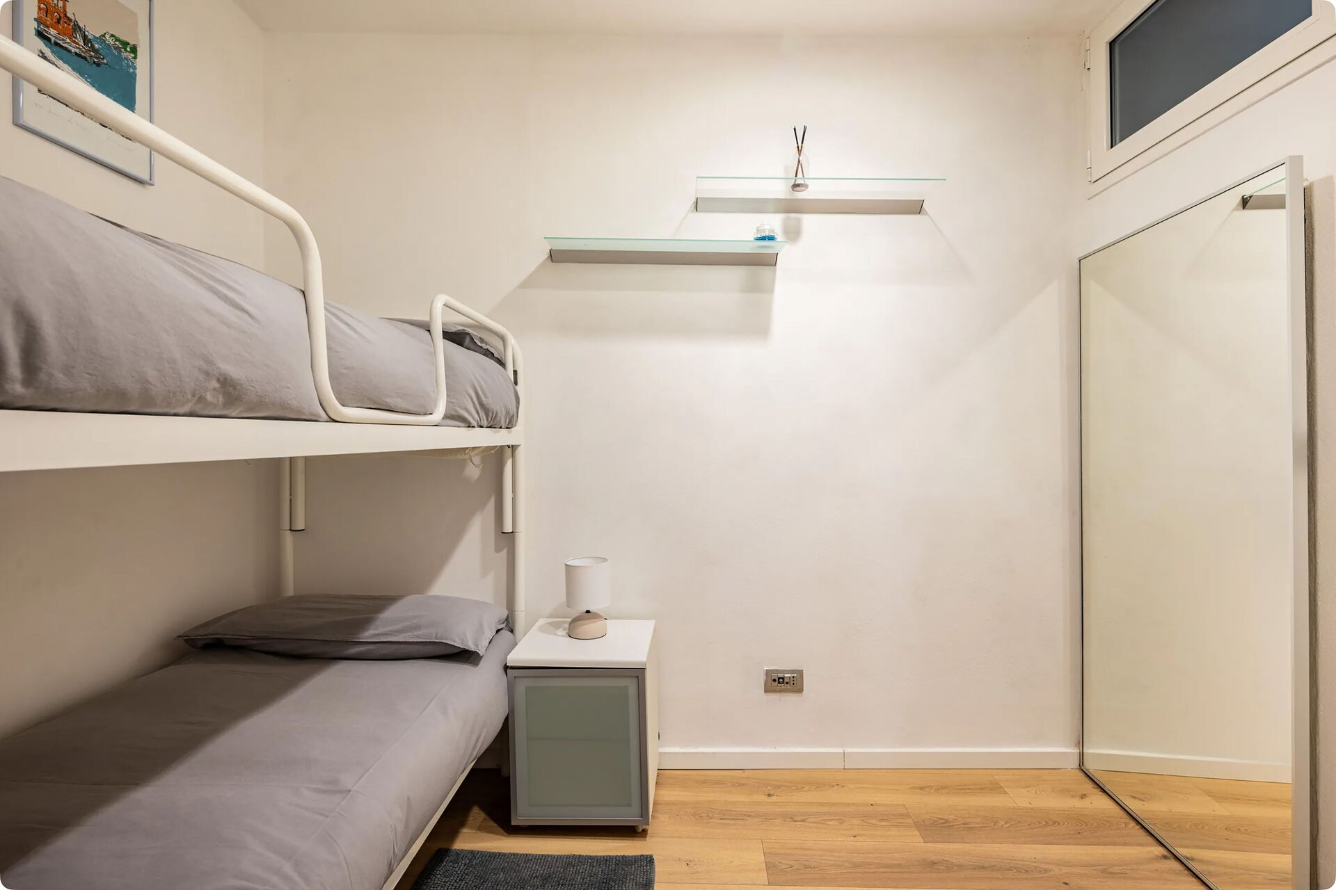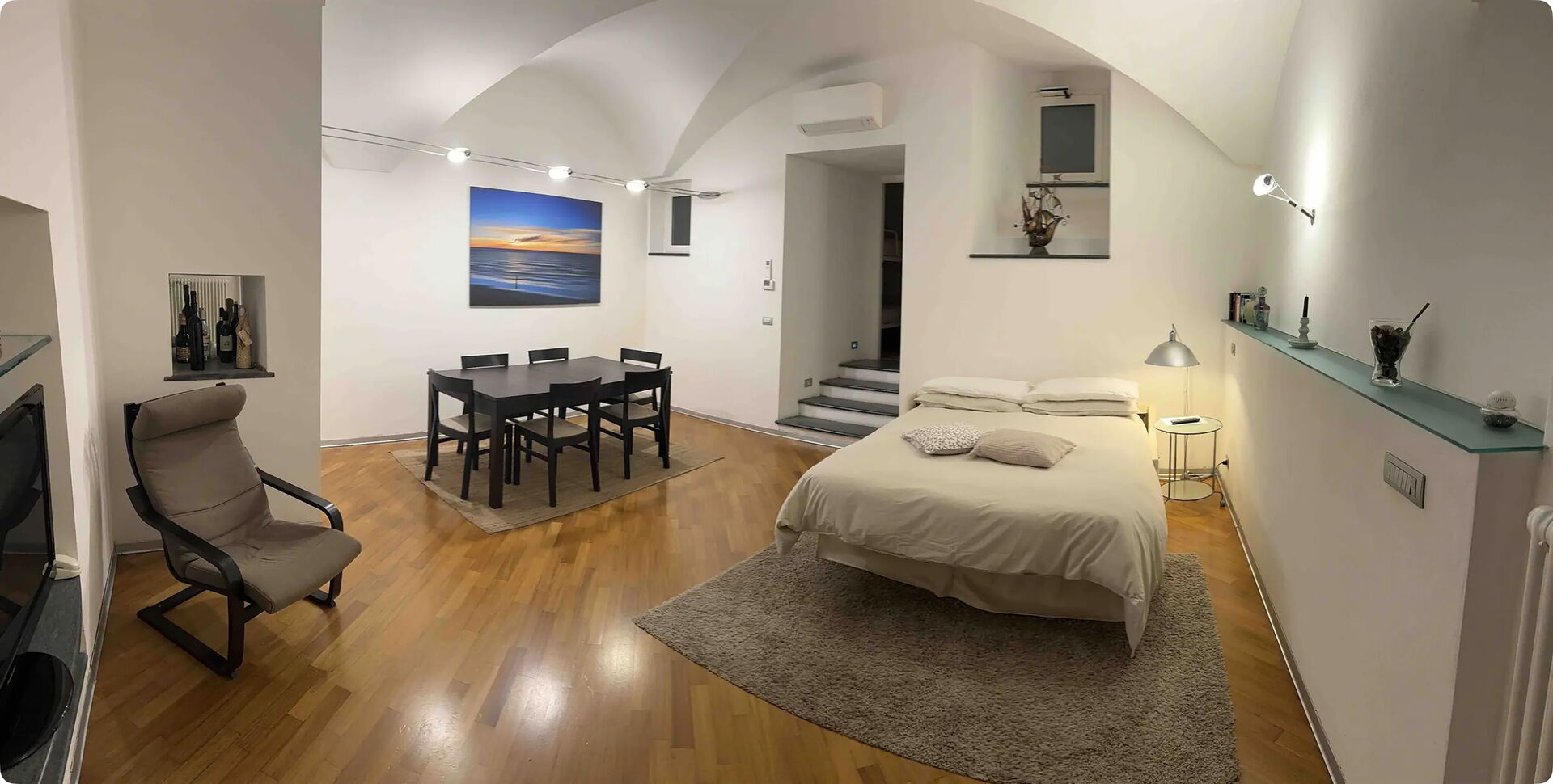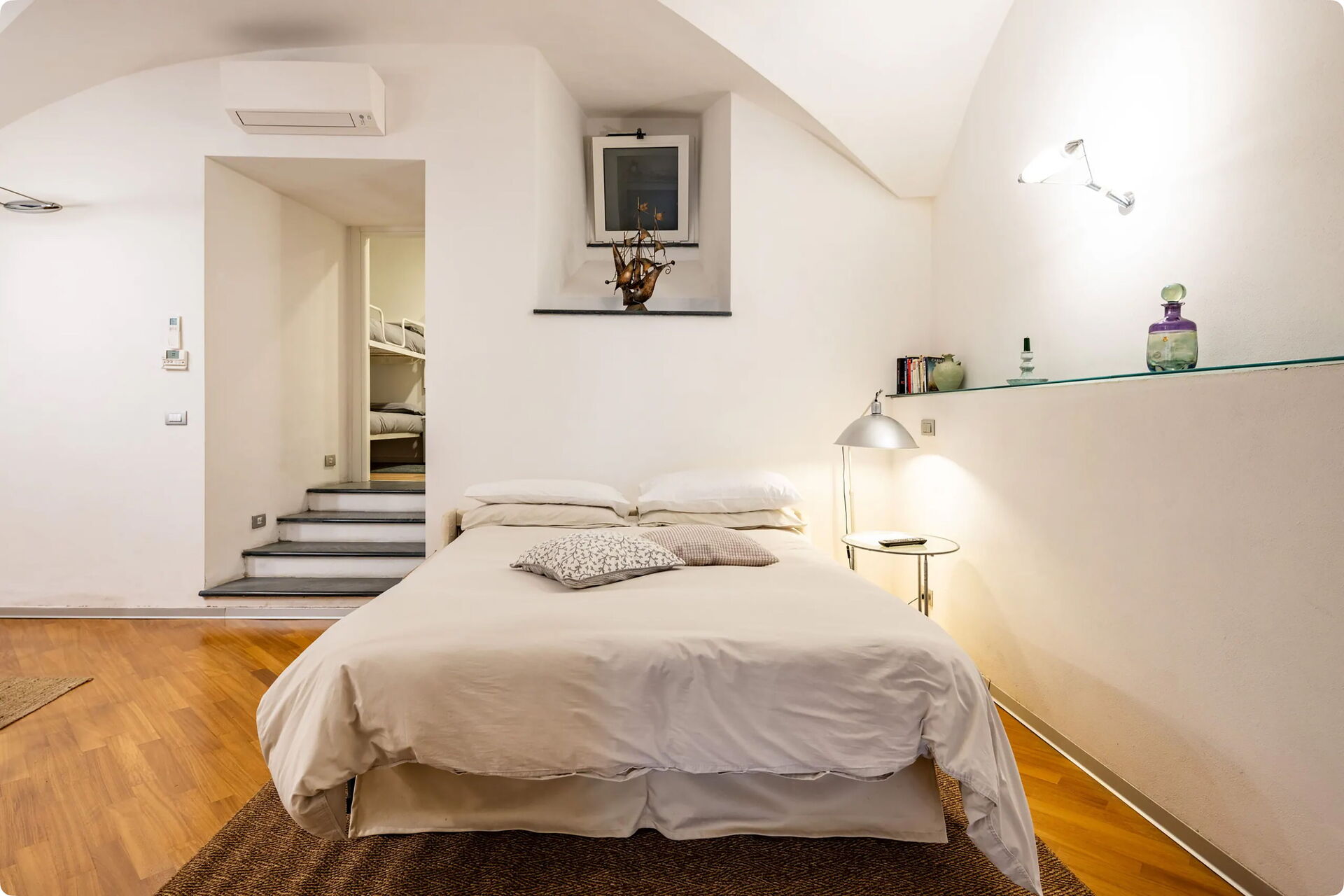Anbefales til par til en romantisk ferie, eller til et par med to børn, fordi lejligheden også har et soveværelse med en køjeseng.