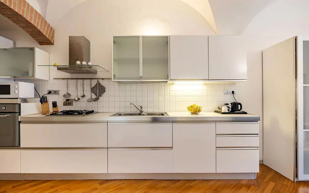 "Casa Garibaldi" er blevet elegant renoveret og nyindrettet, den består af en entré, et stort og moderne superudstyret køkken, et åbent rum med spisestue, fjernsyn og en dobbeltseng (sovesofa, der bliver til en seng, størrelse 160x190 cm), et soveværelse med køjeseng og walk-in-closet, et badeværelse med bruser og et skab med vaskemaskine og tørretumbler.