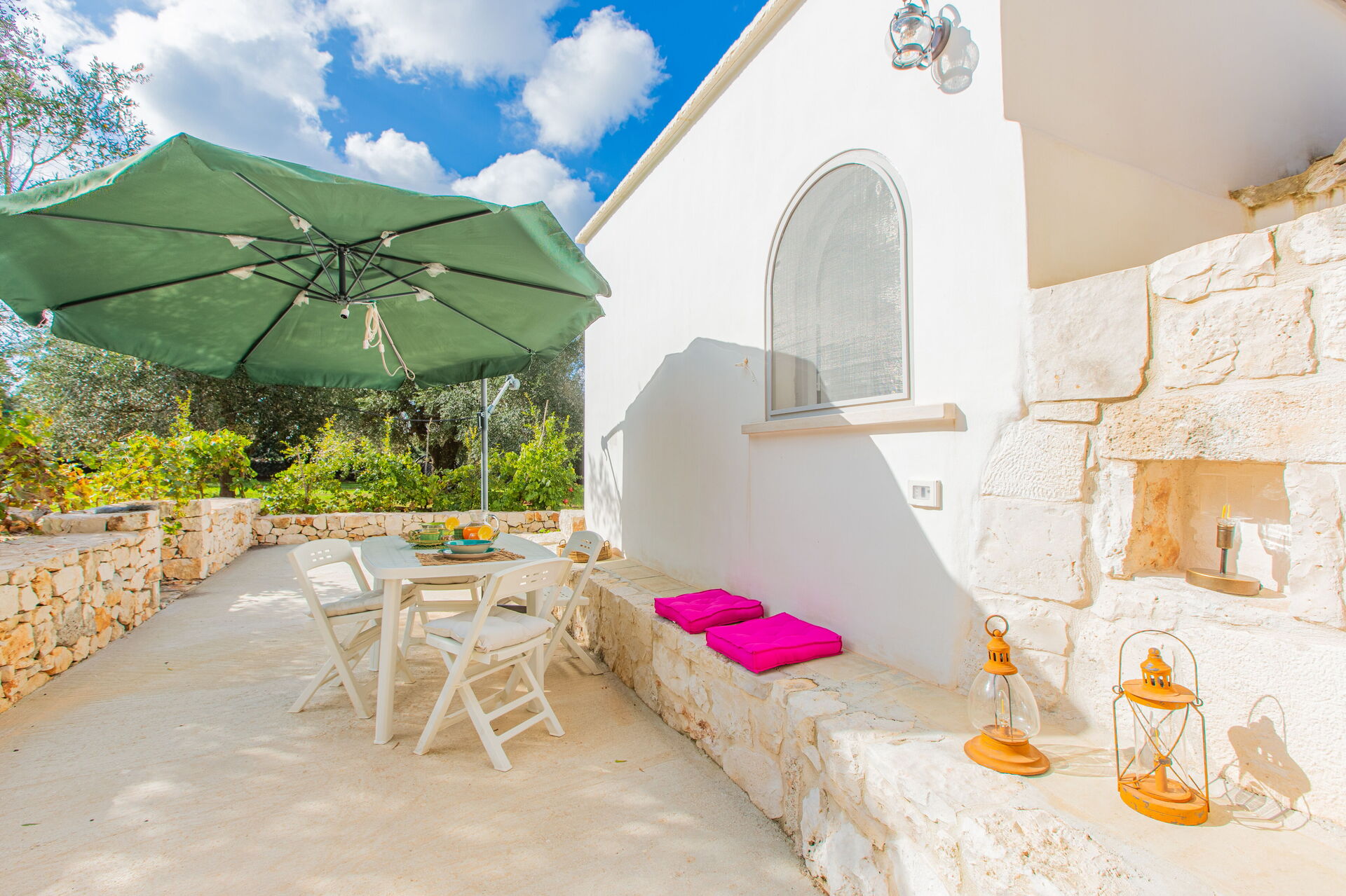 Ejendomen er velbeliggende 2 km fra San Michele Salentino, Italien, i turistområdet "Salento" og kun 13 km fra Ostuni. Trullo Della Quercia er en fin feriebolig (40 m2) med klimaanlæg og WIFI. Ejendommen kan huse op til tre gæster i 1 soveværelse med 1badeværelse.