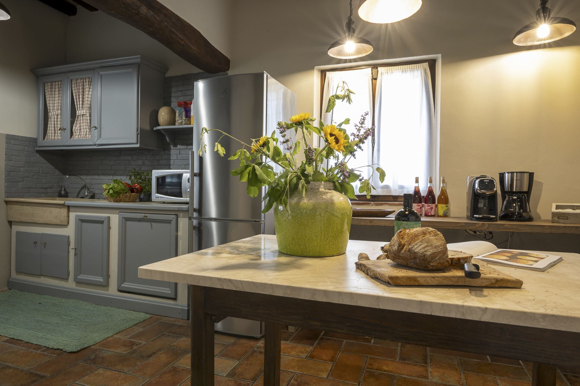 Køkken: veludstyret køkken, opvaskemaskine, køleskab, fryser, mikroovn, kogeplader, ovn, brødrister, italiensk kaffemaskine.
