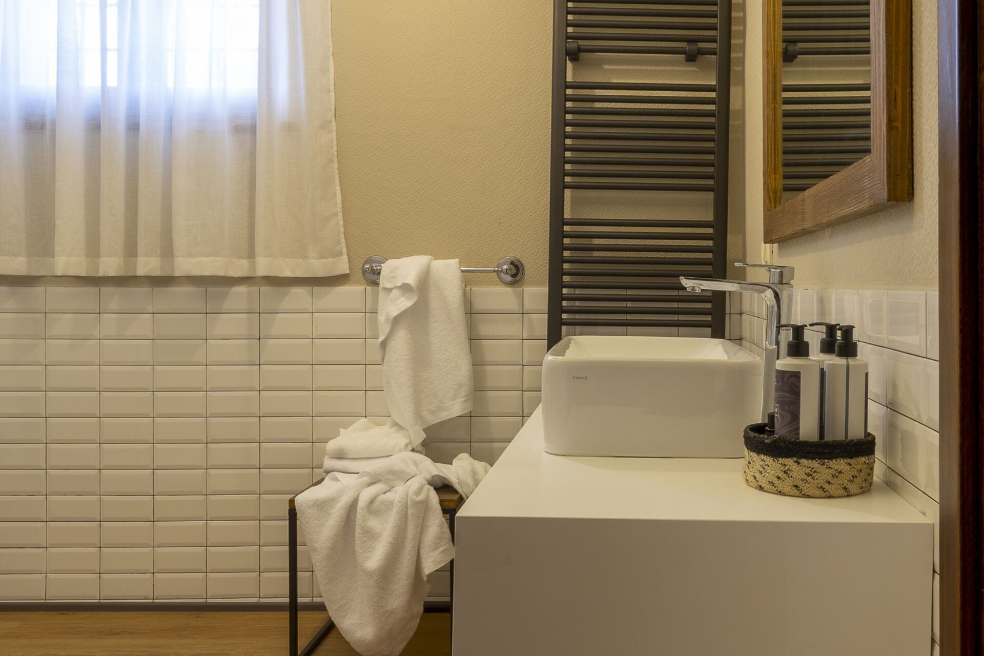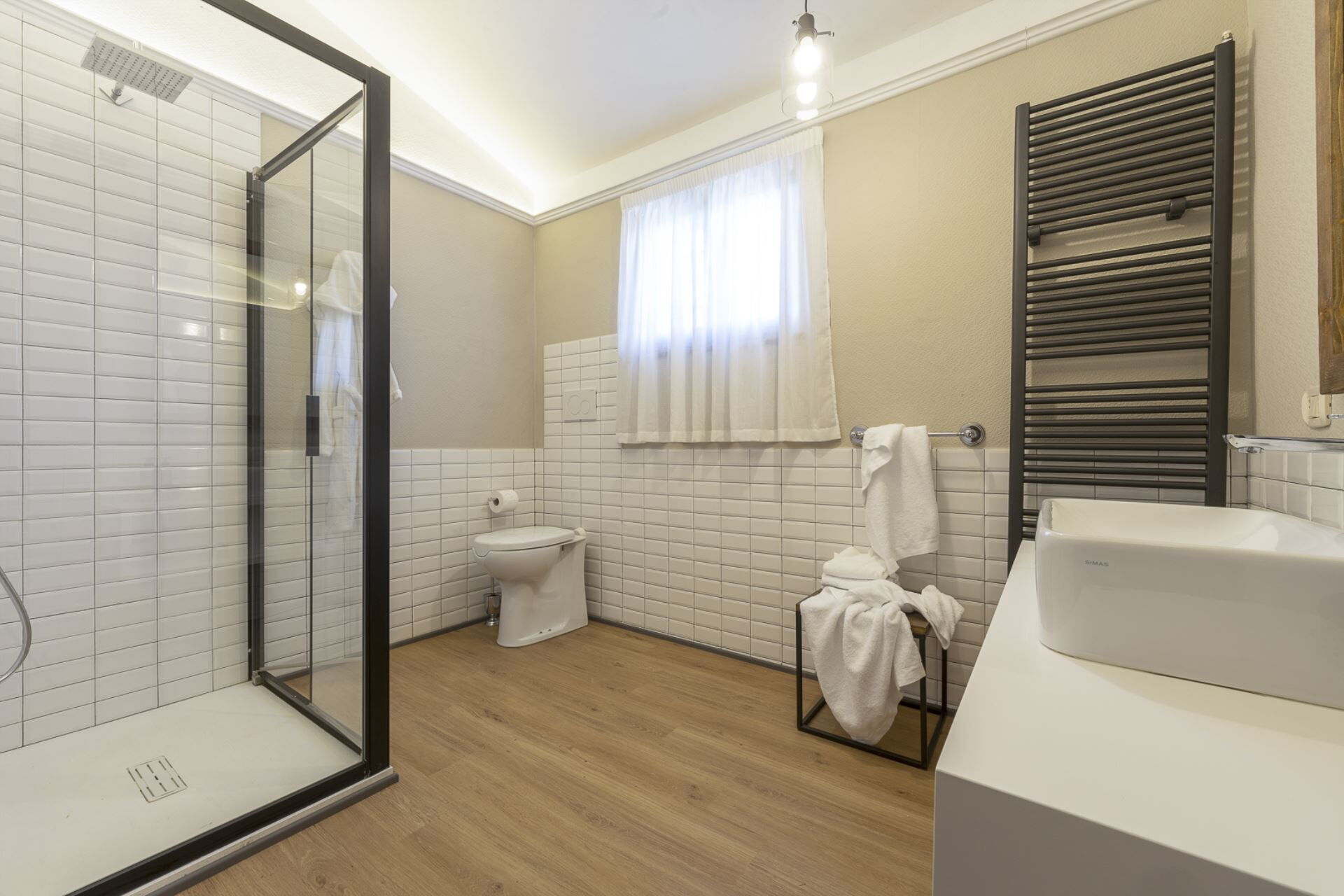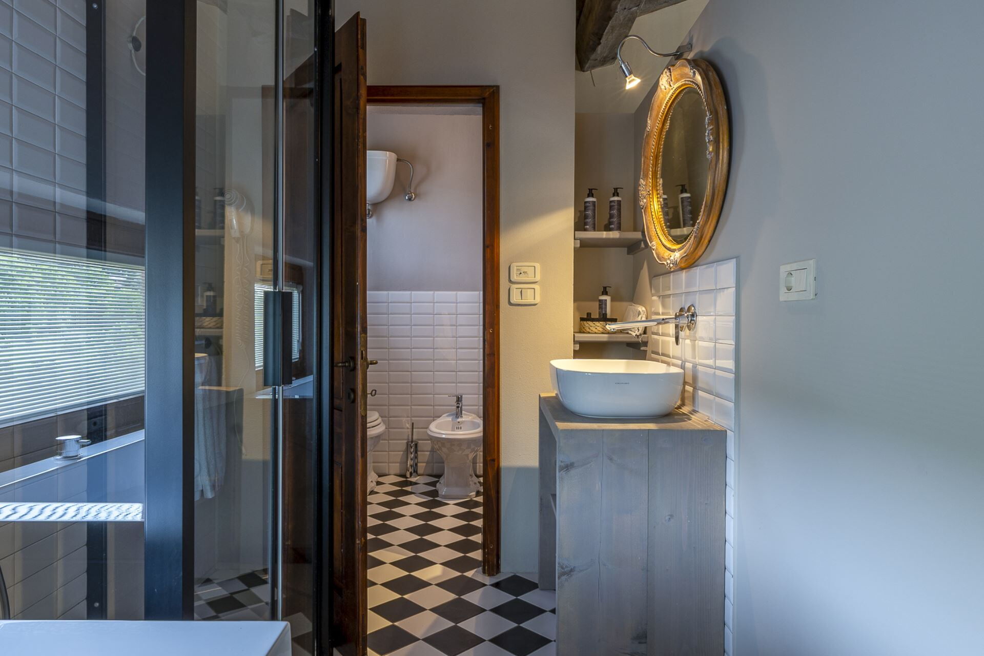 Badeværelse: vask, wc, bidet, bruser, hårtørrer.