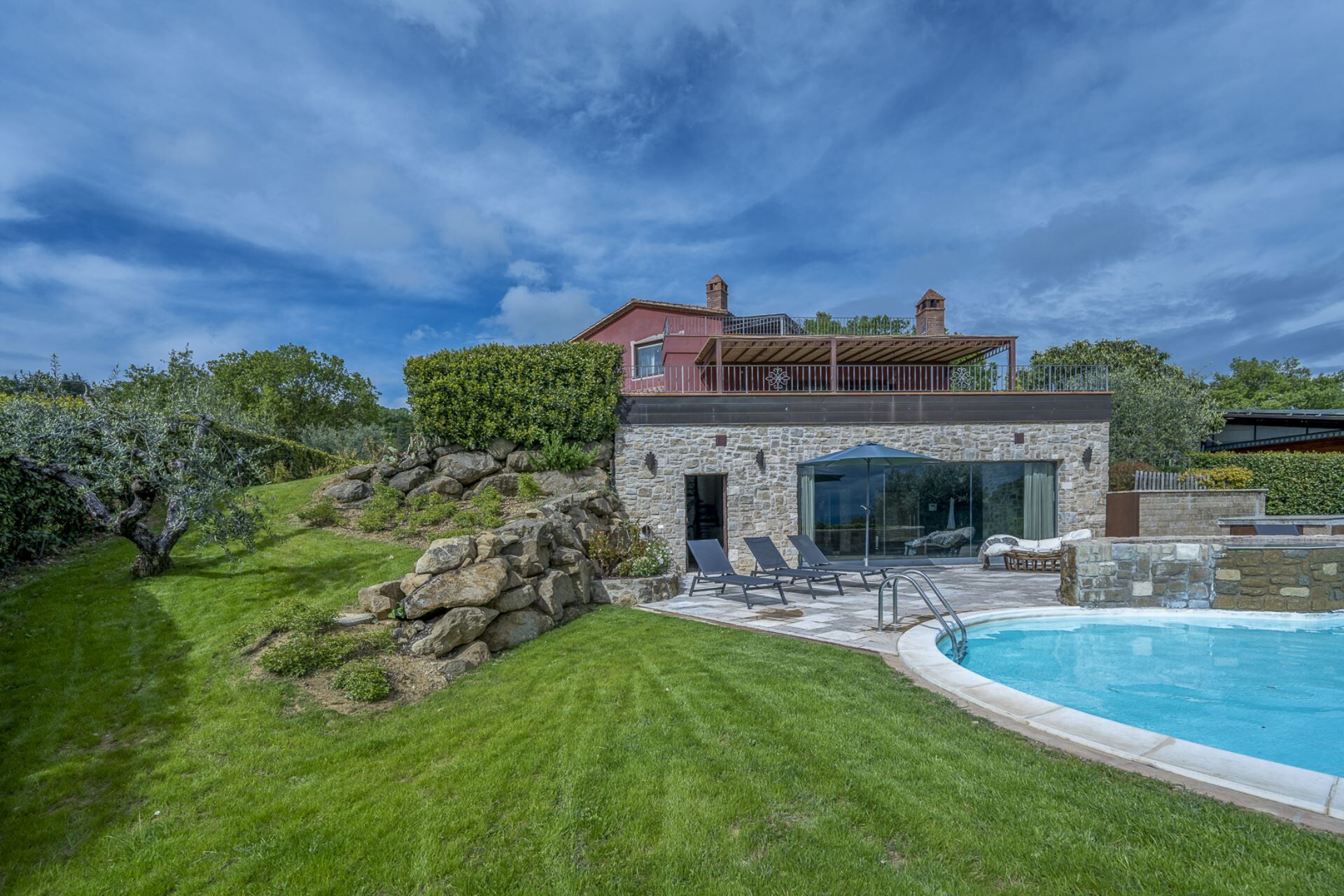Ved ankomst til Villa delle Rose vil I finde en fin ren og velholdt ejendom ideel til en afslappende ferie i Umbrien. Til jeres store nydelse vil I finde en privat pool, hvor I kan køle ned, mens I nyder en dejlig kold drik efter en hektisk dag med museumsbesøg. Udendørs vil I også finde grill og gårdhave. Hvis I nyder at lave mad til familie og venner så er der et veludstyret køkken inkluderet kaffemaskine, mikroovn, brødrister, komfur og køleskab, samt, , samt masser af service og bestik til op til fem personer. Hvis I foretrækker at spise 'al fresco', er der en fuldt møbleret veranda, hvor I kan nyde vejret, mens I spiser udendørs.