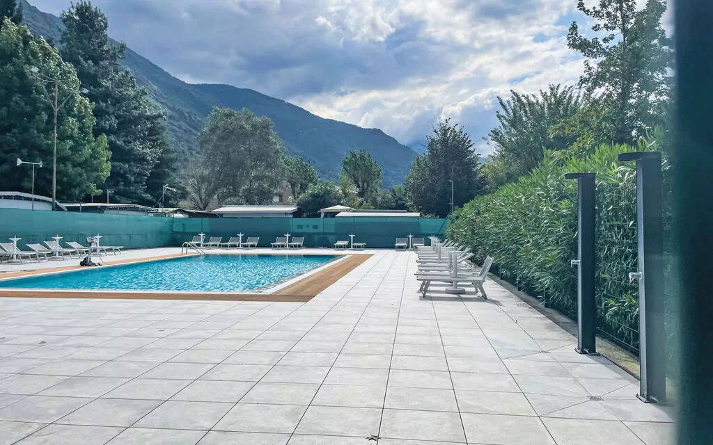 Komfortabelt på en campingplads "Camping Turisport", på 2 etager, bygget i 2024. I byen Dervio, 32 km fra centrum af Lecco, 86 km fra bymidten af Mailand, 50 m fra søen. Til medbenyttelse: grund 32 ha (indhegnet), pool indhegnet (15 x 7 m, 140 cm dyb, Sæsonbestemt tilgængelighed: 01.Jun. - 15.Sep. poolen åbningstider: 09:30-12:30 og 14:30-18:30). Bordtennis, terrasse, legeplads. I huset: reception, bar, cykeludlejning. Skift af linned (yderlige ekstras). Udskiftning af håndklæder (yderlige ekstras). Rengøring af lejlighed muligt (ekstra). Parkeringsplads. Supermarked 800 m, bageri 750 m, cykeludlejning 10 m, busstoppested 1 km, banegård 1.2 km, stenstrand 950 m. Lystbådhavn 950 m, surfskole, sejladsskole 20 m, tennis 10 km, vandrestier fra huset 2 km, legeplads 400 m. Nærliggende attraktioner: Torre di Orezia, Corenno Plinio, Castello di Vezio Varenna, Chiesa di San Pietro a Dervio. Kendte skiområder nås nemt: Madesimo, Aprica, Valchiavenna. Kendte søer nås nemt: Lago di Mezzola. Vandrestier Monte Basso di Dervio, Monte Legnoncino. Bemærk venligst: ingen elevator. Forpligtelse til at bære bade-hatte.