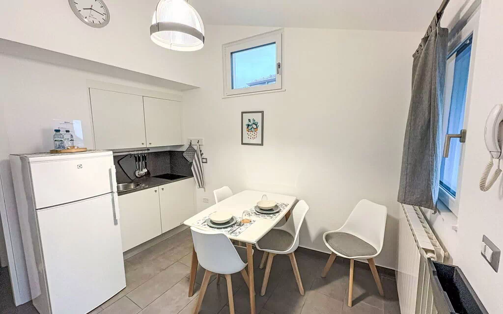 "Casina al Lago", 2-værelse-lejlighed 40 m2 i 2. etage. Renoveret i år 2024, hensigtsmæssig og moderne indrettet: 1 værelse med 1 sovesofa (længde 180 cm), 1 dobbeltseng, TV og ventilator. Køkken i indgang (miniovn, 2 keramiske kogeplader, Brødrister, kedel, elektrisk kaffemaskine) med spisebord. Brus/bidet/WC. Gas-opvarming. Opvarme kun tilgængelig fra 01.10. til 30.04. Lille altan. Altanmøbler. Til benyttelse: vaskemaskine, pengeskab, strygejern hårtørrer. Bemærk venligst: ikke-ryger hus. Maksimum 1 husdyr/hund tilladt. Brandslukker, ingen elevator. IT012086C2EJ99232B