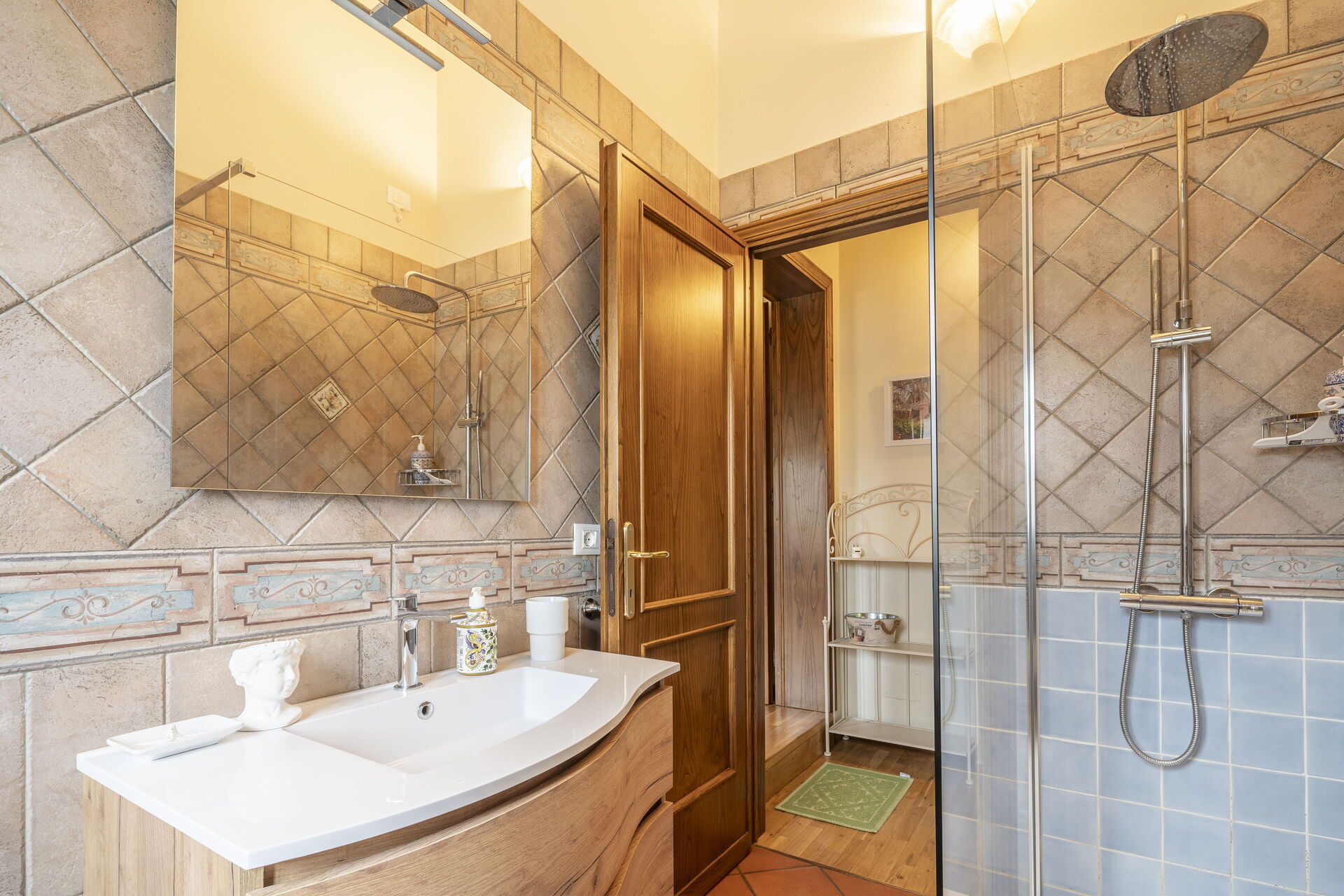Ved ankomst vil I blive budt velkommen af ejeren eller repræsentanten og I vil finde en dejlig ren og velholdt ejendom perfekt til en rolig ferie i Toscana. Til jeres store glæde vil I finde en , hvor I kan slappe af og nyde en kold drik efter en hektisk dag med sightseeing.Den store gevinst ved at leje en feriebolig i stedet for flere hotelværelser er muligheden for at slappe af med familie og venner efter en travl dag. Nyd en middag sammen akkompagneret med lidt lokal vin for at afslutte dagen. At spise med venner og familie er en kæmpe del af den toskanske kultur. Benyt det velekviperede køkken til madlavning med lokale produkter, når du er på ferie. Køkkenet indeholder kaffemaskine, mikroovn, komfur og køleskab, samt, masser af service og bestik til op til seks personer.