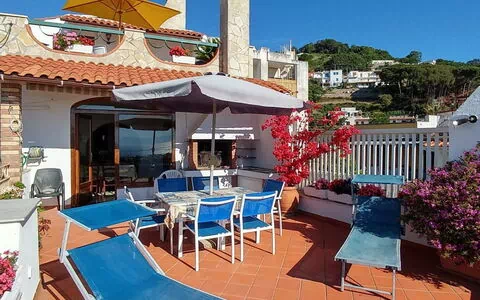 Barano d'Ischia: Smuk, komfortabelt 2-familiehus "La Favola", på 2 etager. Centrale, solrige beliggenhed, 4 km fra havet, 4 km fra stranden. Rengøring af lejlighed muligt (ekstra). Offentlige parkeringspladser på vejen ekstra. Fødevarebutik, bar 200 m, busstoppested 50 m, færge "Ischia" 4 km, sandstrand "Cartaromana" 5 km (lille). Nærliggende attraktioner: Castello Aragonese 6 km, Forio 10 km, Sant'Angelo 15 km. Bemærk venligst: ingen elevator.